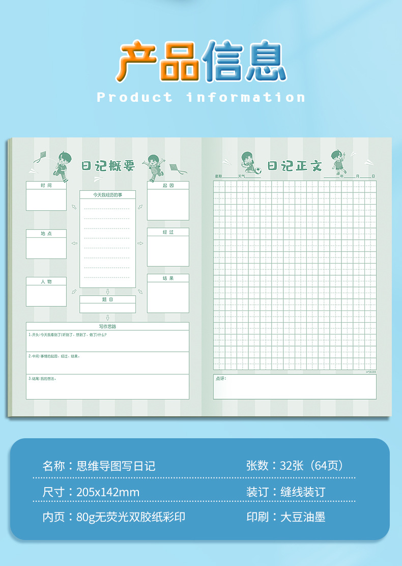 思维导图写日记A5作文本日记本小学生阅读摘抄记录读书田字笔记本
