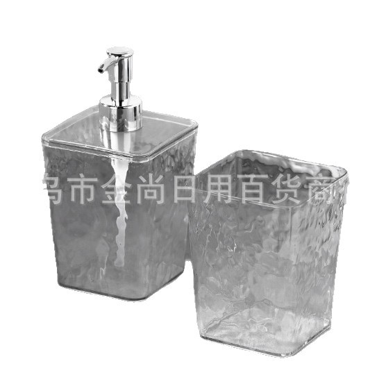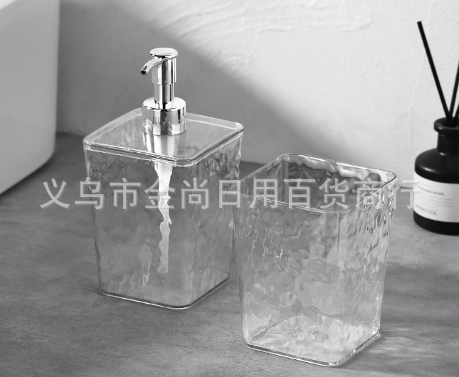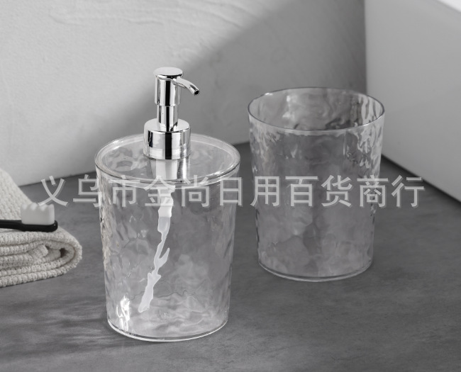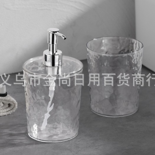 酒店水波纹洗手液按压瓶+透明口杯高颜值 洗发水沐浴露空瓶子轻奢