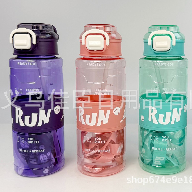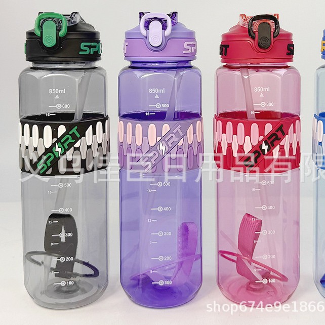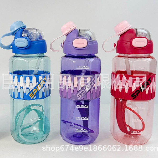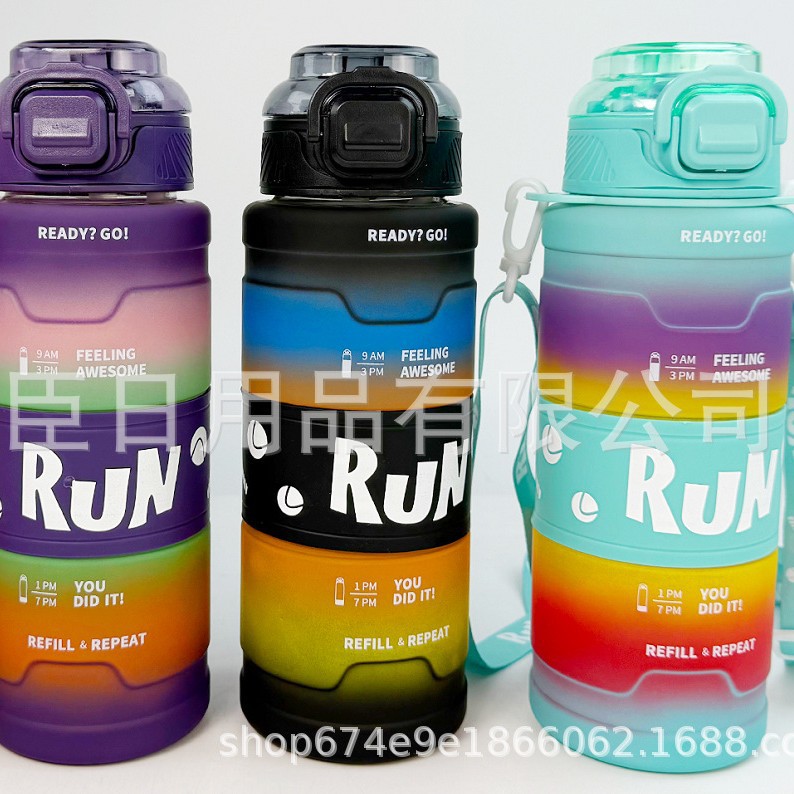 高颜值渐变实塑料杯大容量弹跳盖太空壶户外运动水壶手提塑料水杯