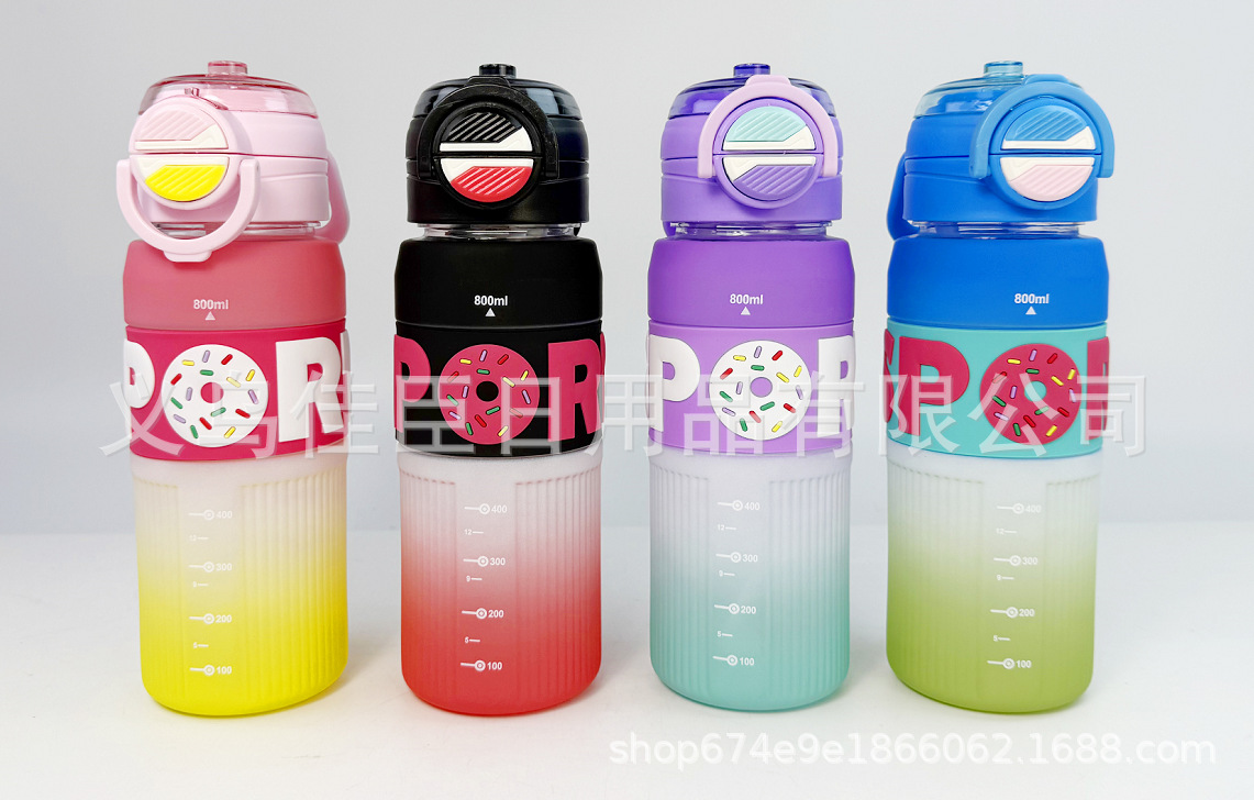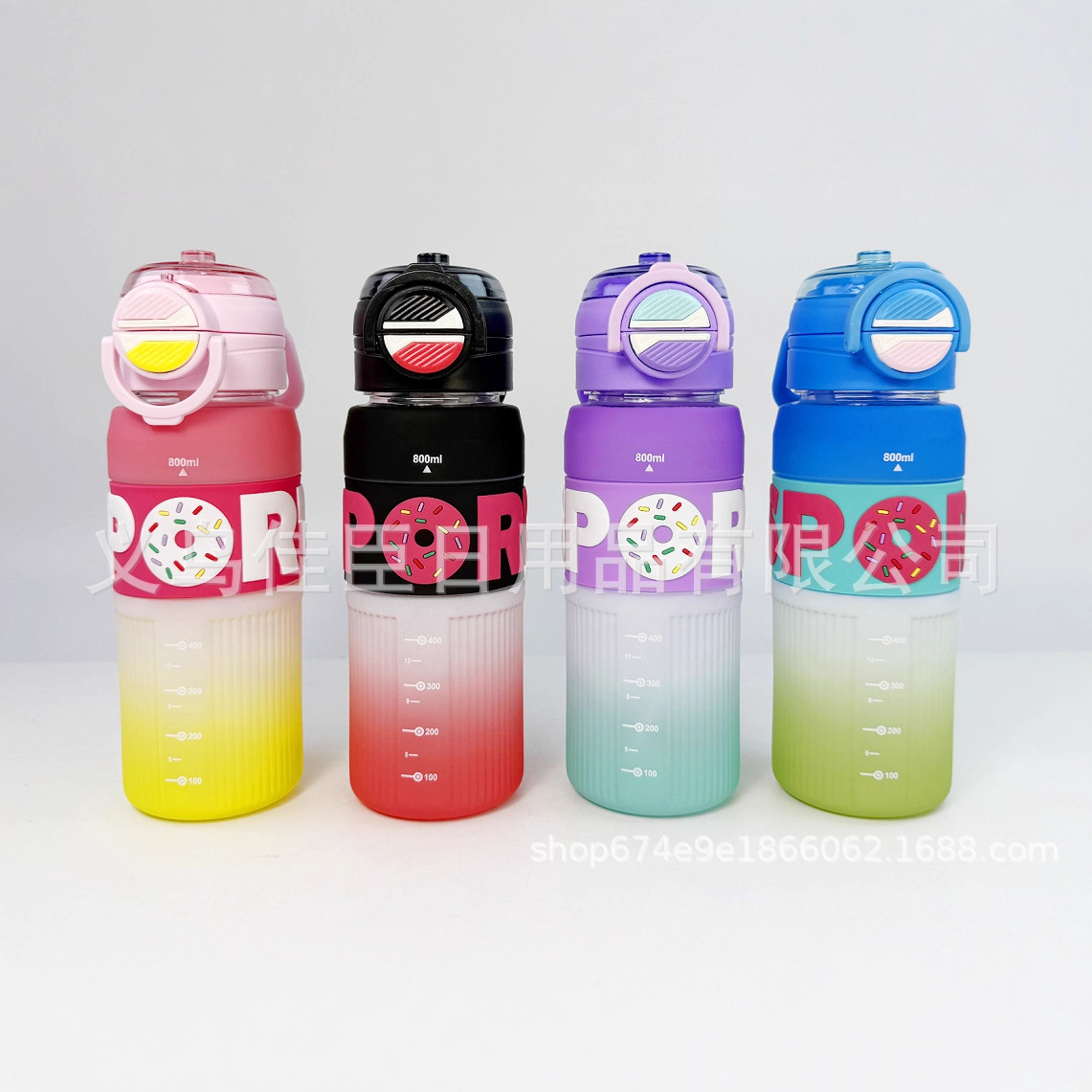 双饮用高颜值太空杯运动水壶多巴胺渐变 大容量 吸管嘴弹跳盖便携