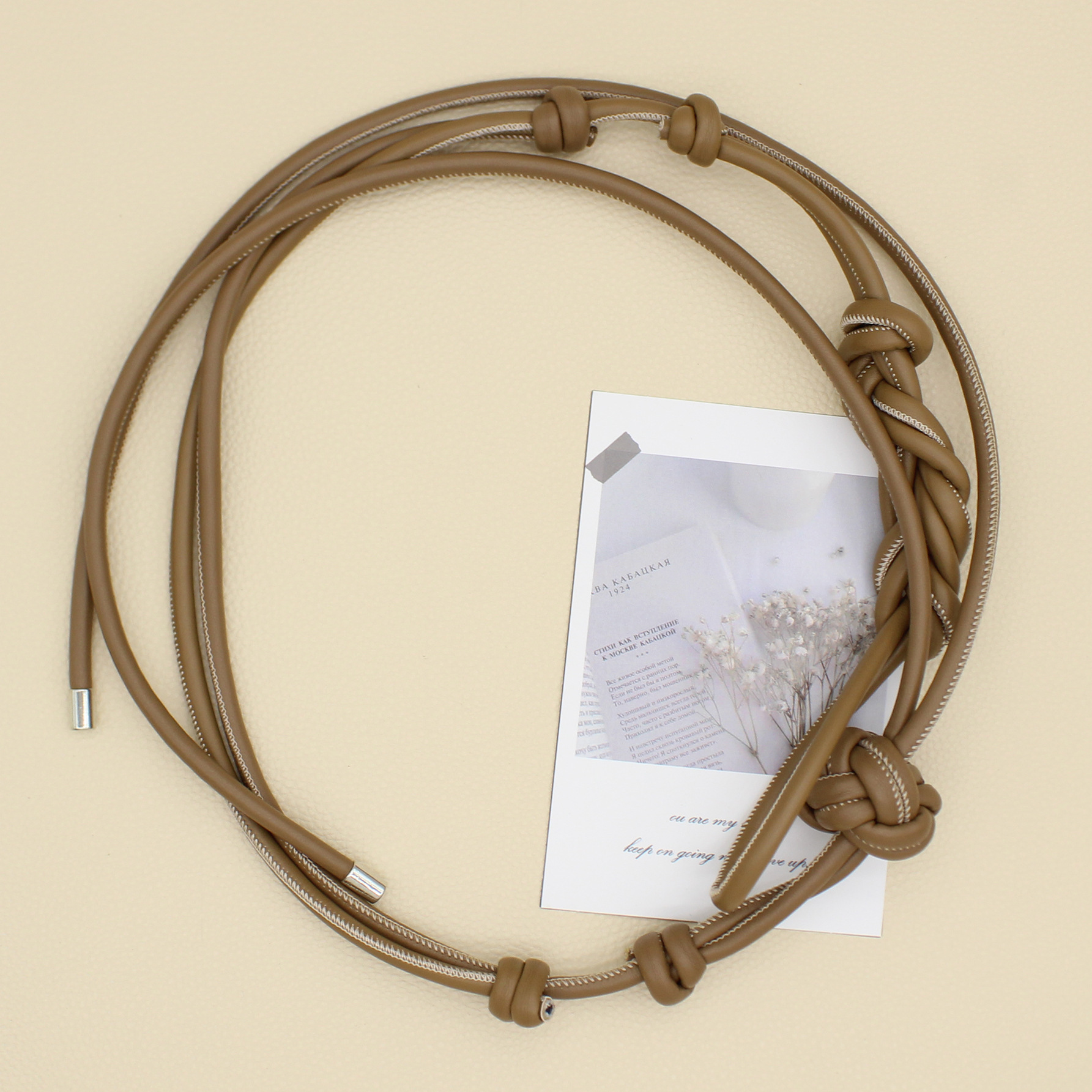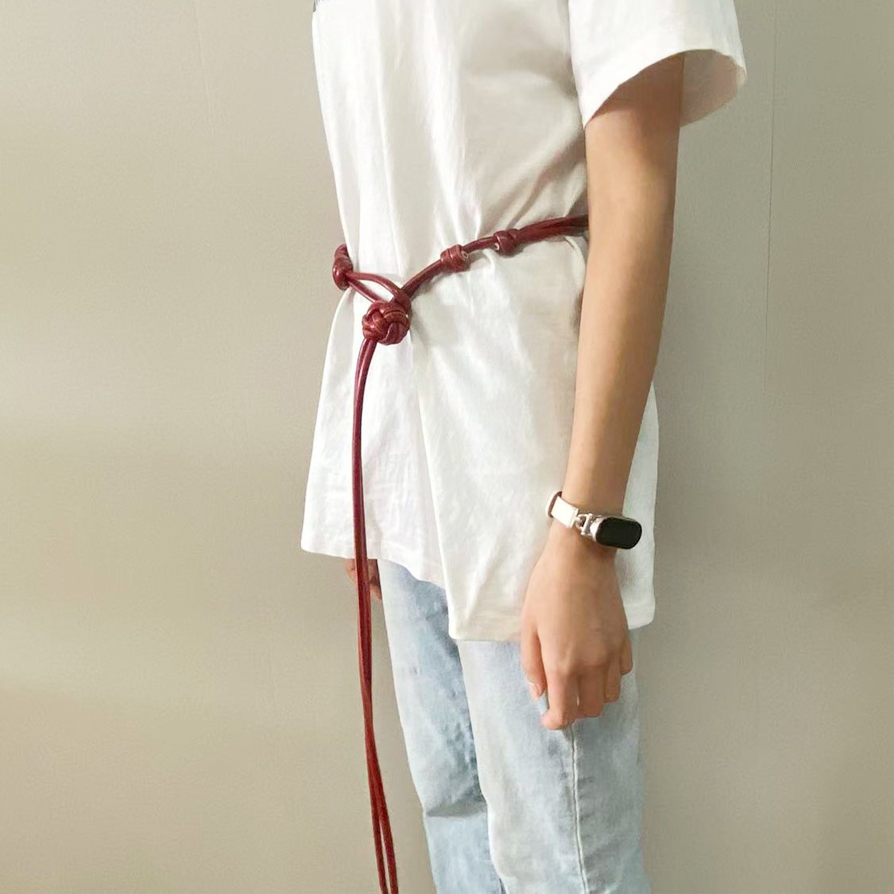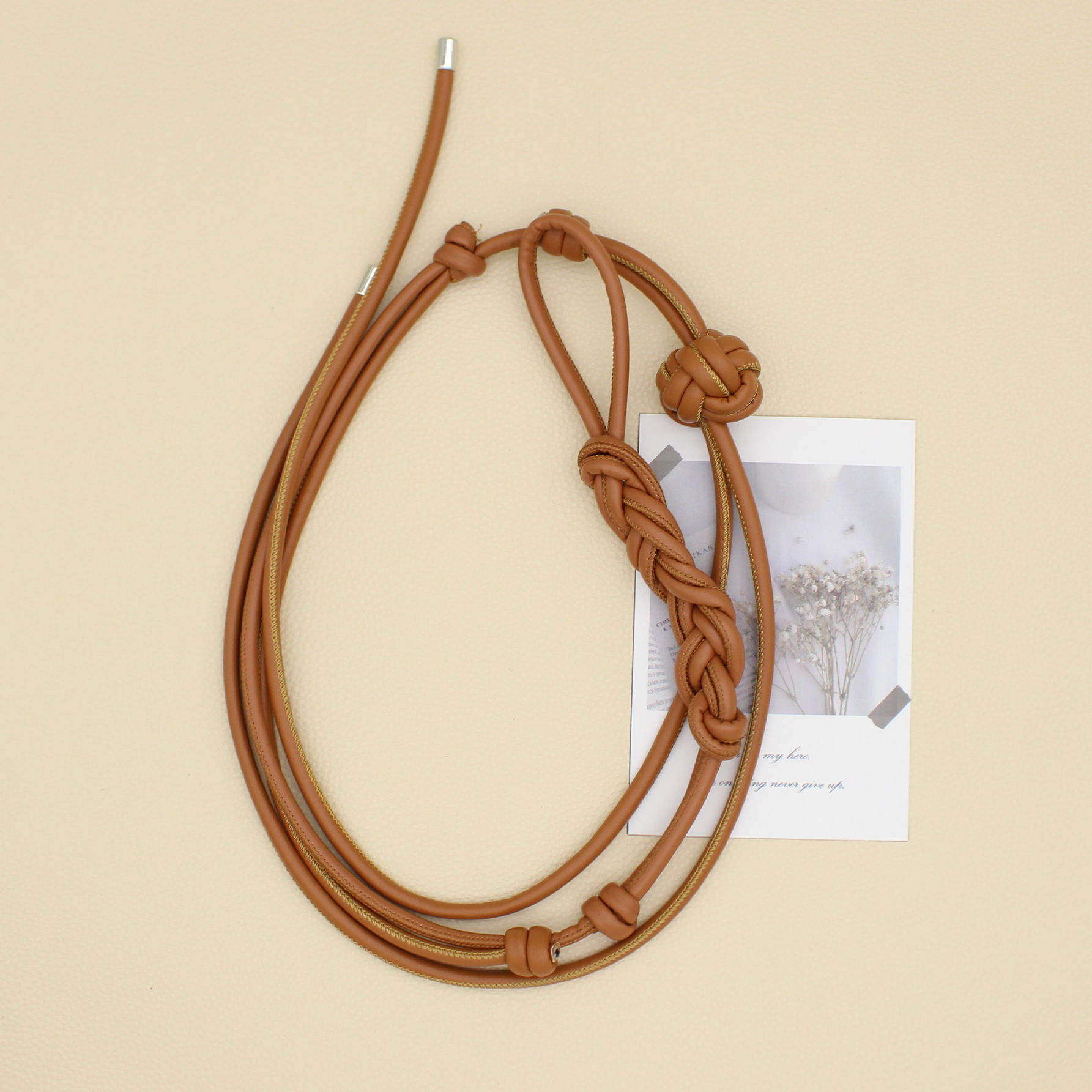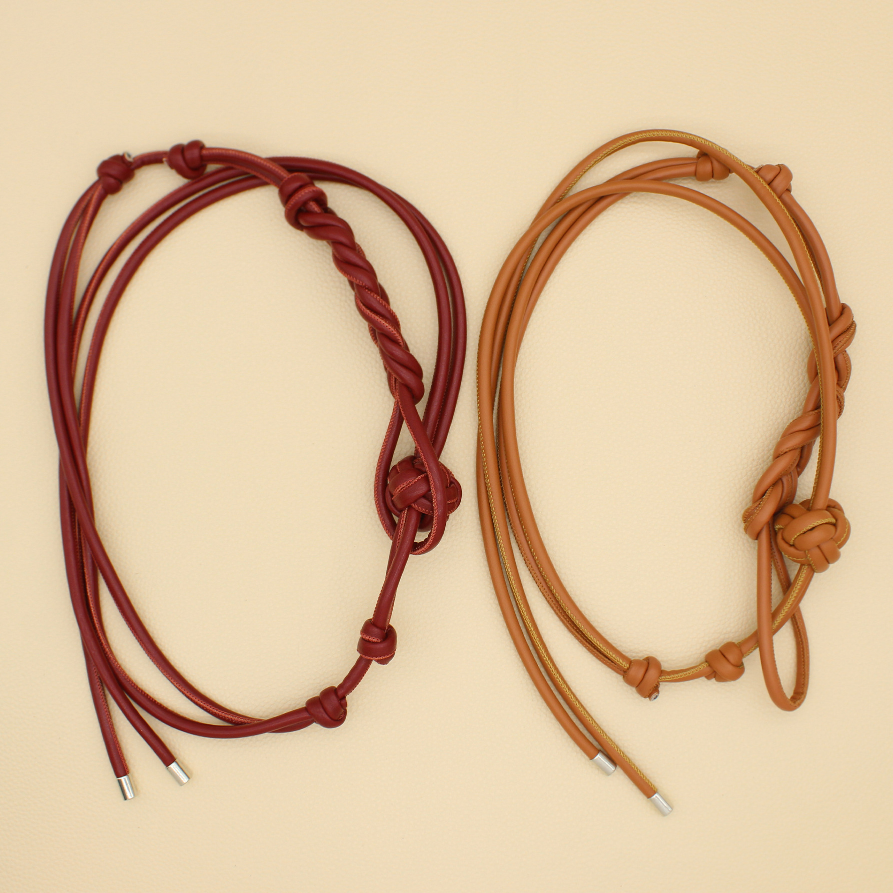 新款复古配色百搭简约精致长款pu皮带手工打结腰带配饰批发小红书