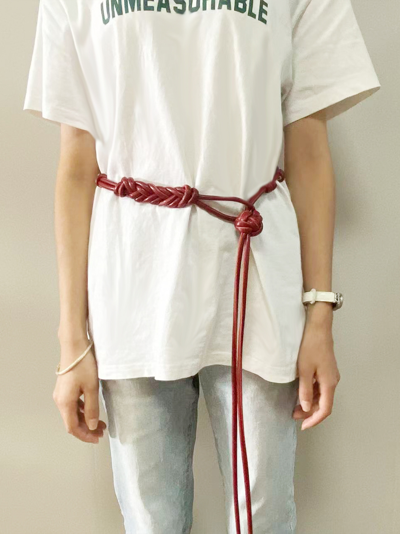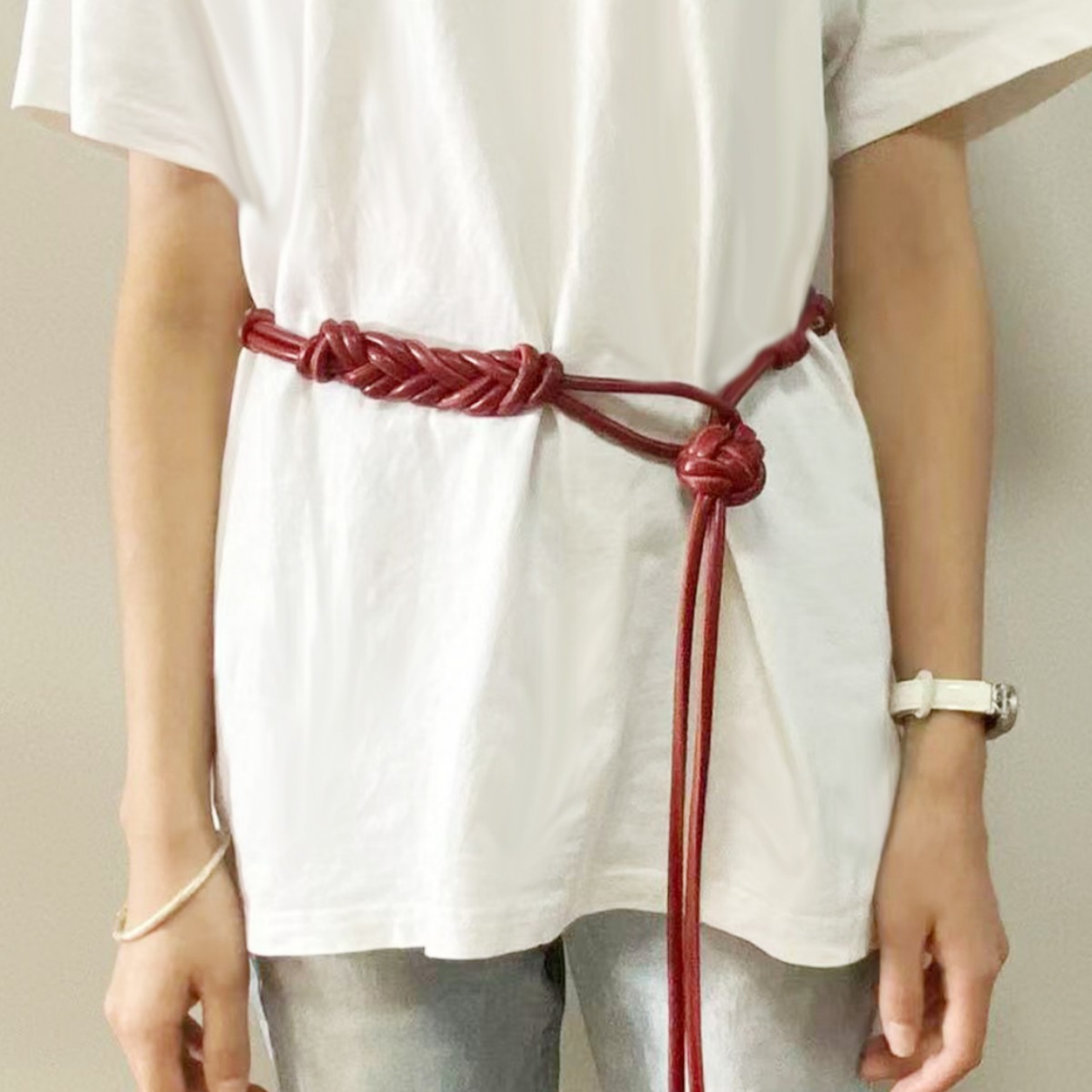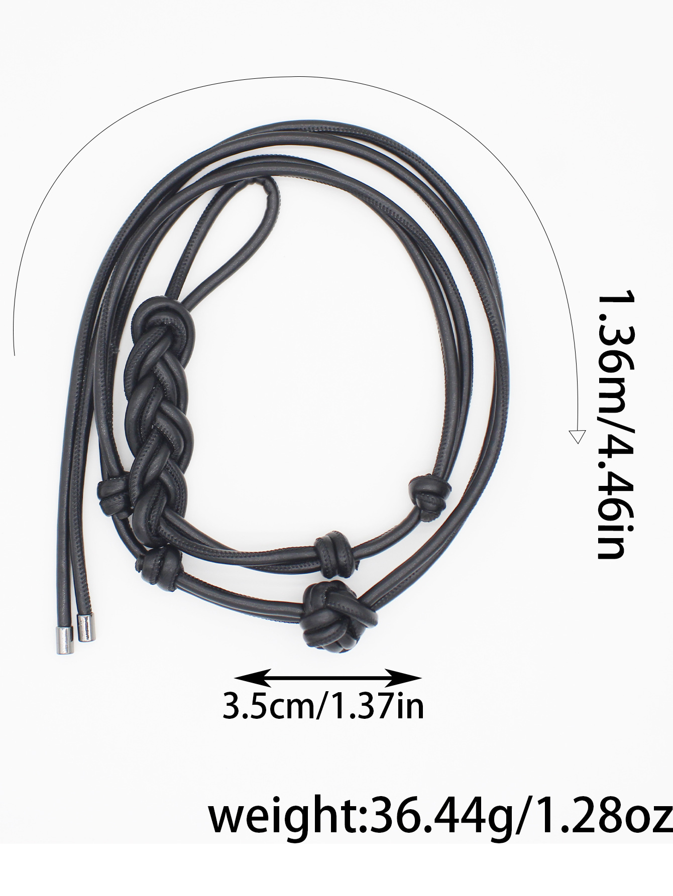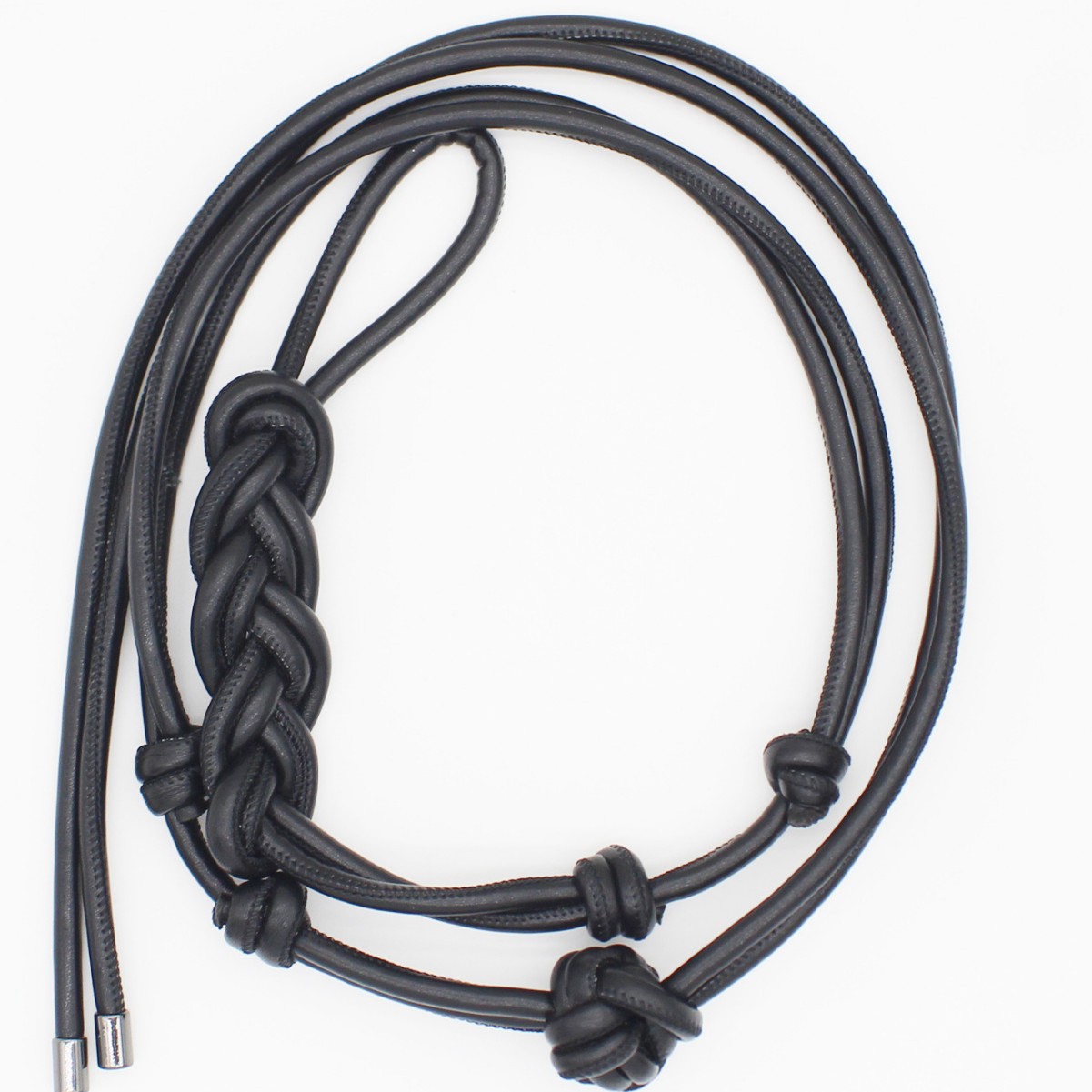 新款复古配色百搭简约精致长款pu皮带手工打结腰带配饰批发小红书