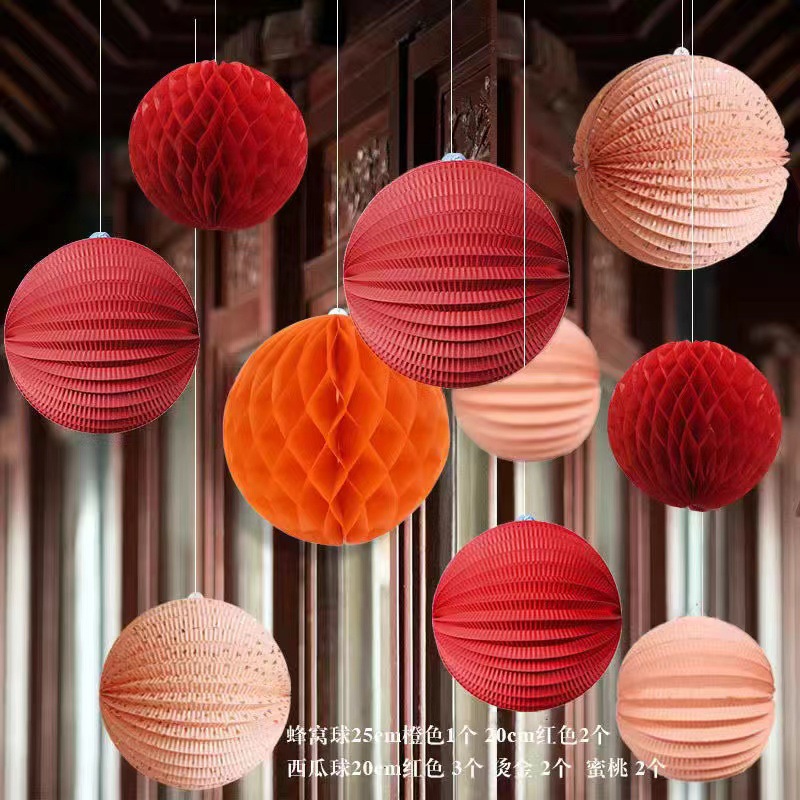 婚房挂饰挂件蜂窝球西瓜灯笼结婚订婚背景墙装饰婚礼布置西瓜灯笼