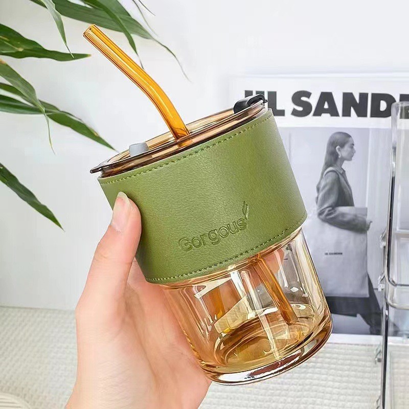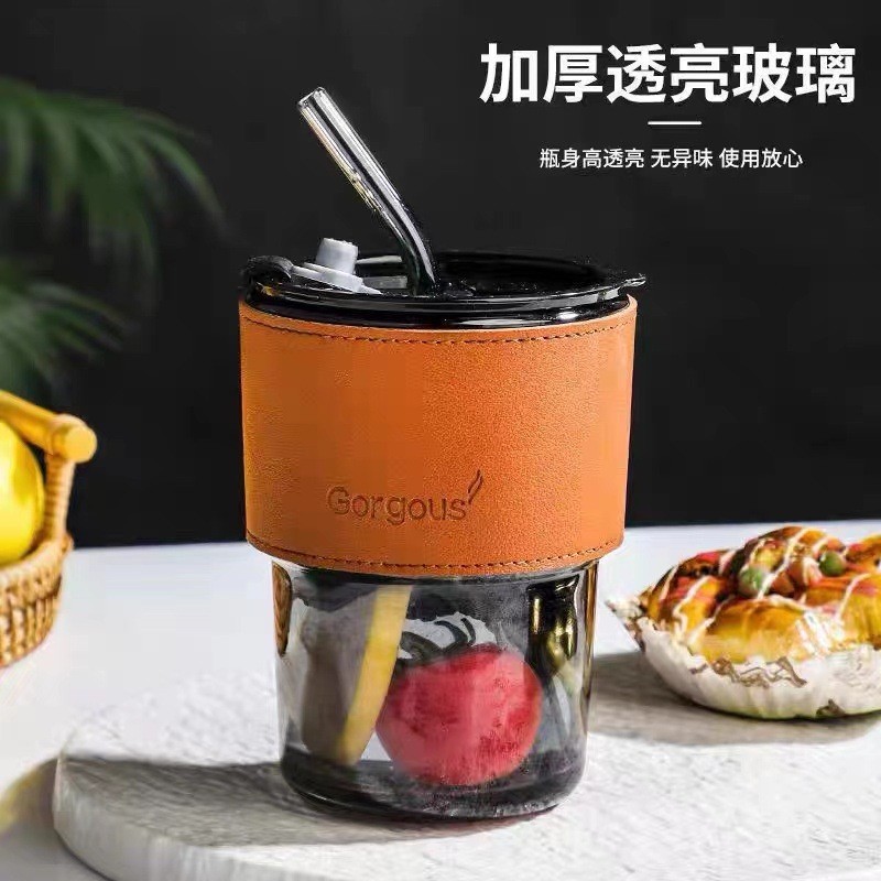 新款批发竹节杯玻璃ins双饮杯咖啡果汁吸管杯家用学生礼品牛奶杯