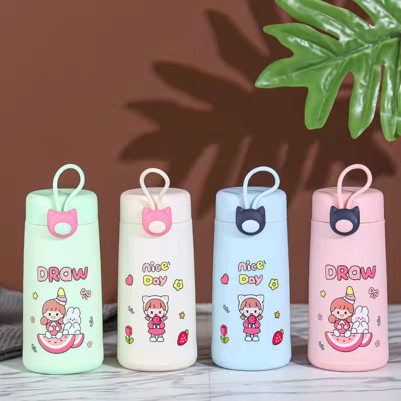 可爱便携玻璃水杯地推活动礼品杯提绳广告杯印logo双层隔热塑玻杯