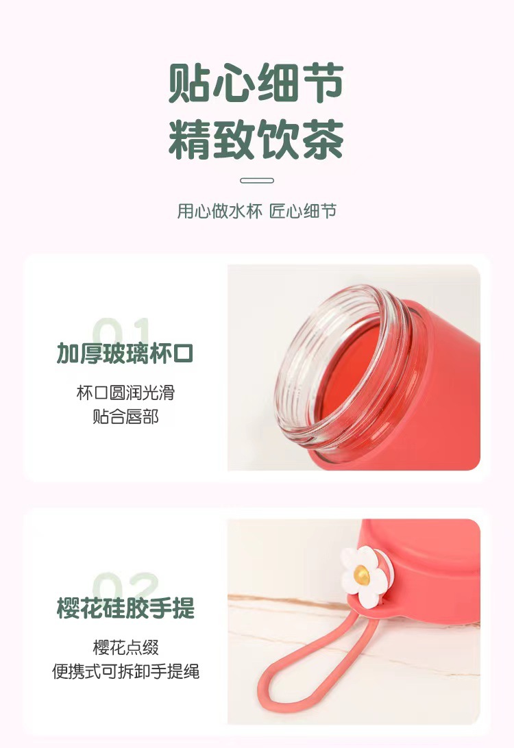 新款花香杯玻璃杯学生水杯可爱双层卡通杯礼品百货便携玻璃水杯