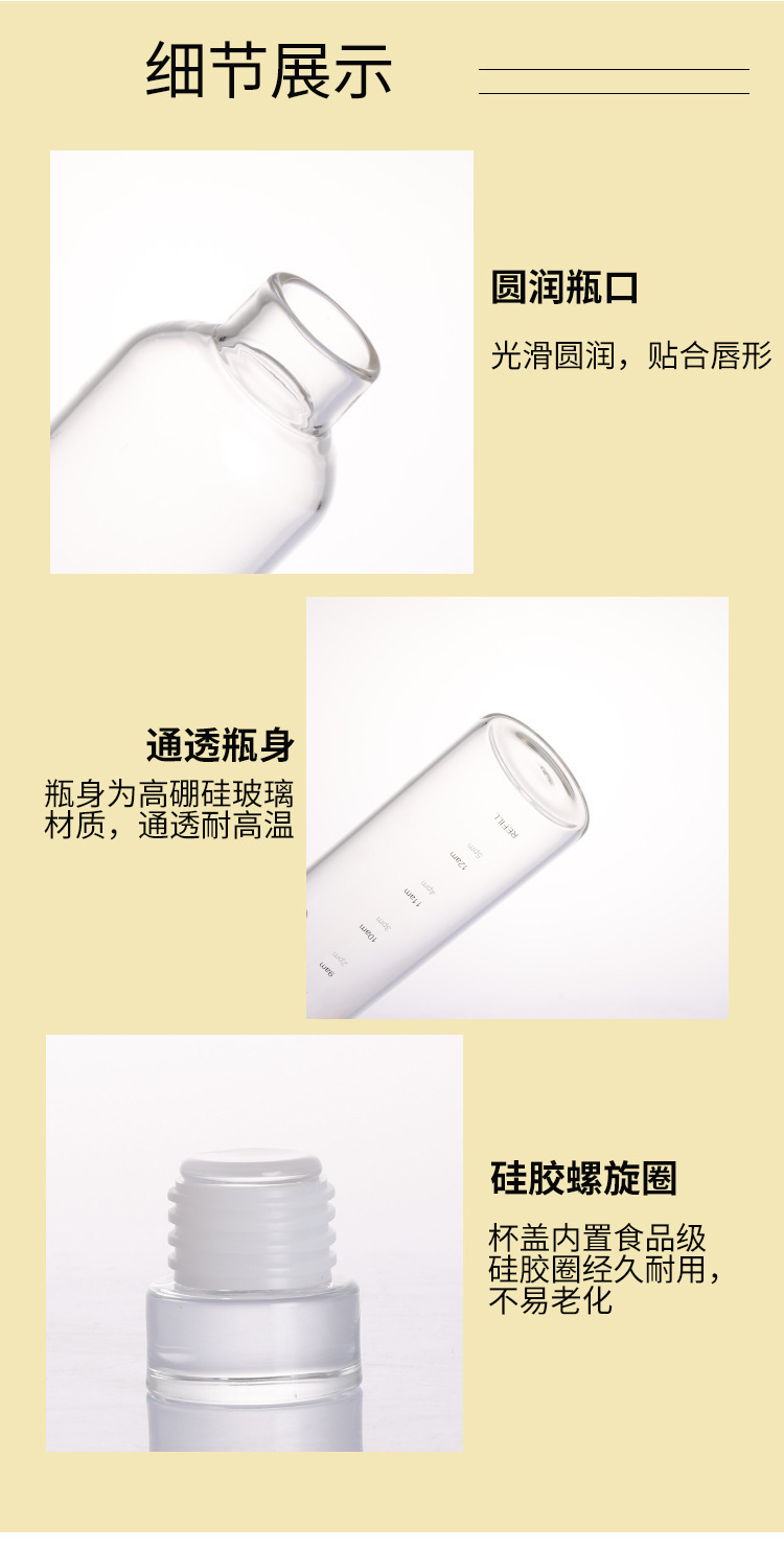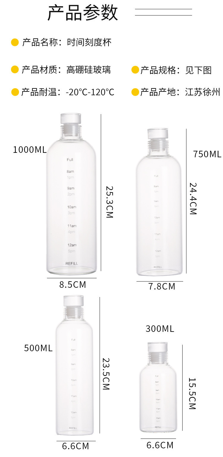 新款时光刻度杯高硼硅玻璃水杯耐学生便捷咖啡杯冷泡杯跨境亚马逊