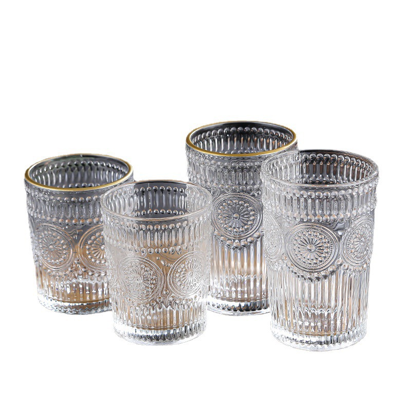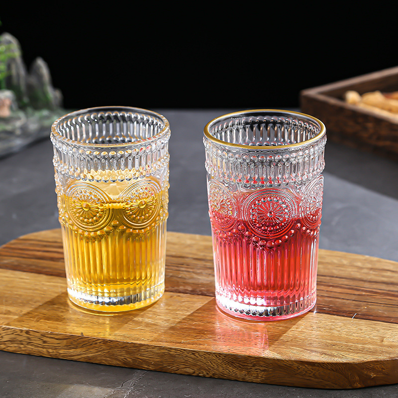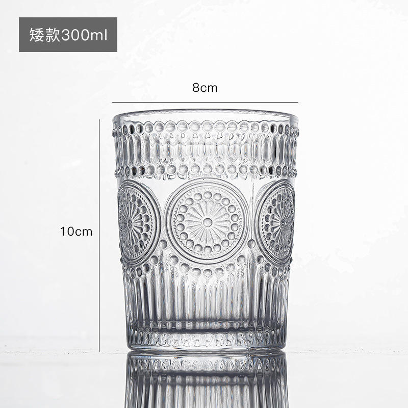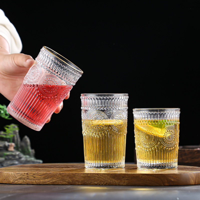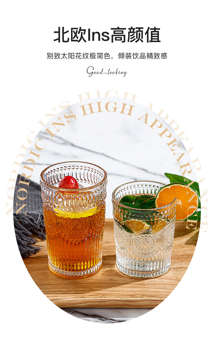复古太阳花玻璃杯金边浮雕玻璃咖啡杯高颜值地推礼品杯伴手礼杯