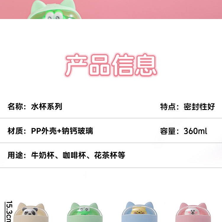 批发萌宠杯创意卡通公仔杯学生喝水杯可爱儿童水杯开业礼品玻璃杯
