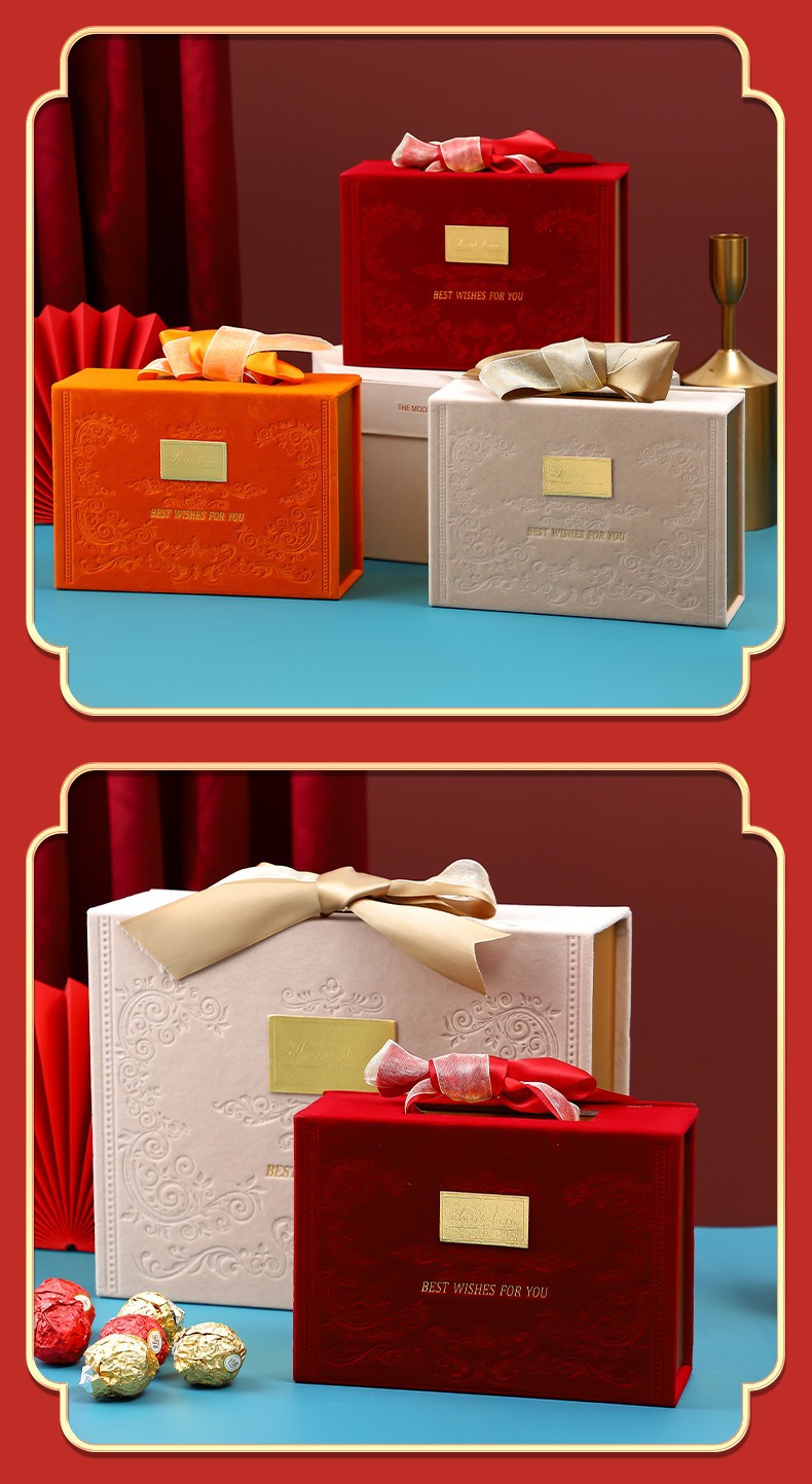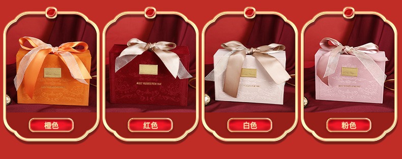 现货中式结婚订婚喜糖盒轻奢绒面手提婚庆糖果盒伴郎伴娘伴手礼盒