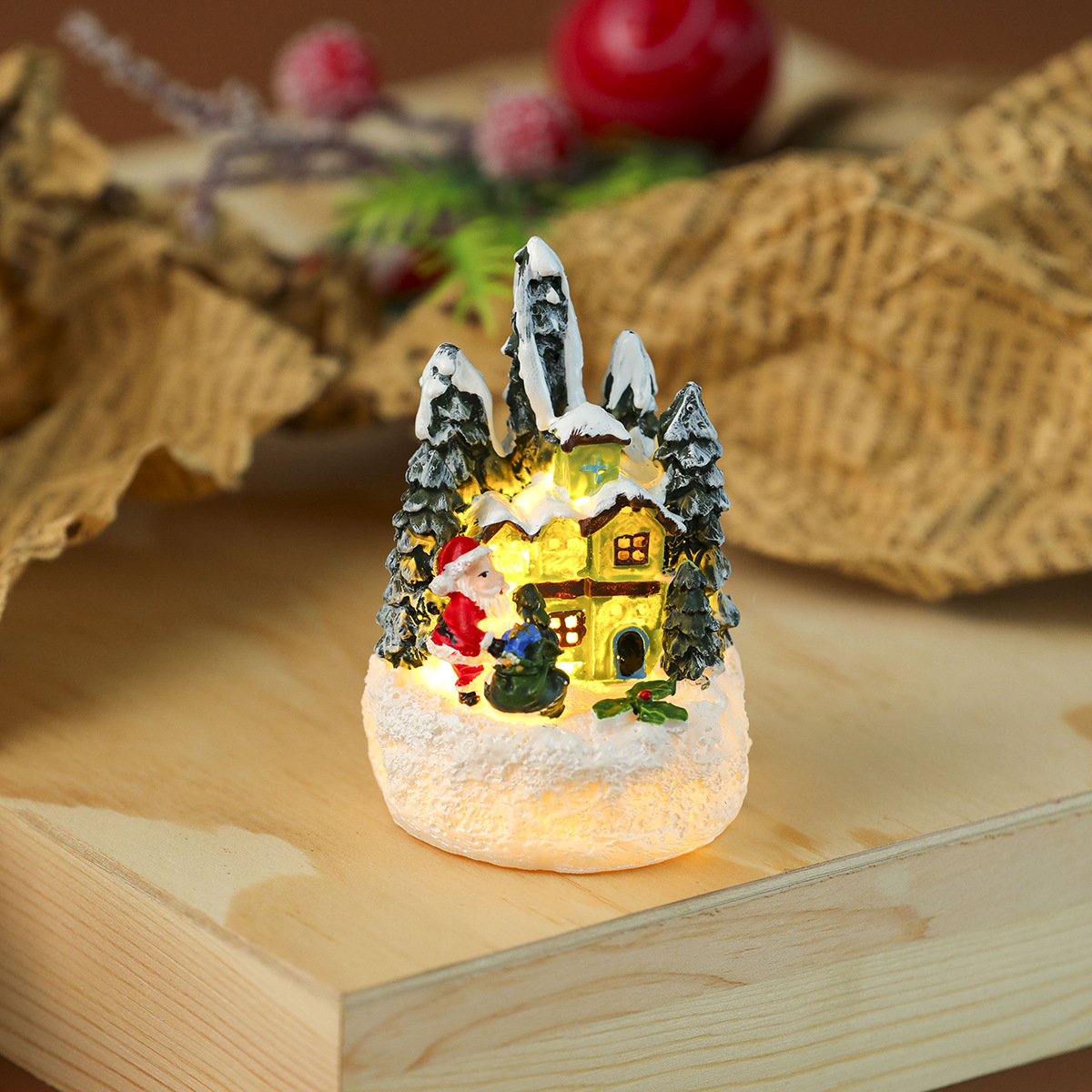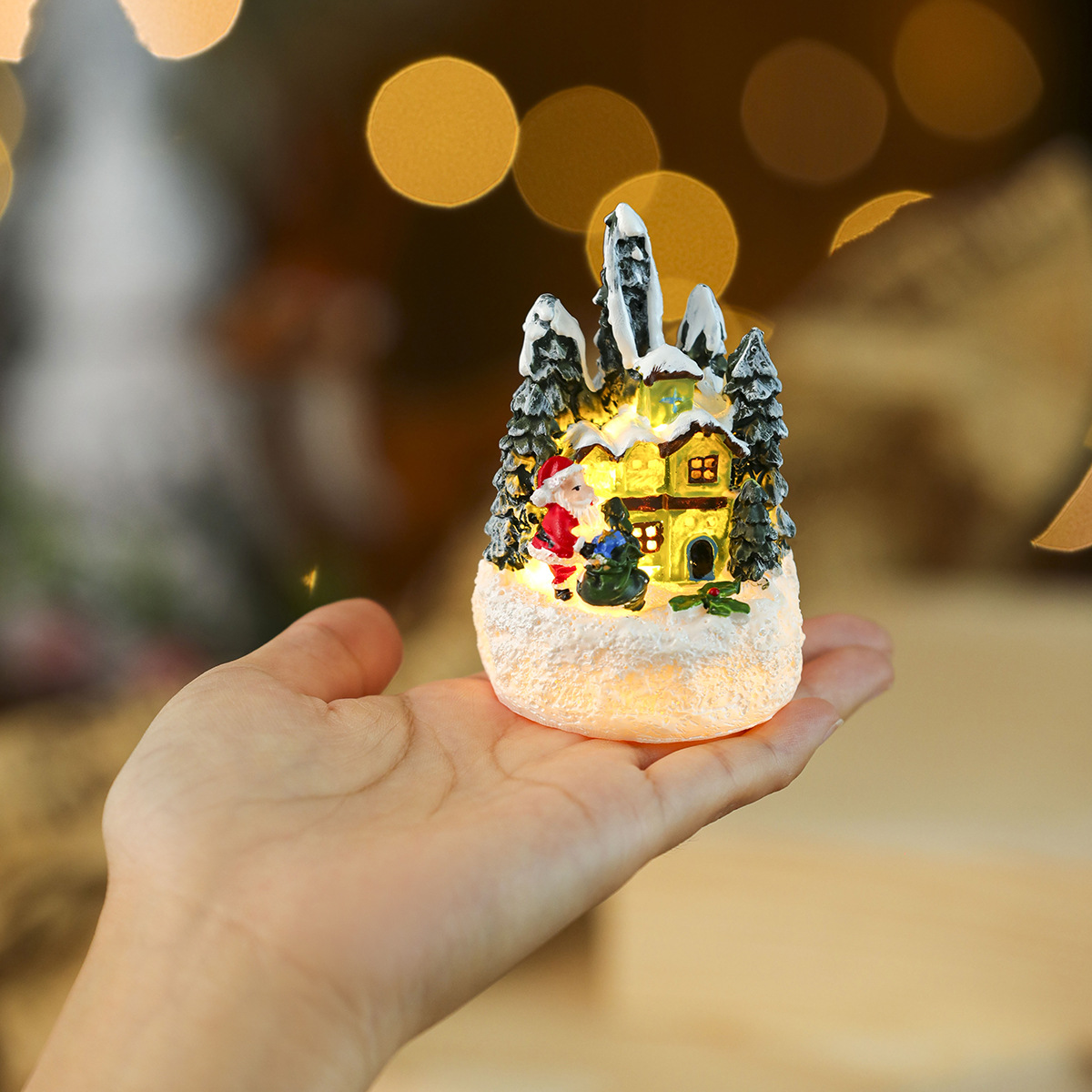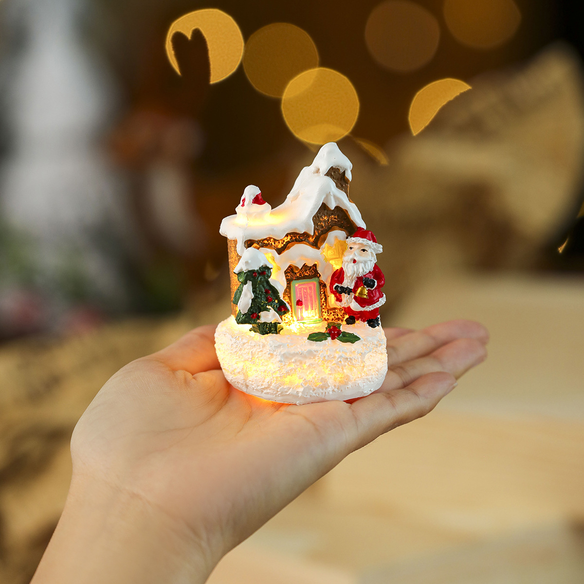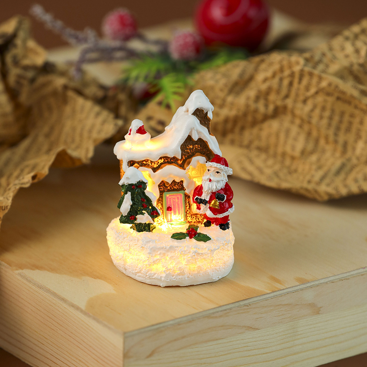 跨境新款圣诞发光树脂小房子 圣诞老人景观礼物摆件圣诞节装饰品