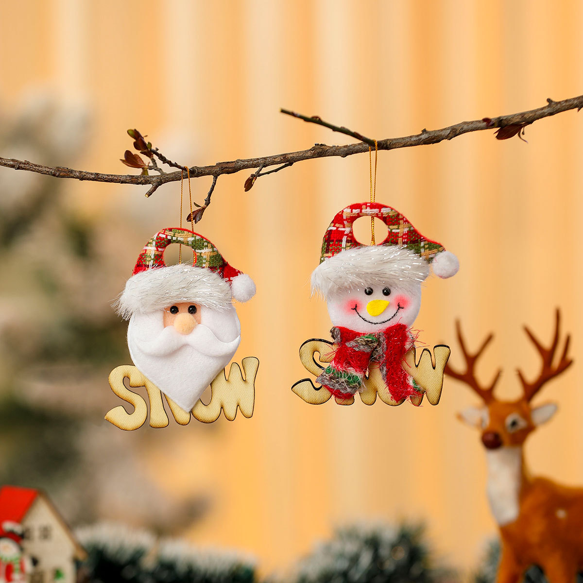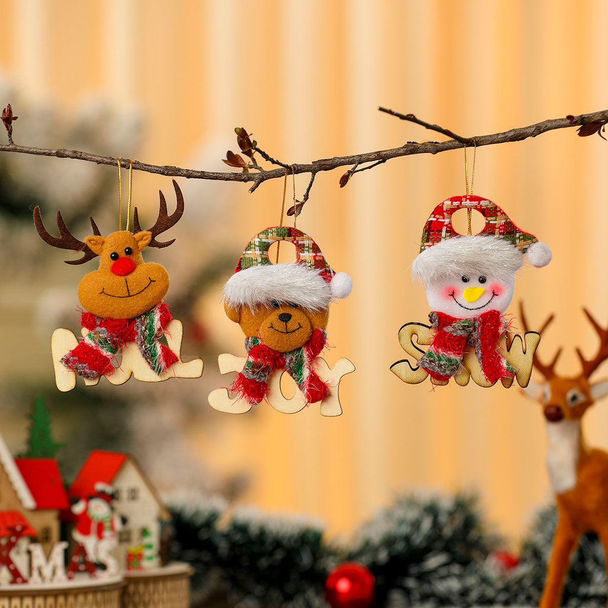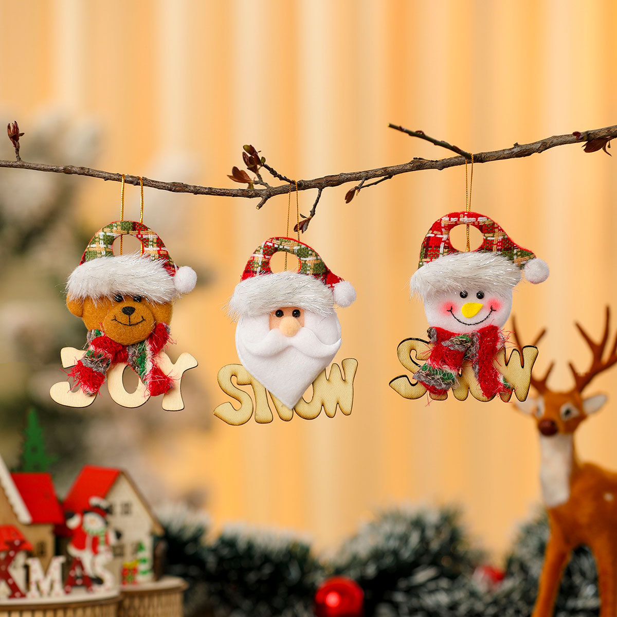跨境新款木质字母牌公仔挂件 圣诞树装饰小挂饰 圣诞节装饰品
