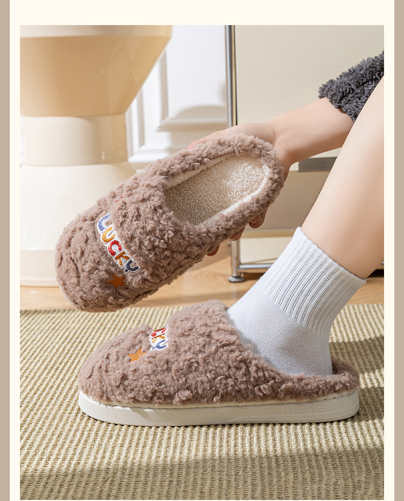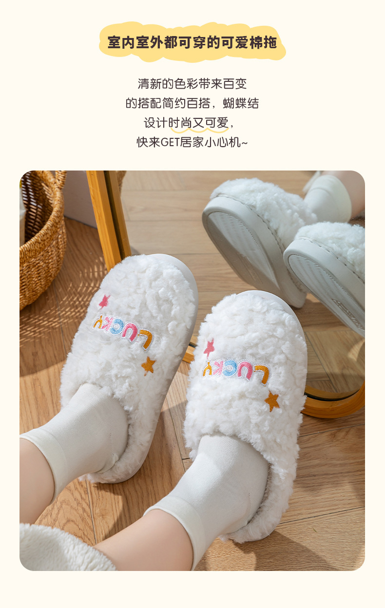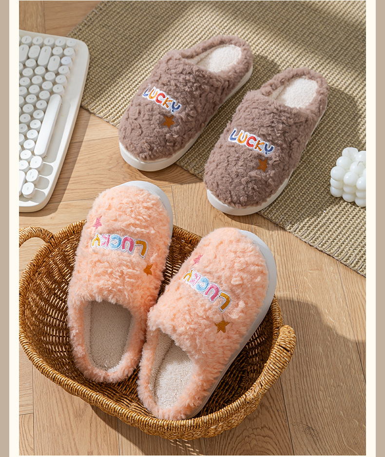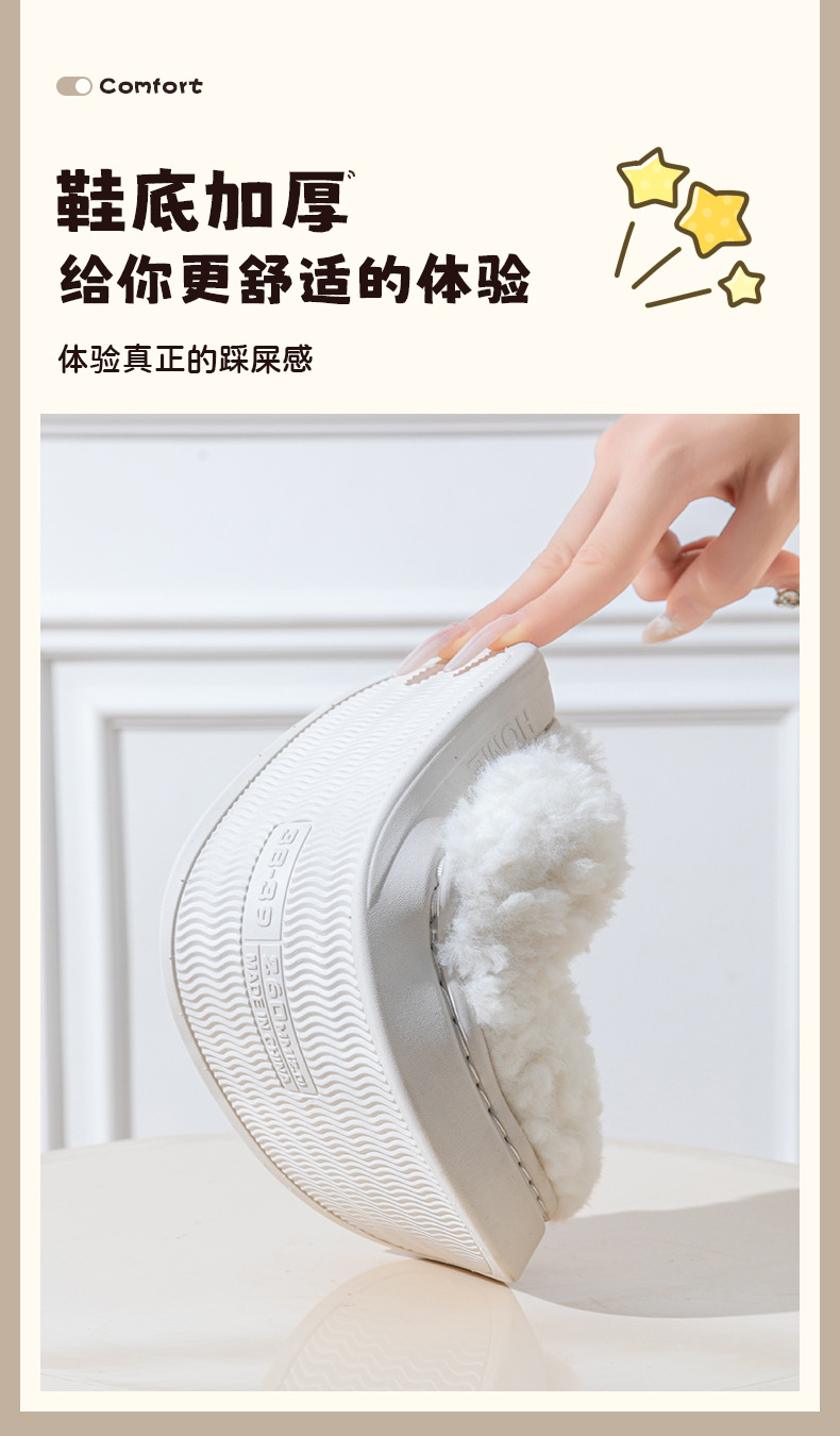 冬季女士毛绒棉拖鞋厚底防滑保暖防臭室内居家棉鞋男士踩屎感拖鞋