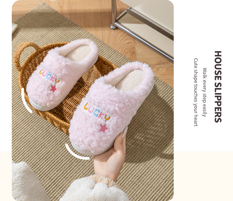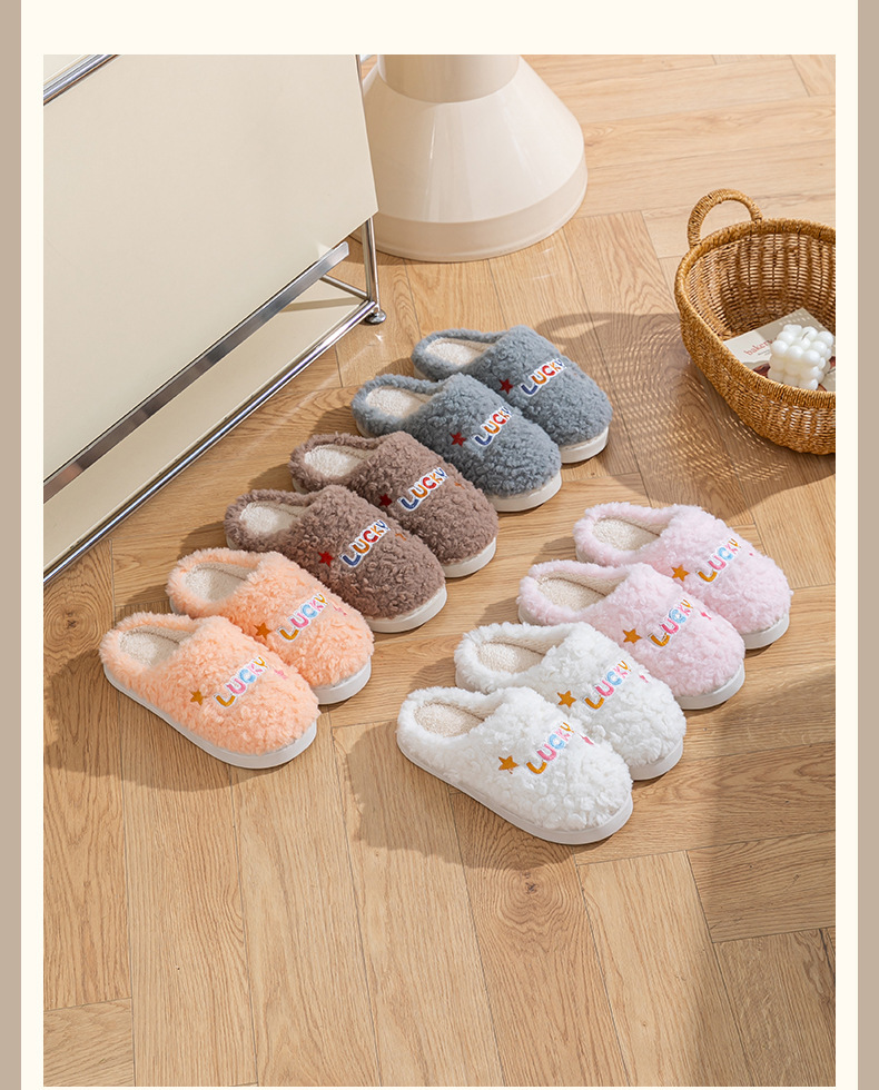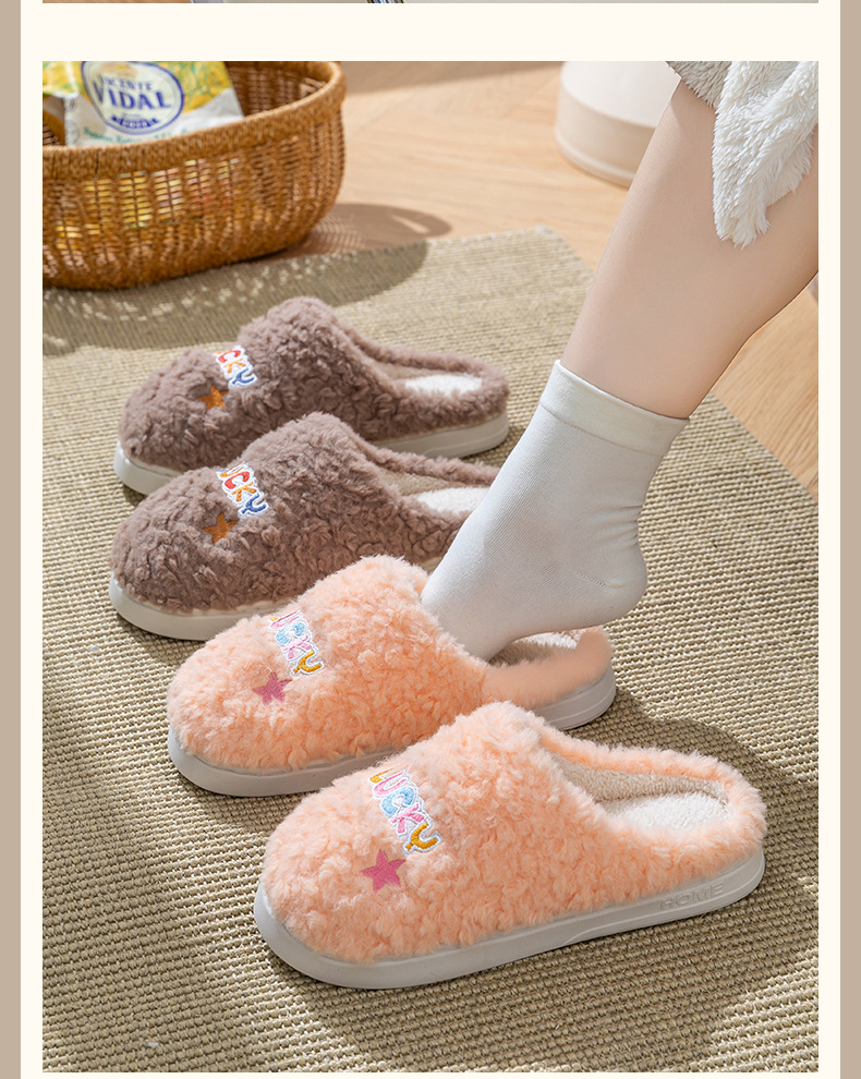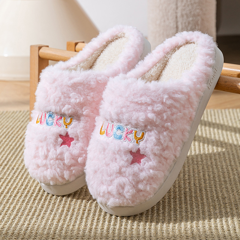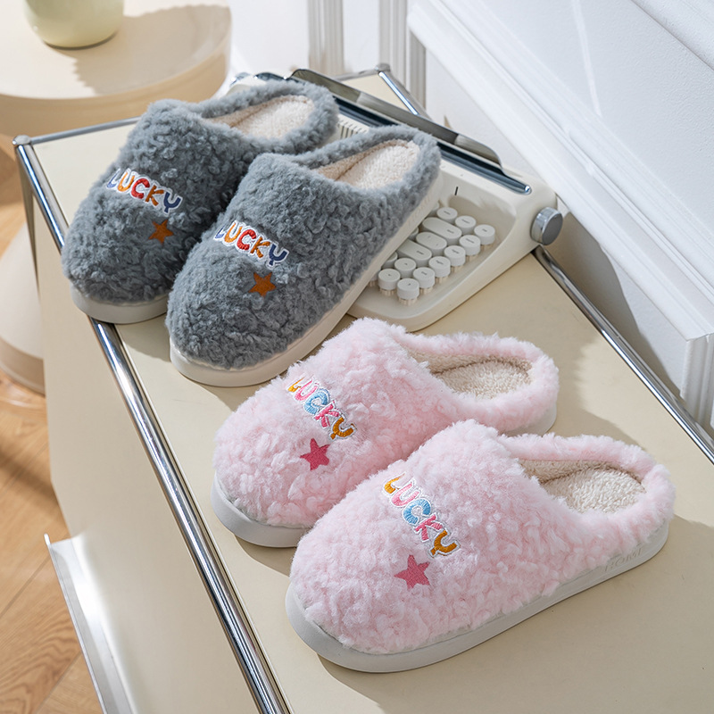 冬季女士毛绒棉拖鞋厚底防滑保暖防臭室内居家棉鞋男士踩屎感拖鞋
