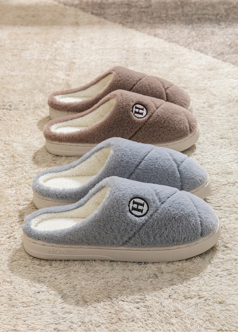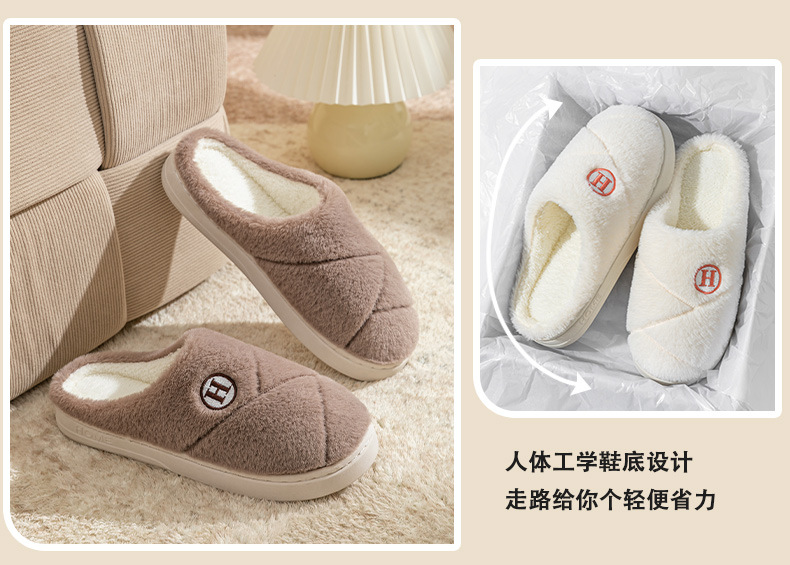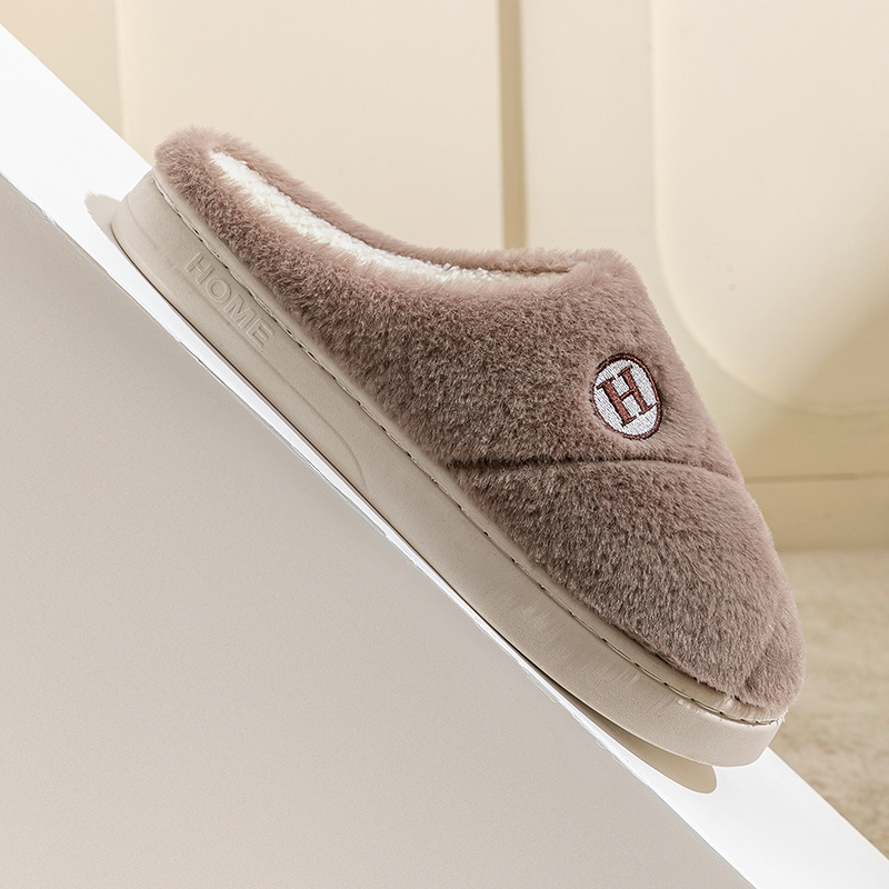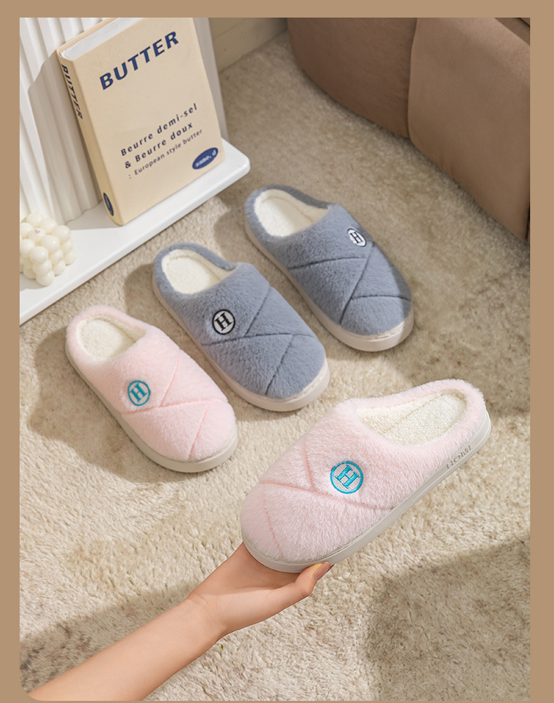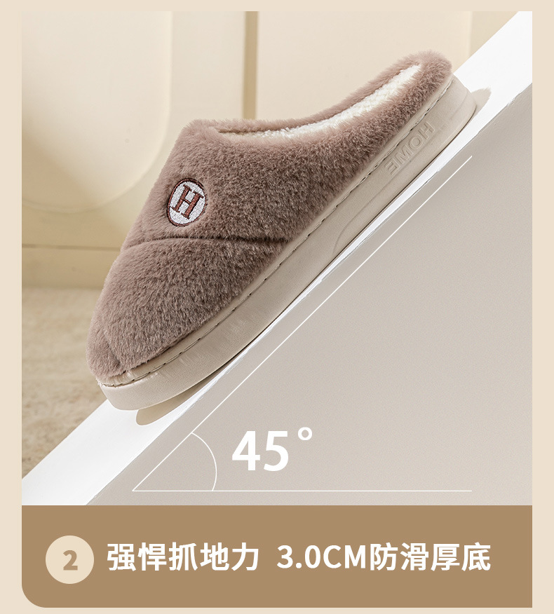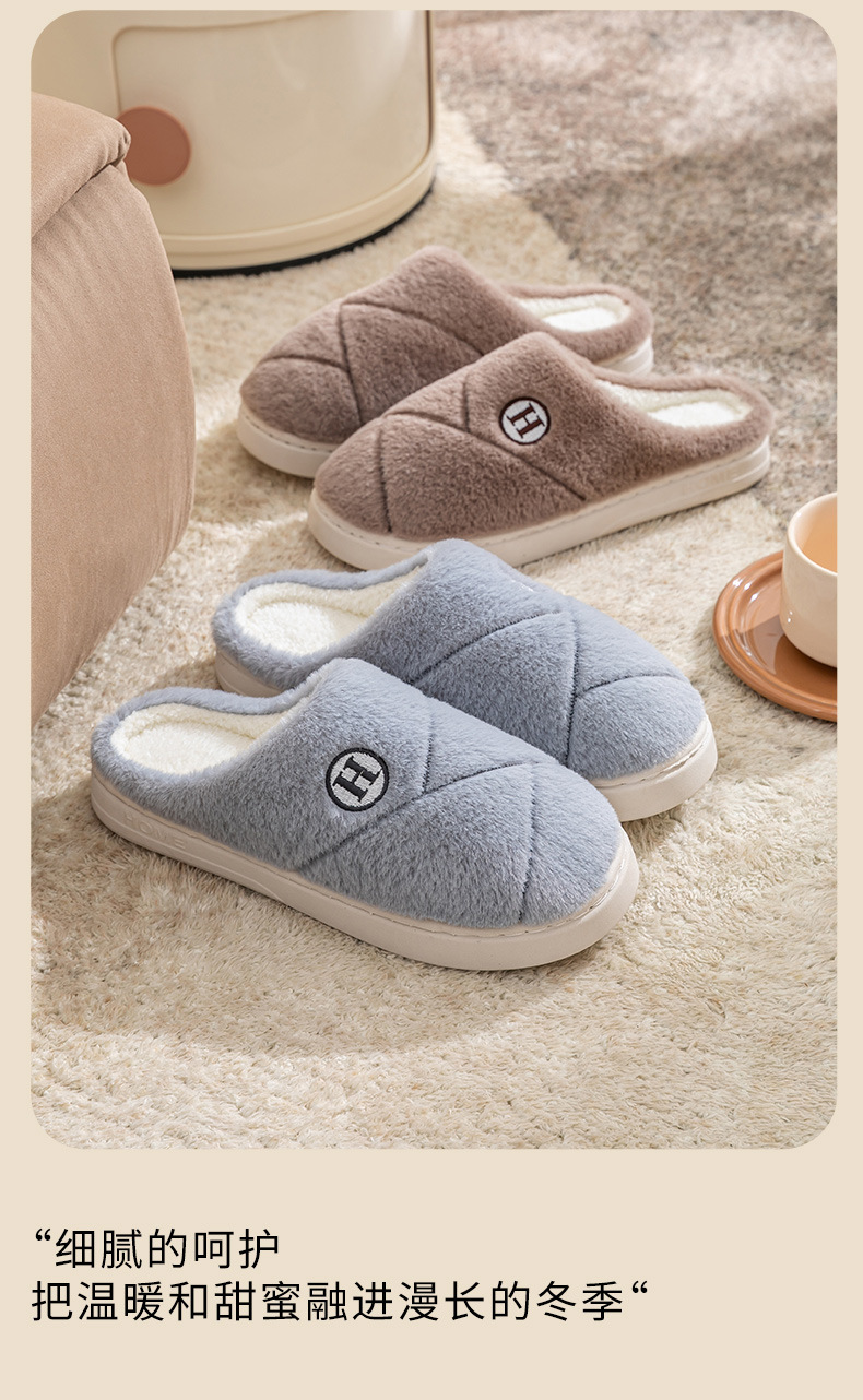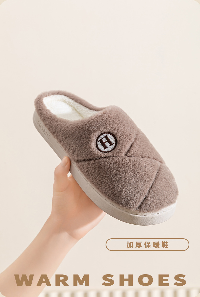 2025新款厚底冬季加绒保暖棉拖鞋女室内家居家静音防滑一字拖鞋男
