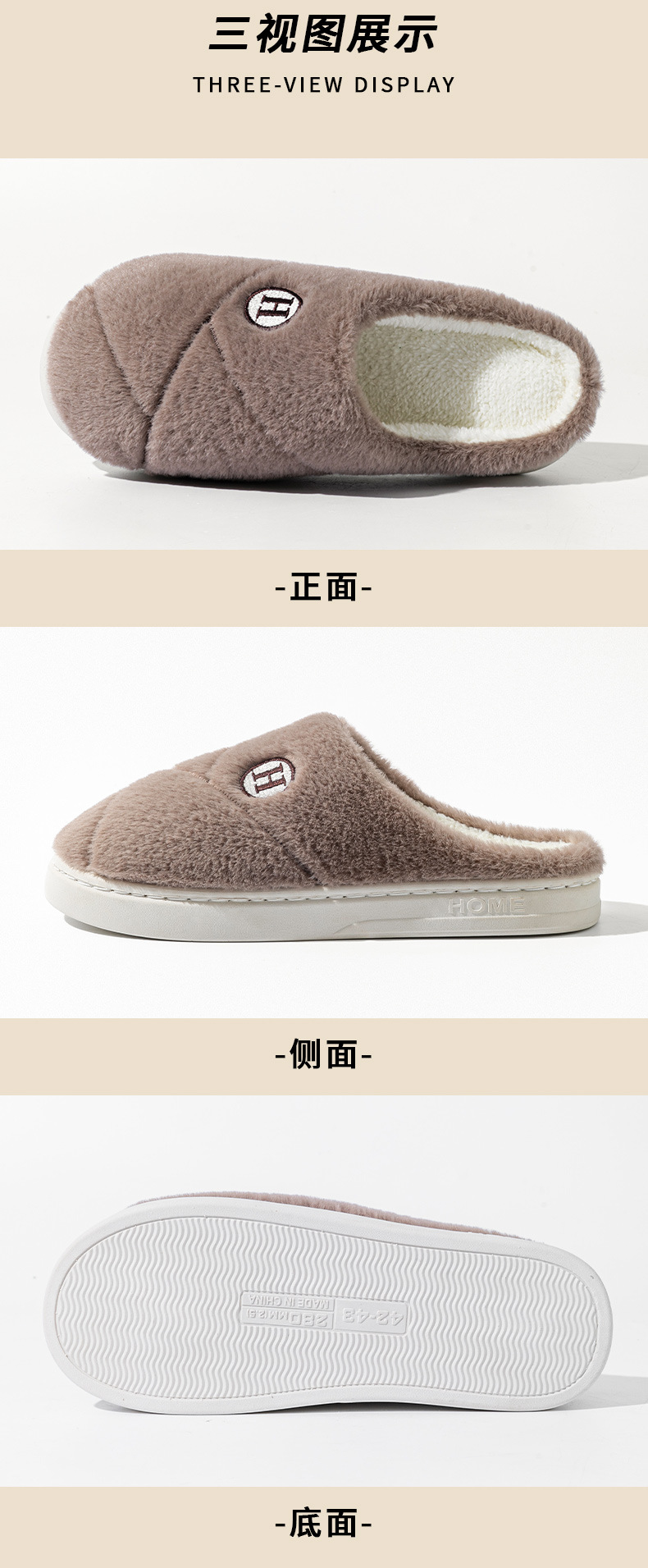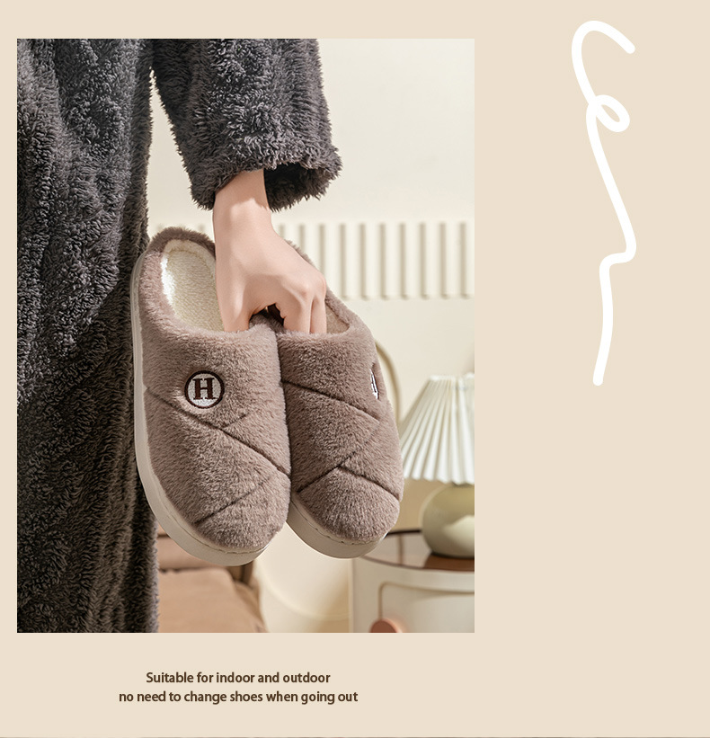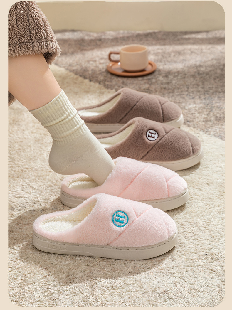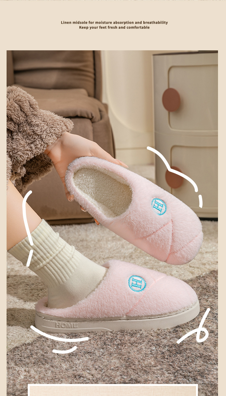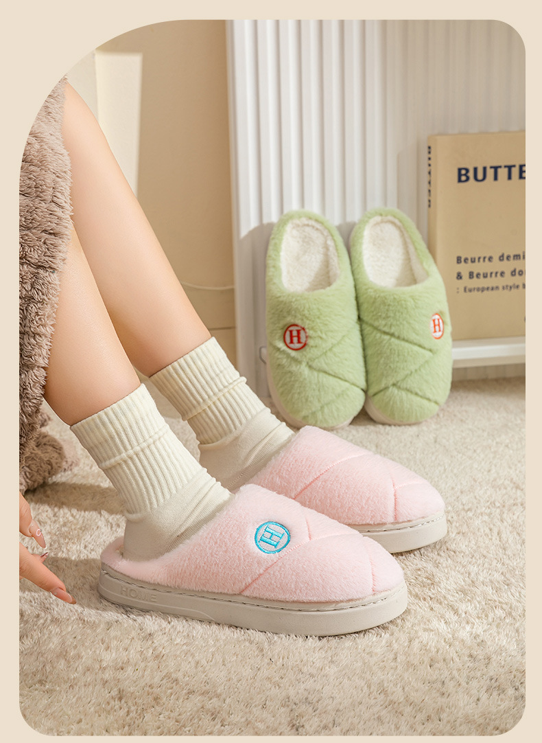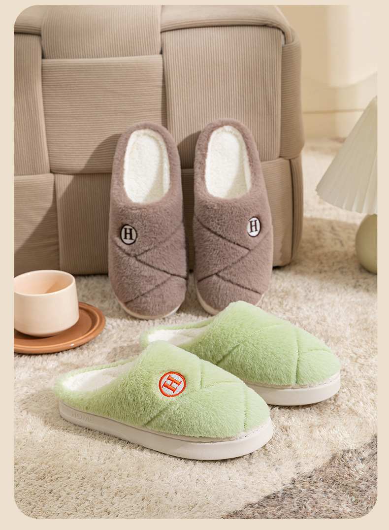 2025新款厚底冬季加绒保暖棉拖鞋女室内家居家静音防滑一字拖鞋男