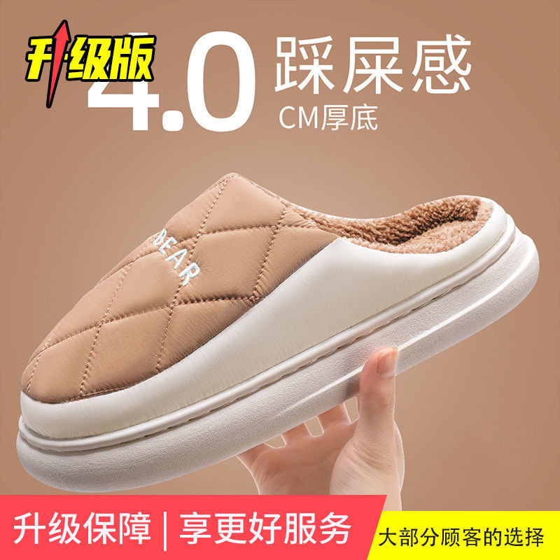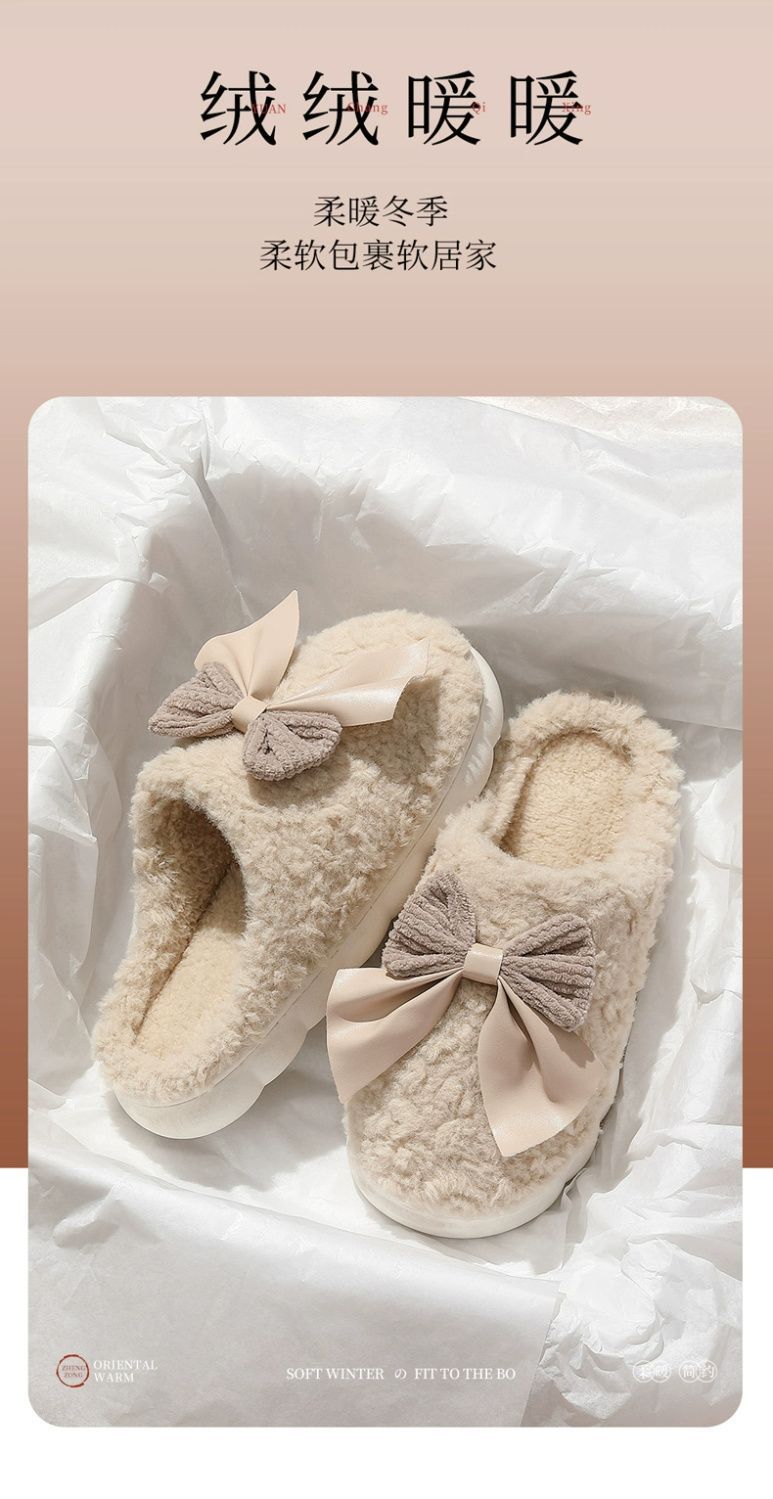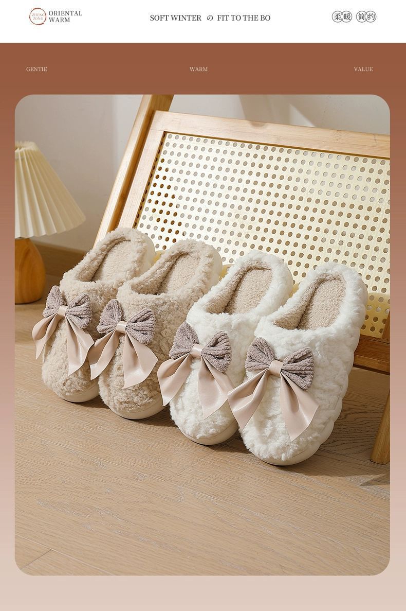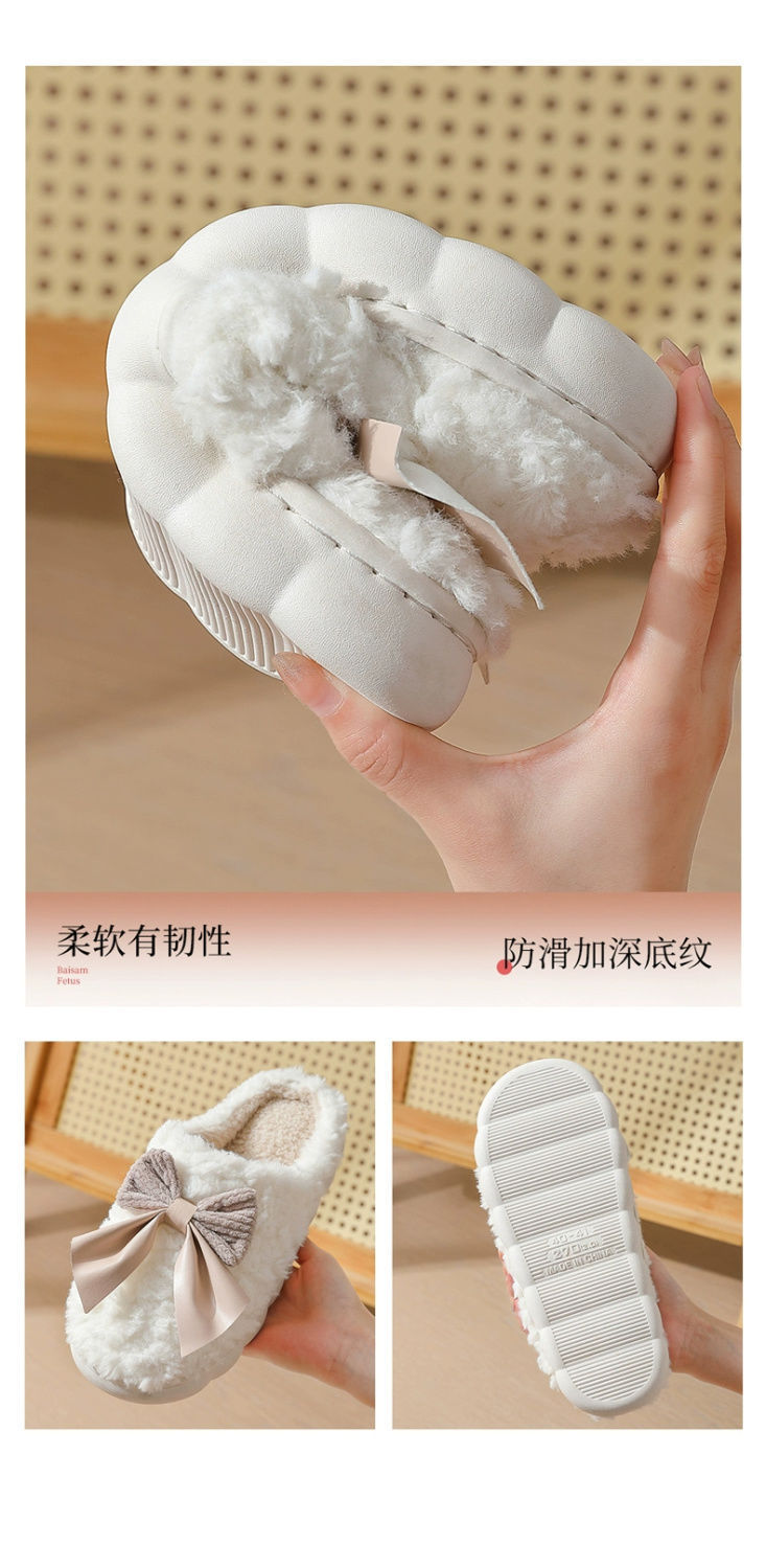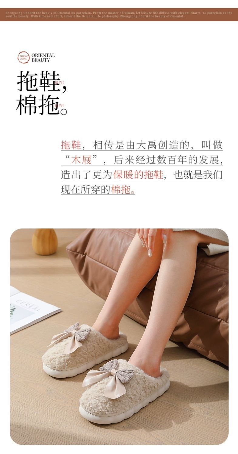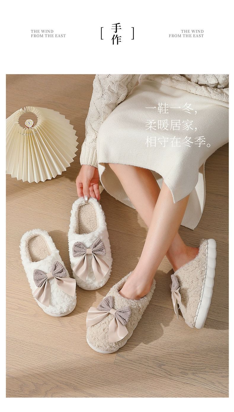 甜美蝴蝶结棉拖鞋女秋冬季室内居家少女防滑厚底家用毛绒拖鞋批发