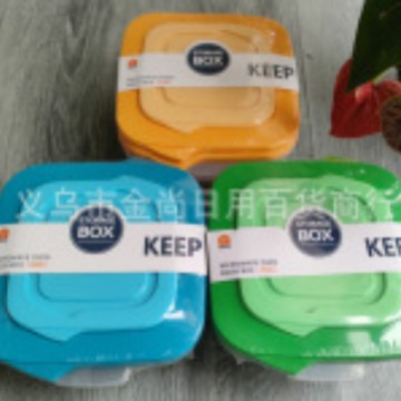 四件套保鲜盒套装圆形方形便携式午餐盒学生上班族便当盒塑料饭盒