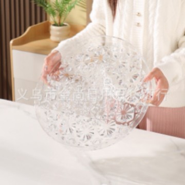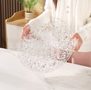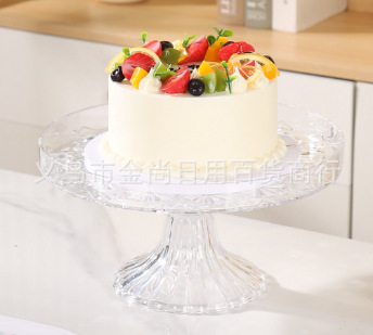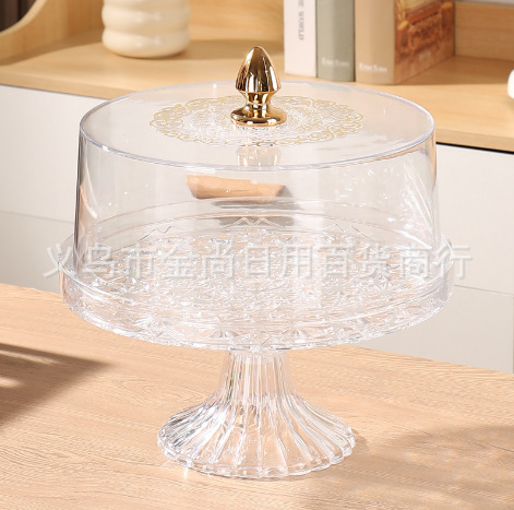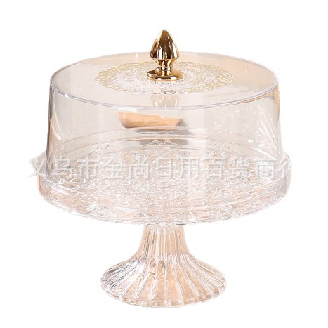 雕花透明托盘带脚带盖蛋糕甜品摆件餐厅水果点心盘彩盒包装