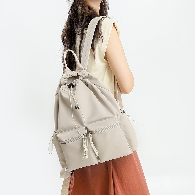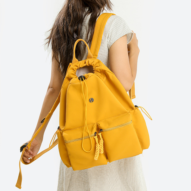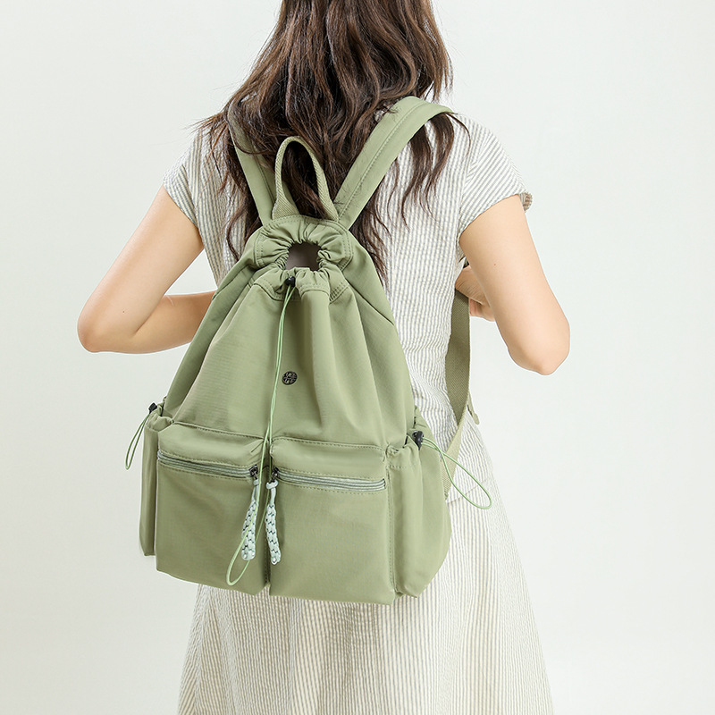 跨境糖果色双肩包新款慵懒风抽绳学生书包高颜值双口袋背包