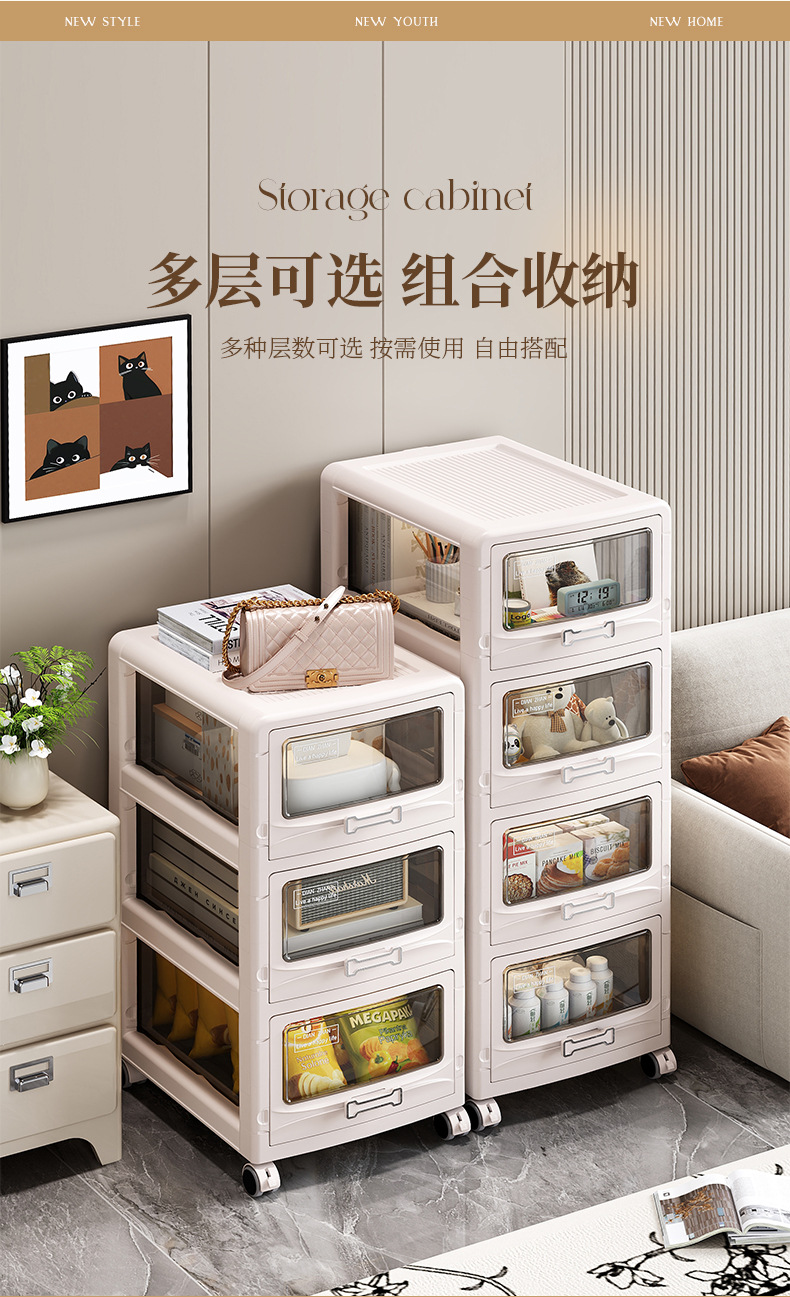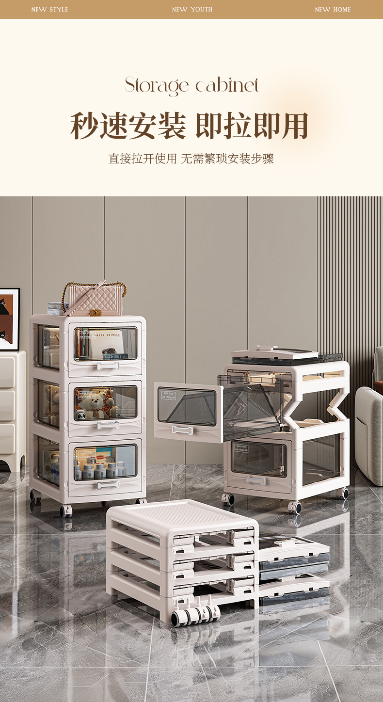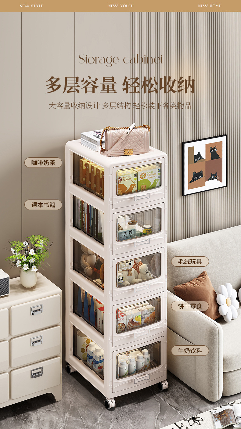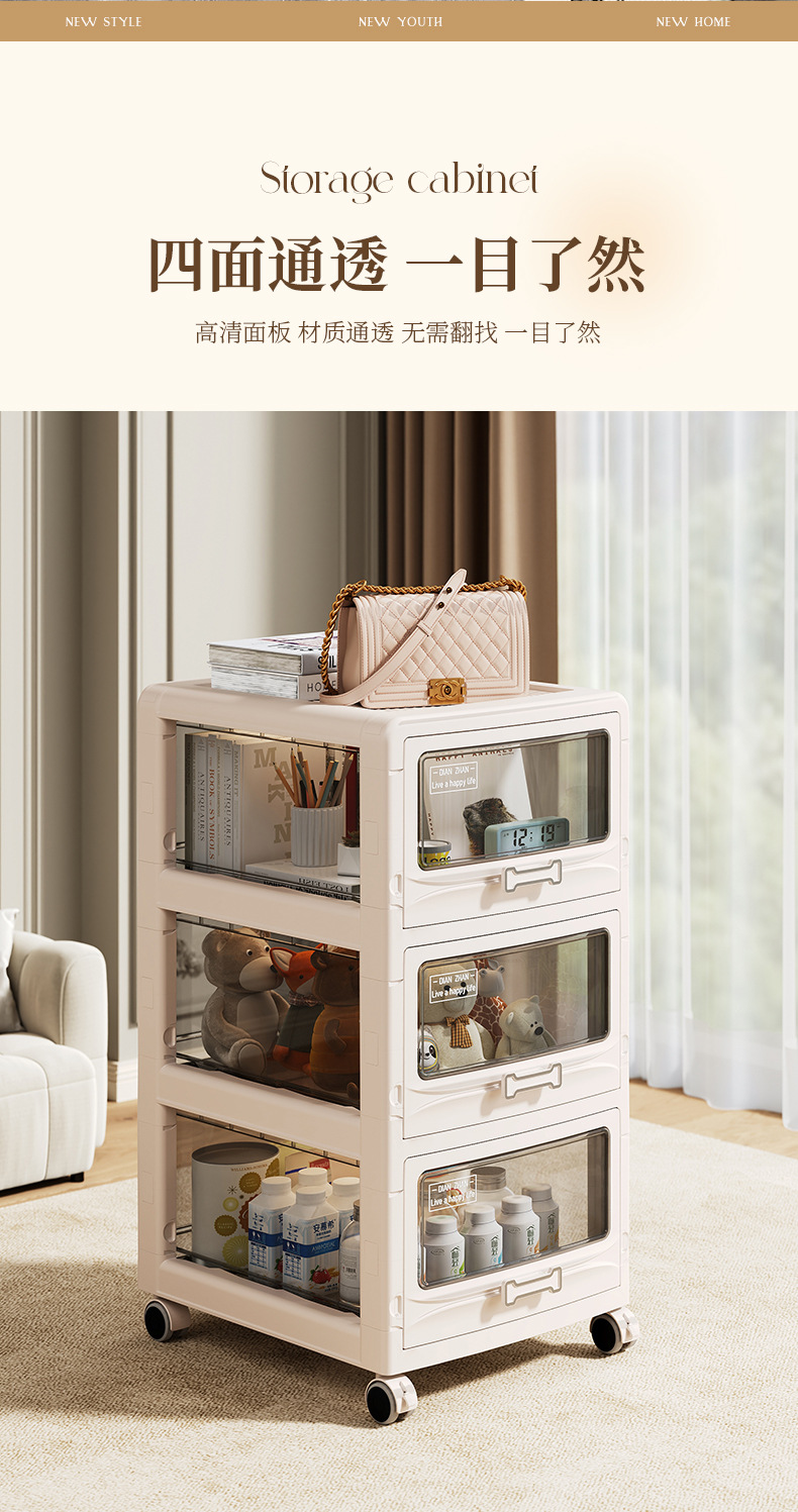 家用多层可折叠可移动收纳柜玩具衣服零食收纳箱折叠抽屉式收纳柜