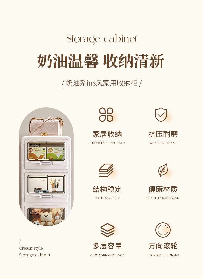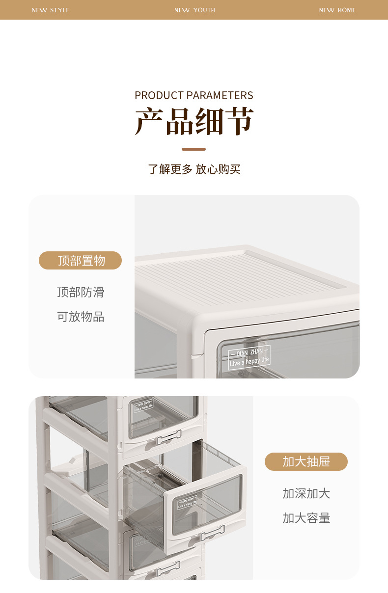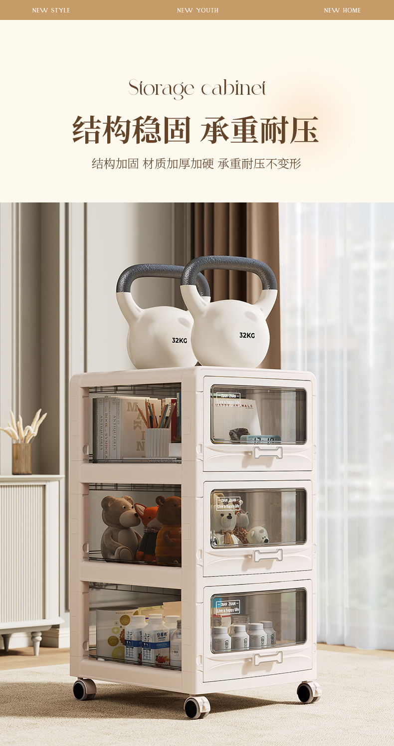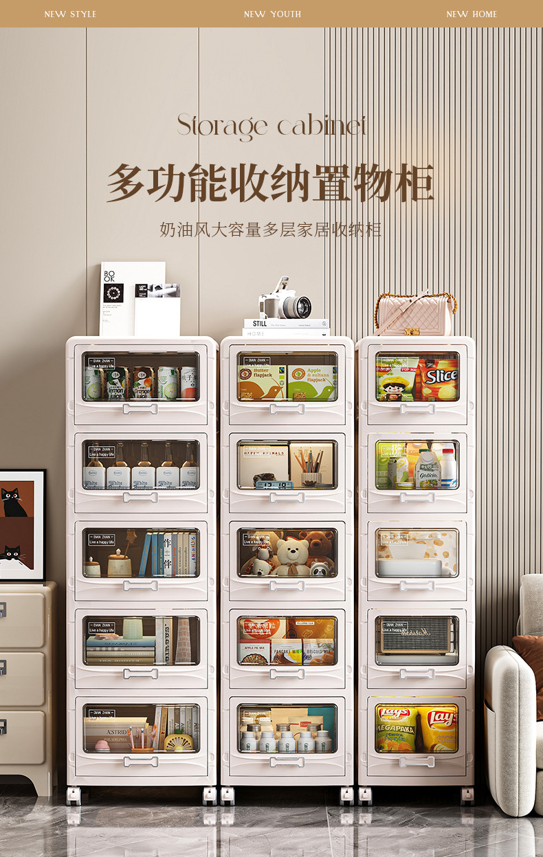 家用多层可折叠可移动收纳柜玩具衣服零食收纳箱折叠抽屉式收纳柜