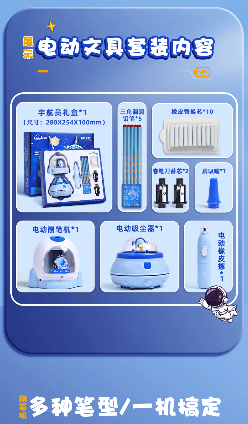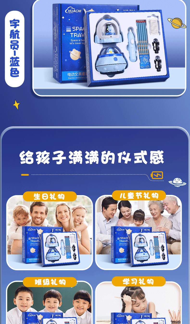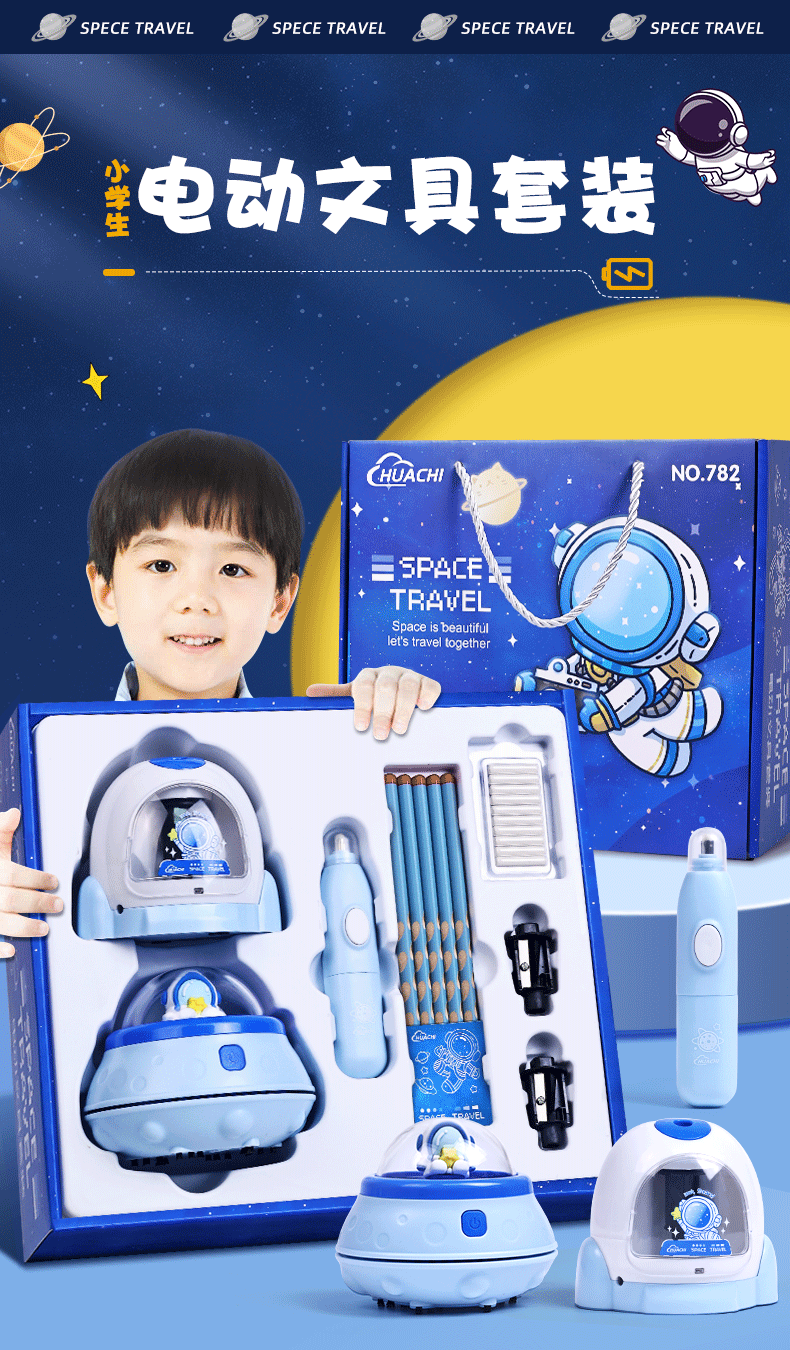 太空之旅电动文具套装小学生奖品小礼物22件礼盒儿童生日礼物批发