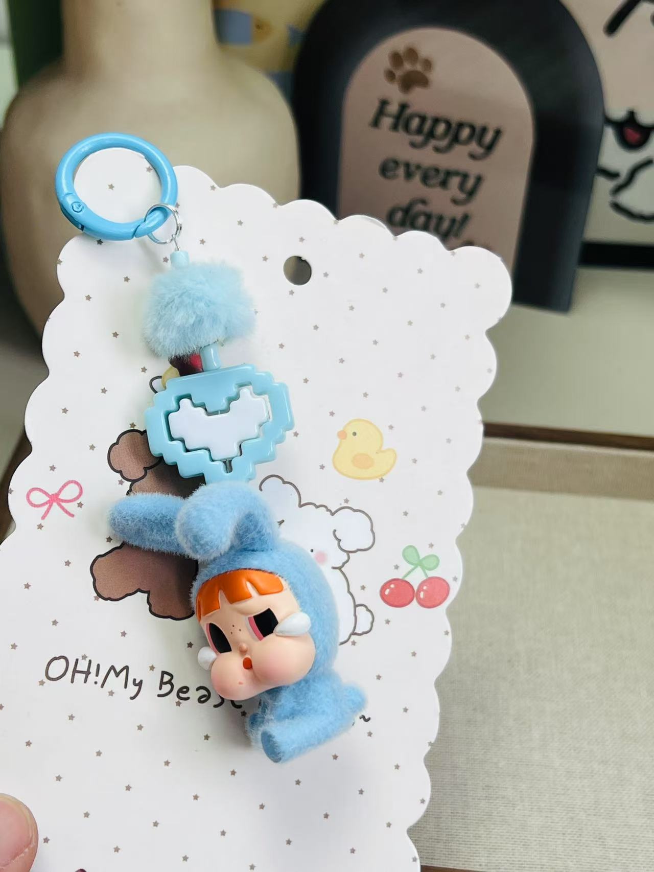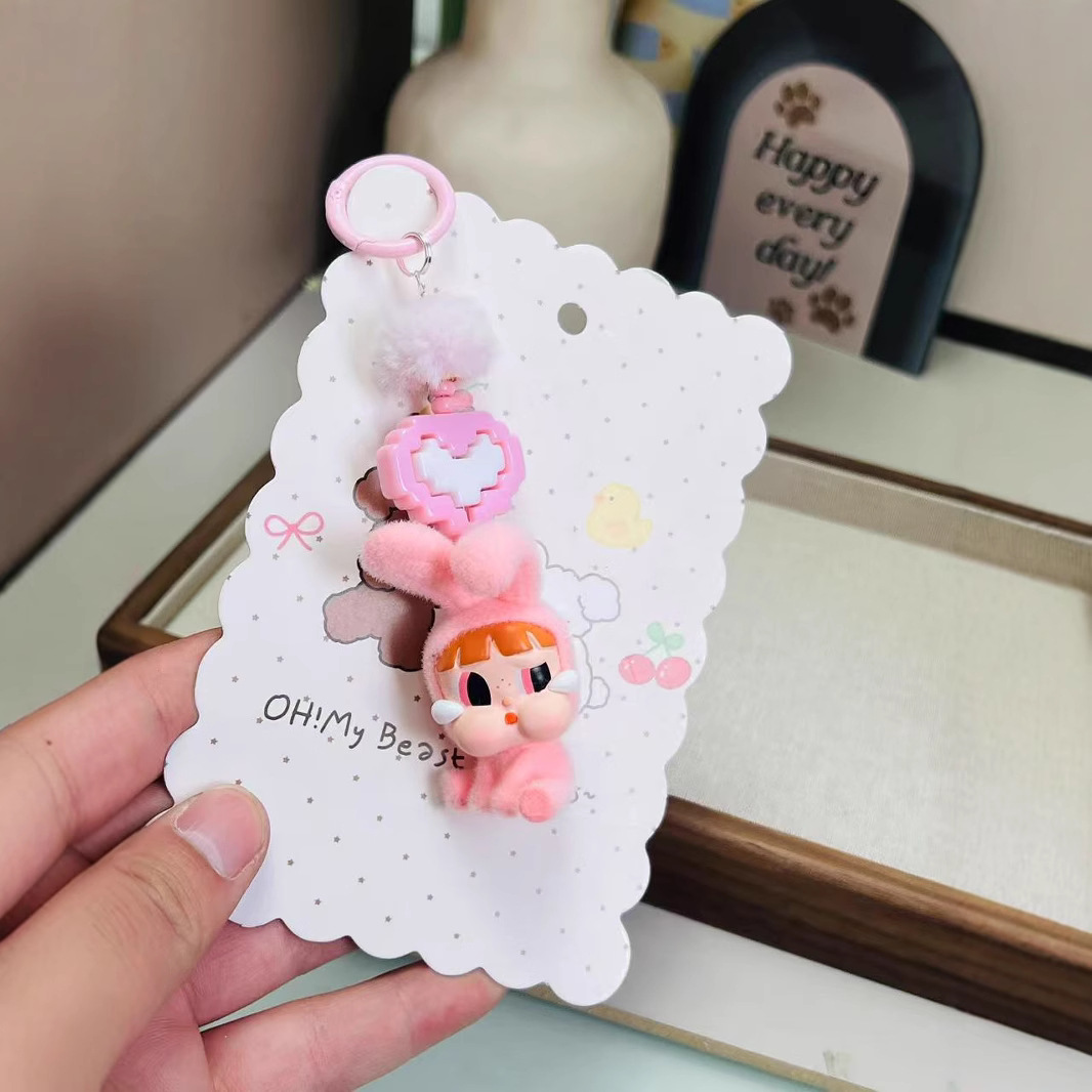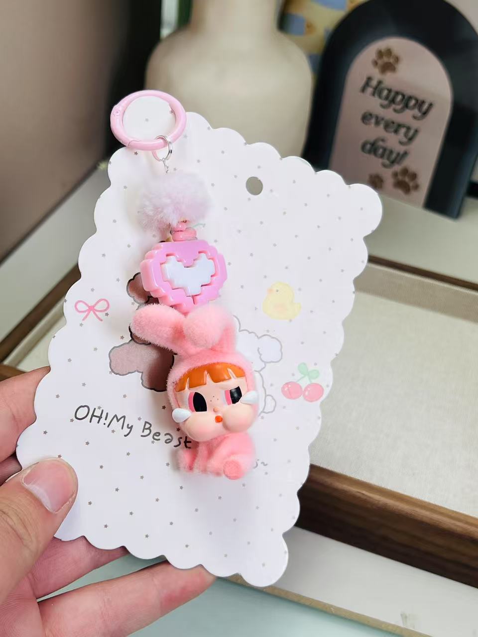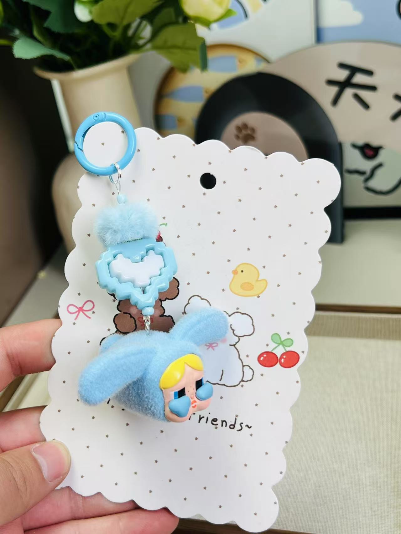 拉布布labubu公仔搪胶飞天小女警手机挂件钥匙扣无娃手作汽车挂饰