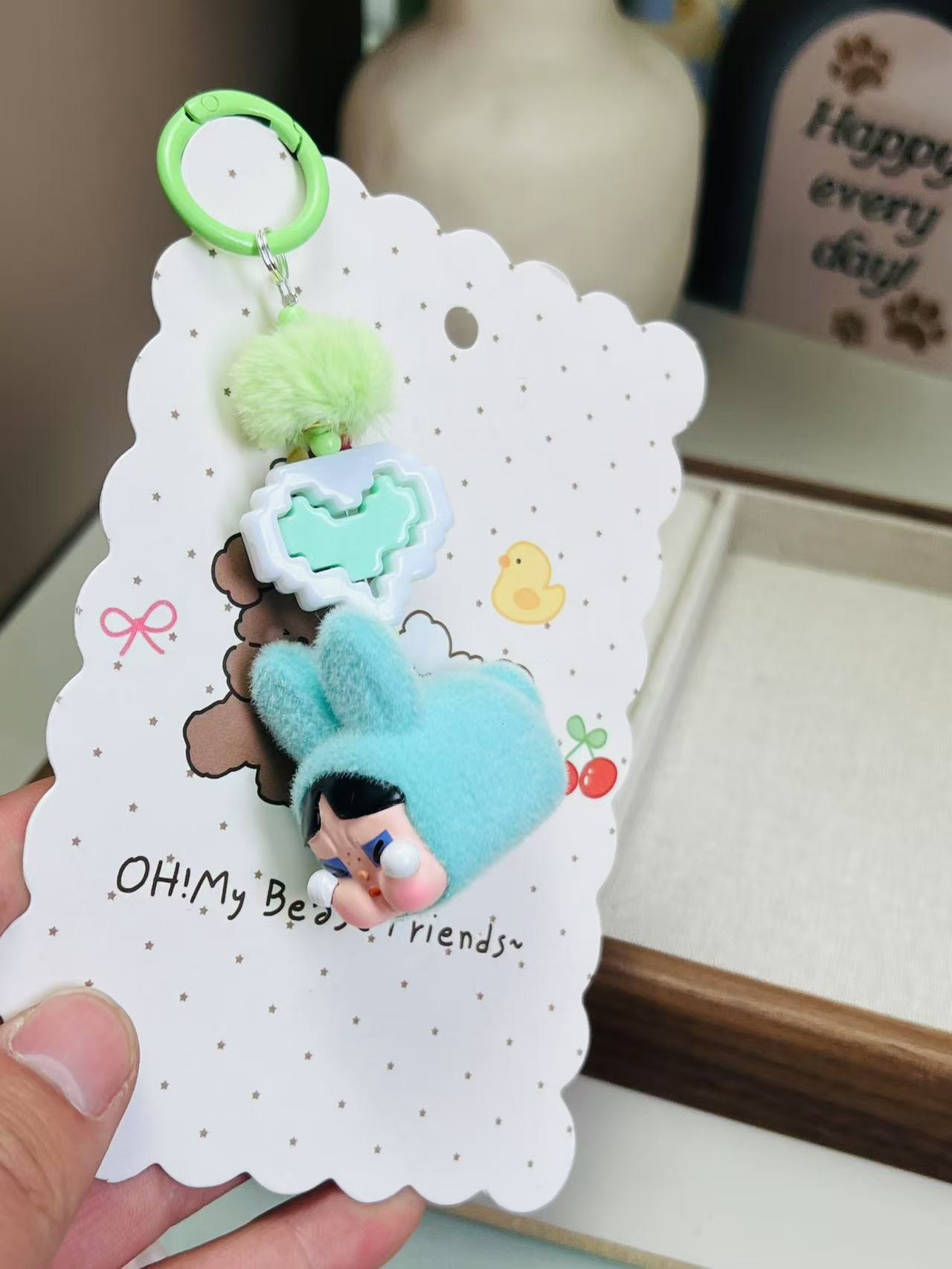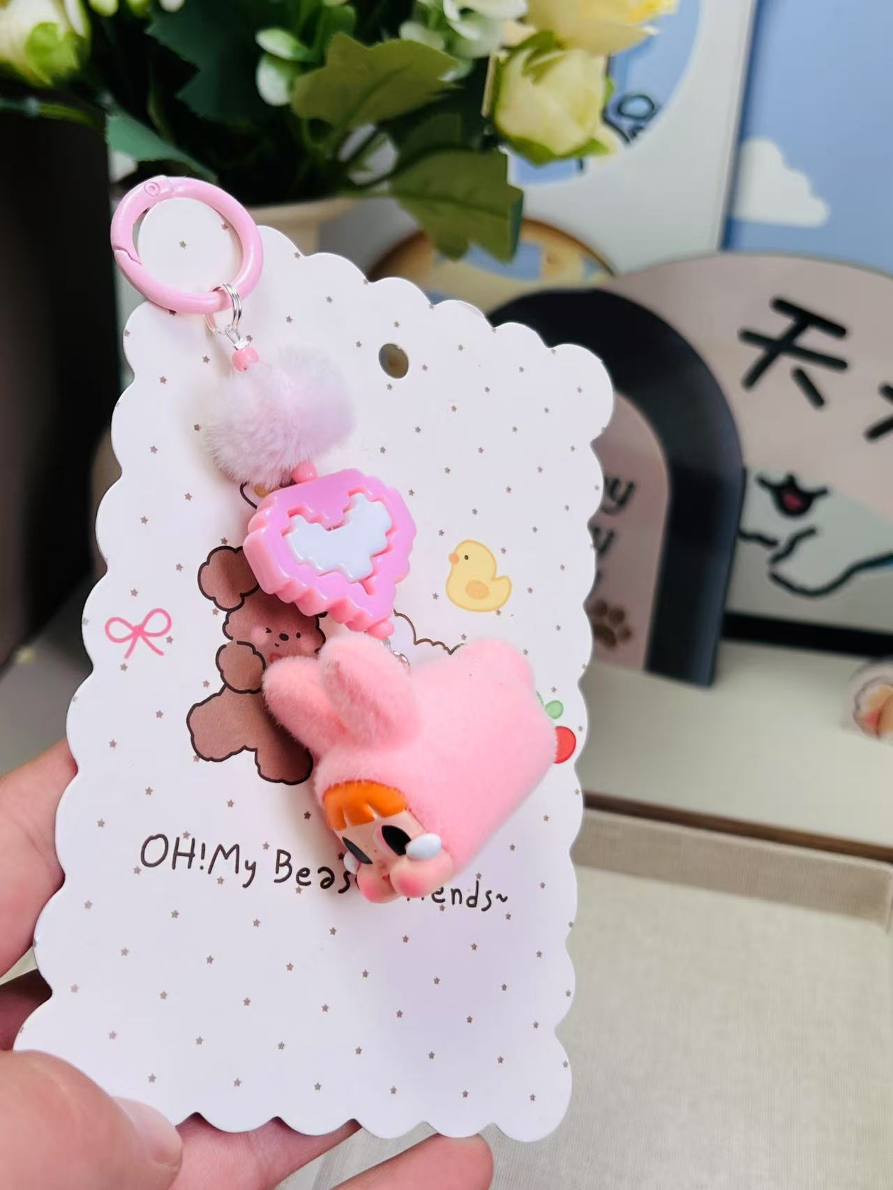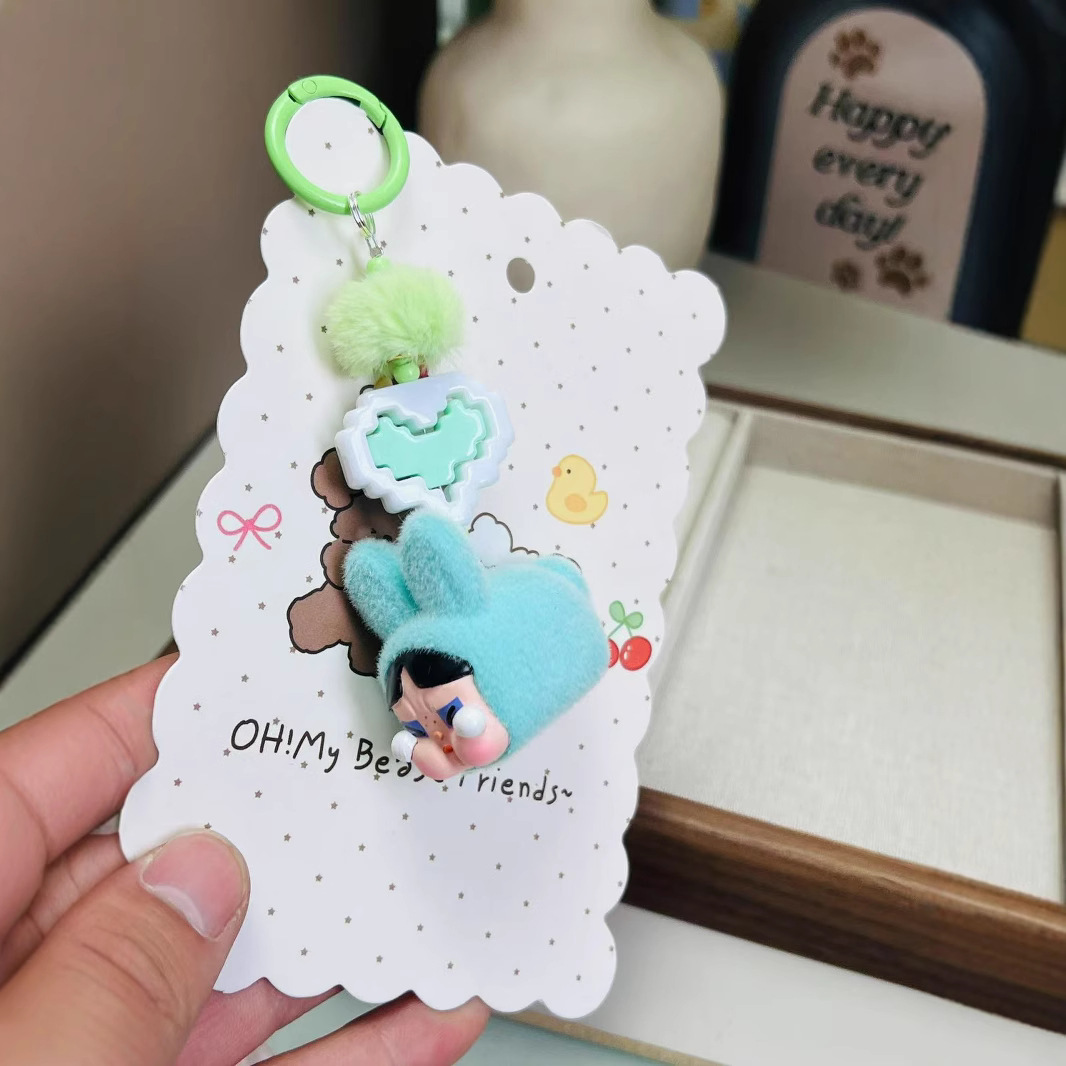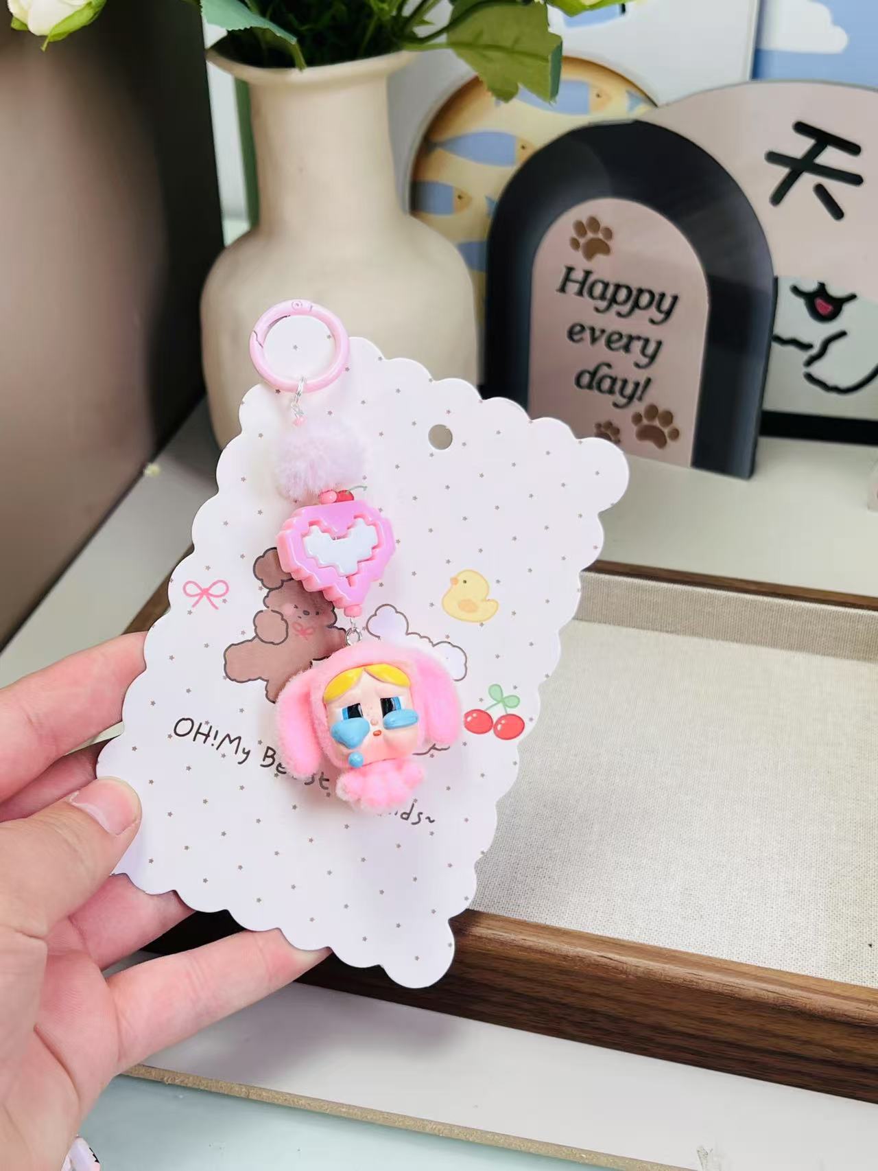 拉布布labubu公仔搪胶飞天小女警手机挂件钥匙扣无娃手作汽车挂饰
