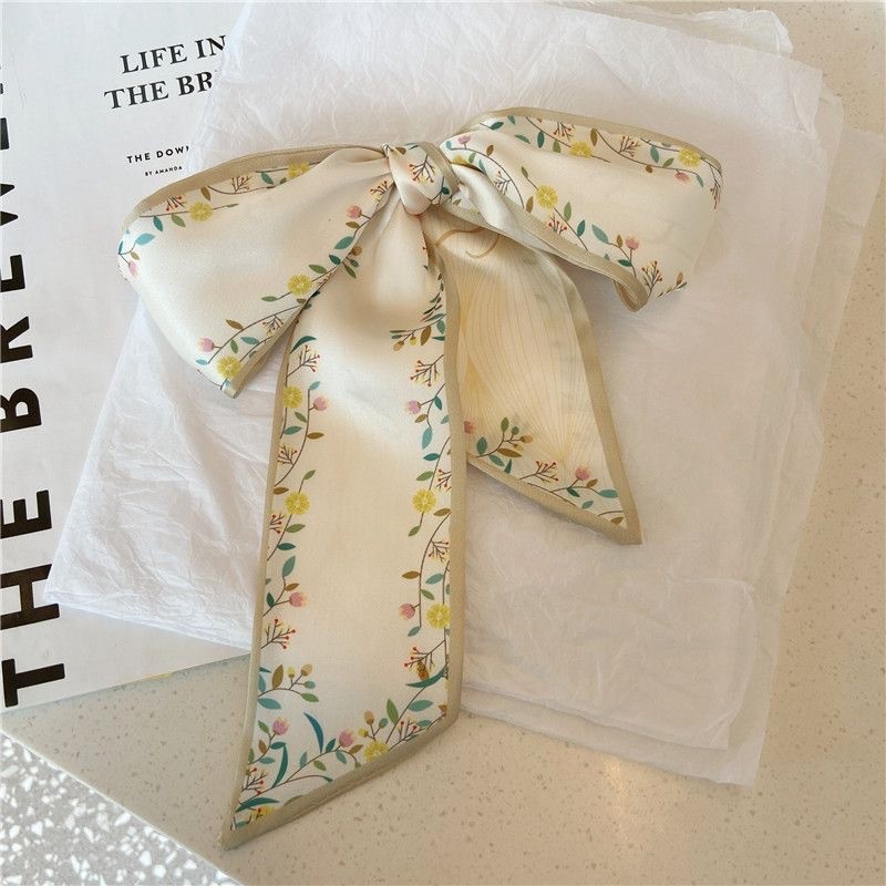 蓝色花朵小丝巾女长条法式复古绑发带装饰丝带百搭春秋多功能包包