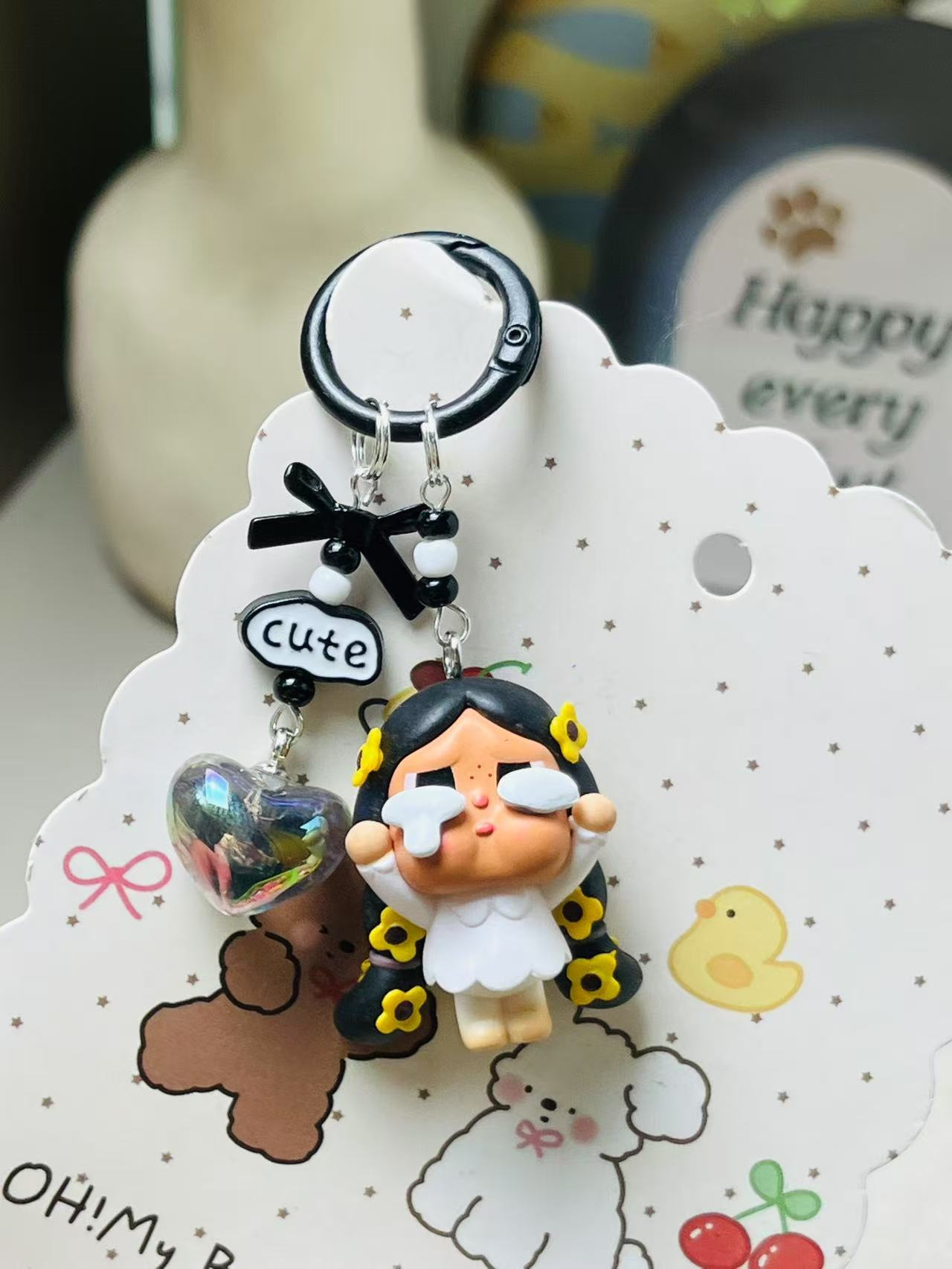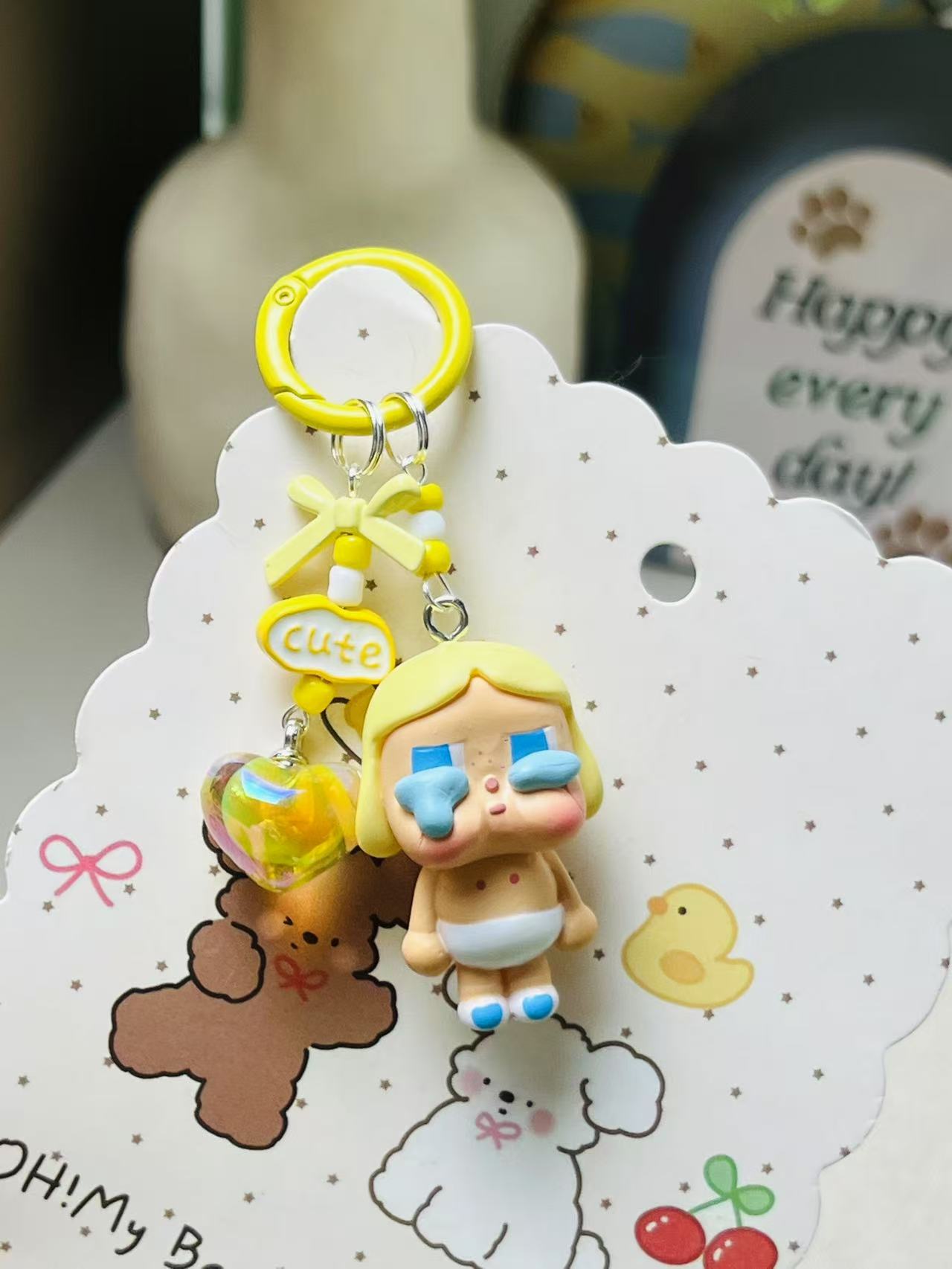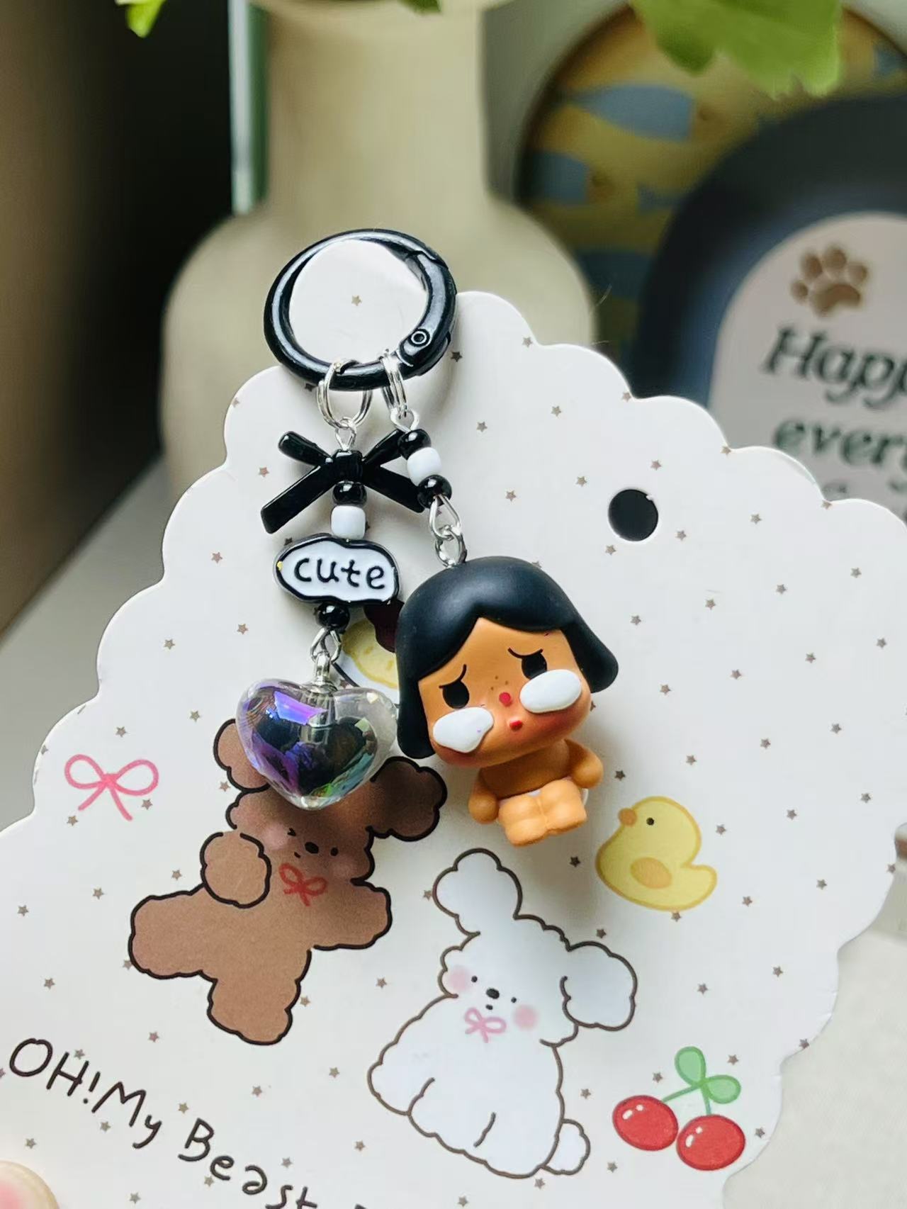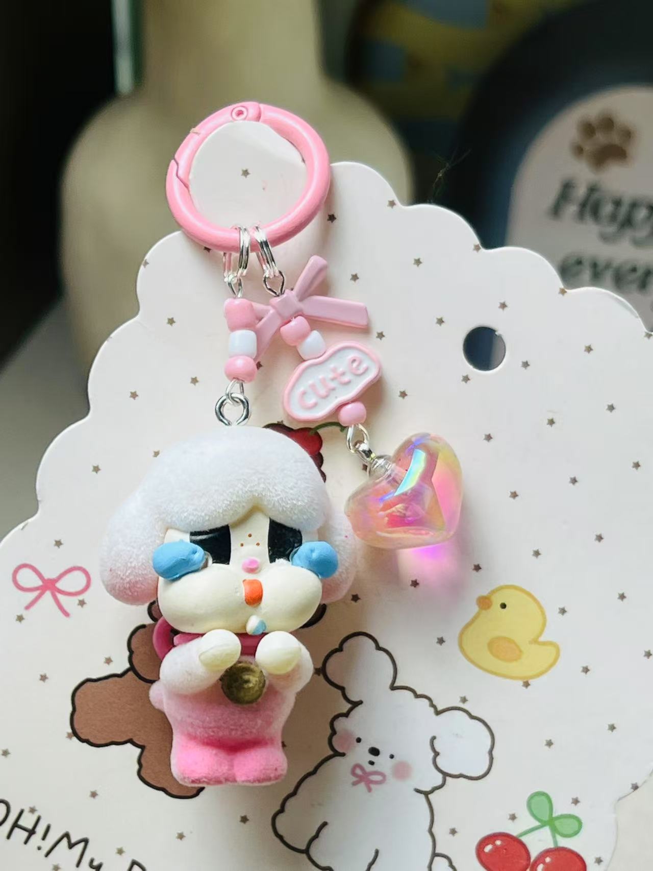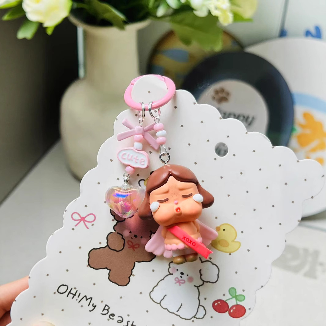 钥匙扣挂件可爱毛绒crybaby哭娃公仔汽车钥匙链手机链包包挂饰女