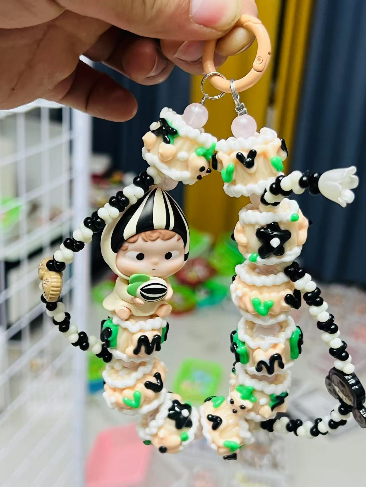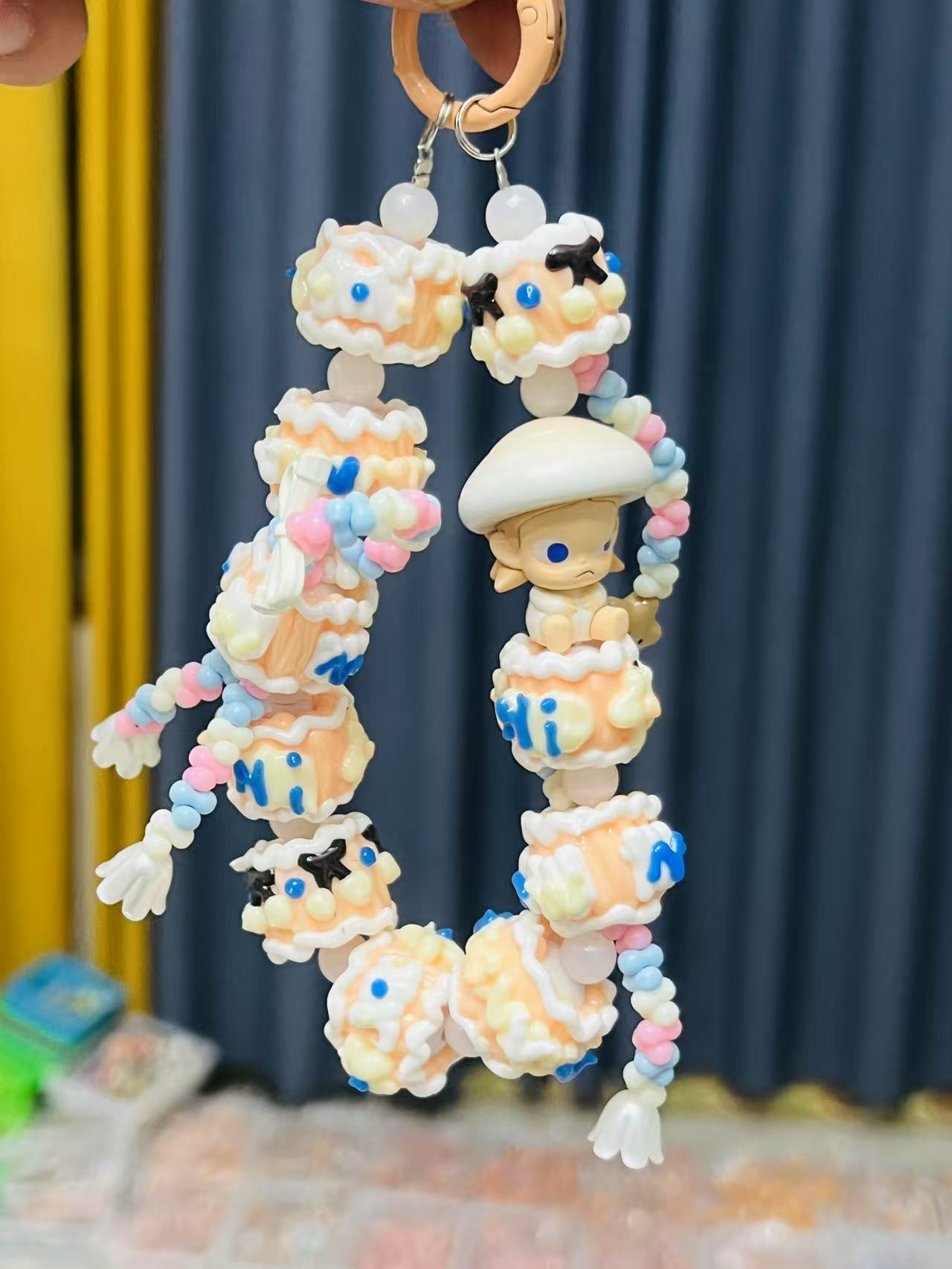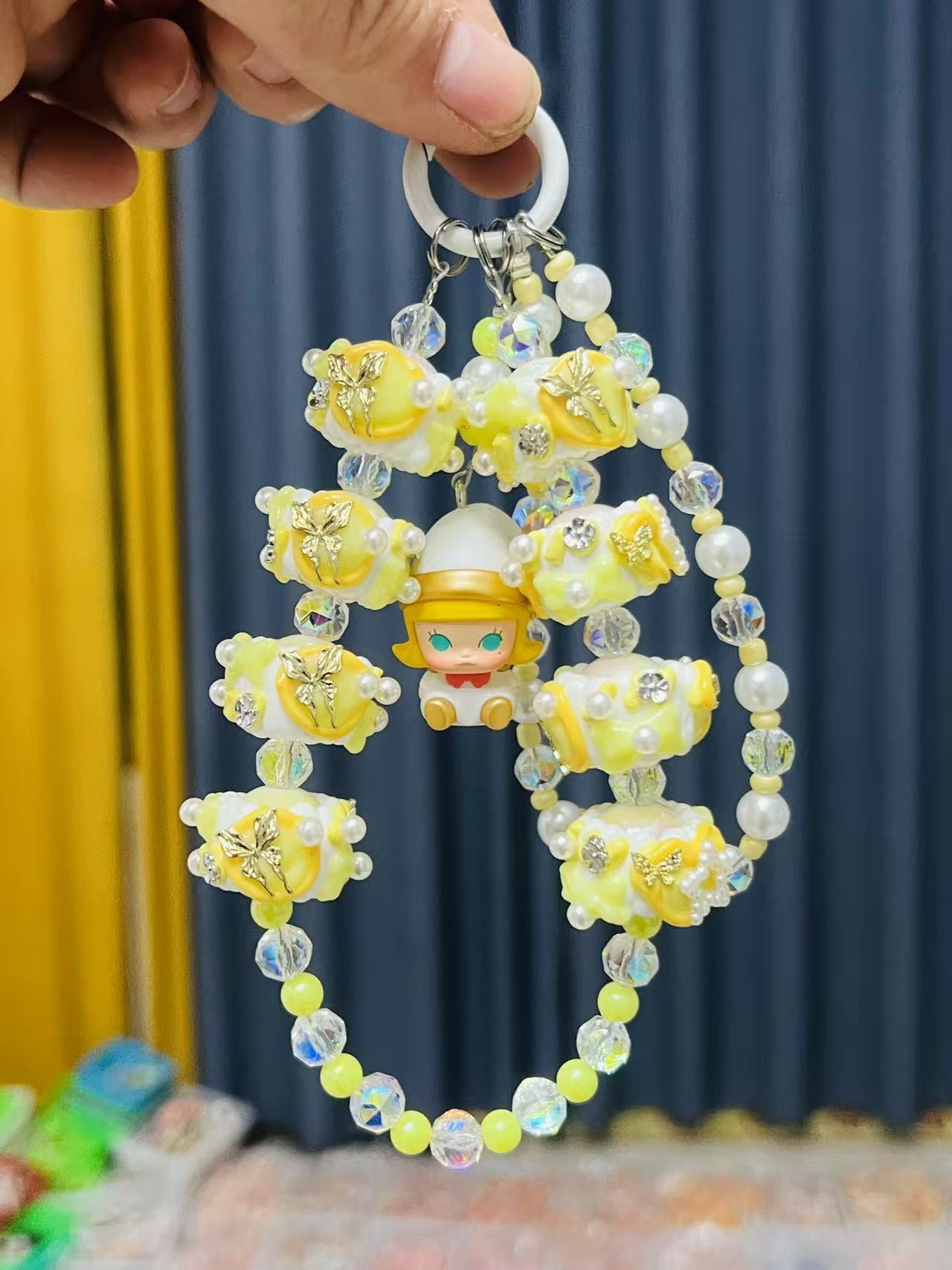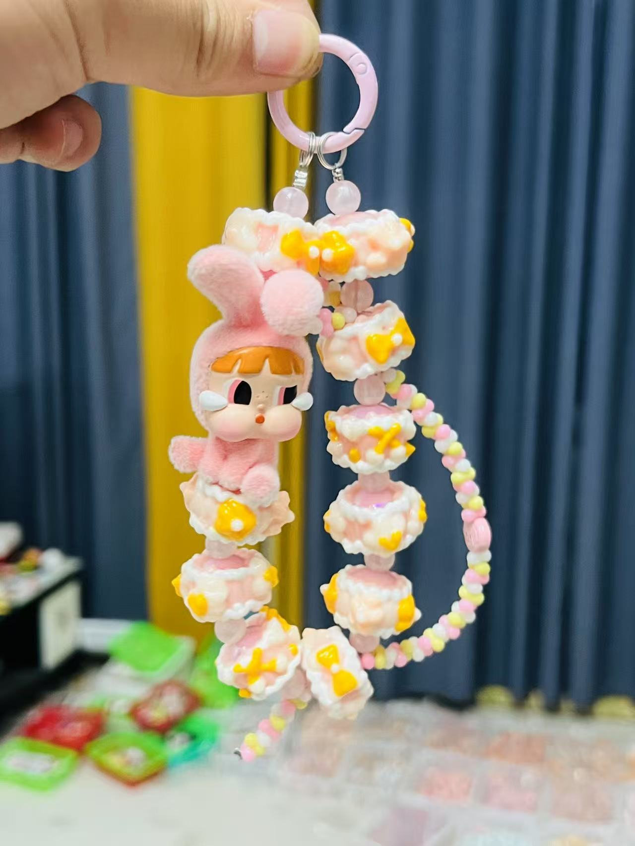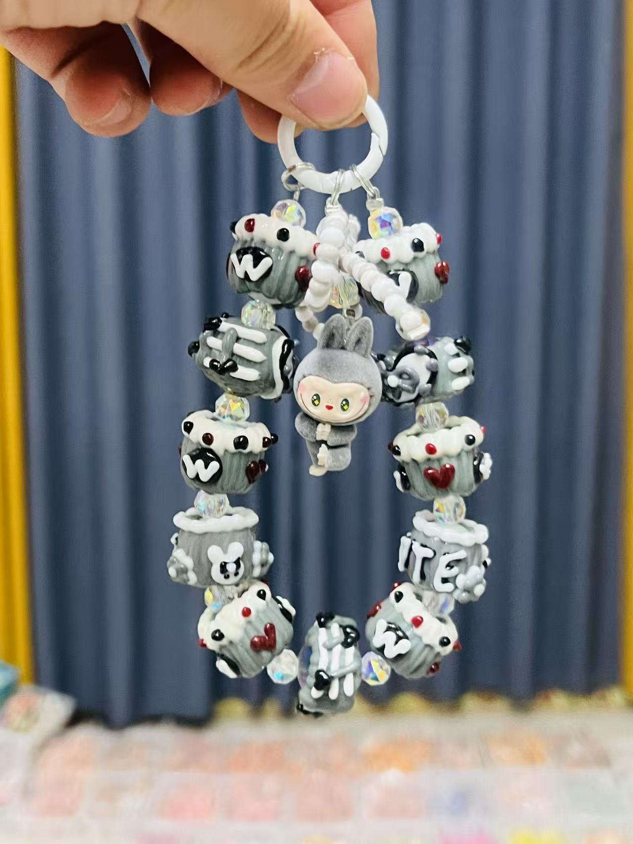 泡泡玛特萌粒 手绘珠重工双层手机链包包手机挂饰 直播间爆款diy