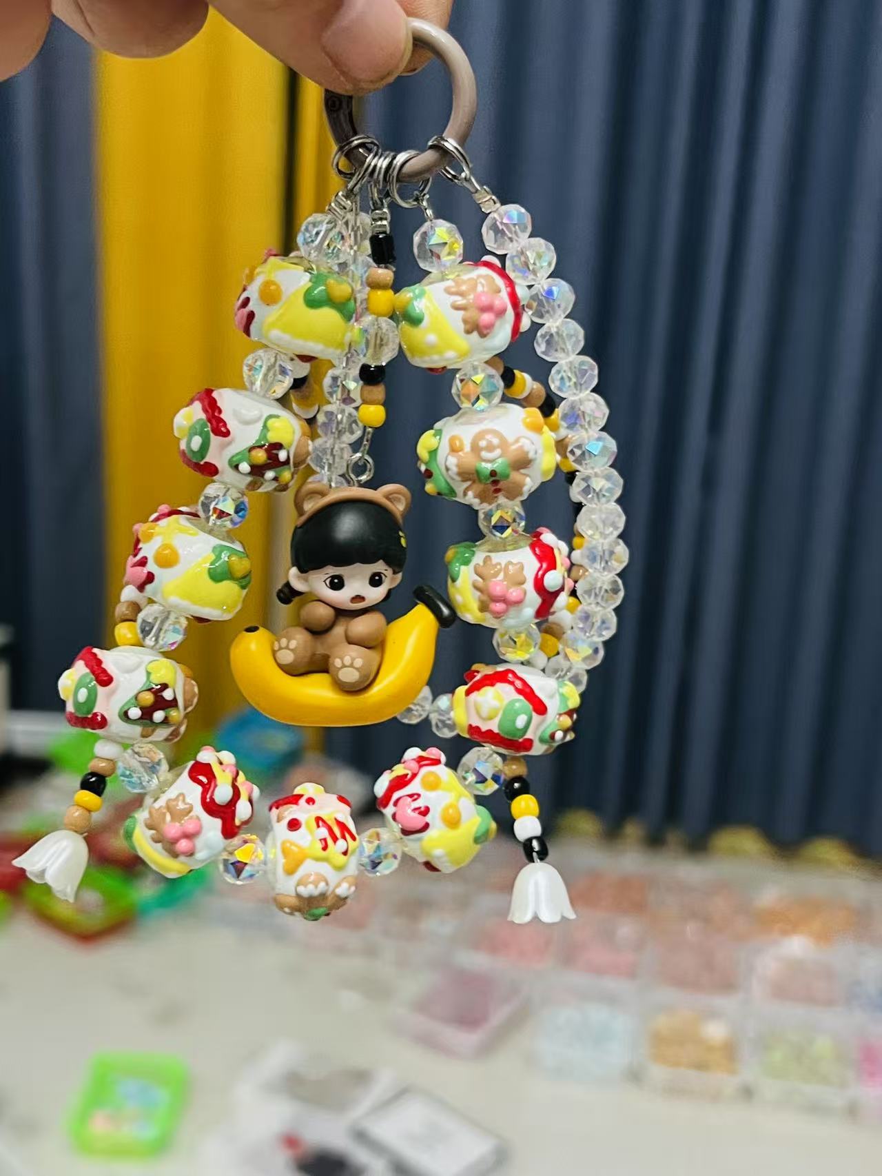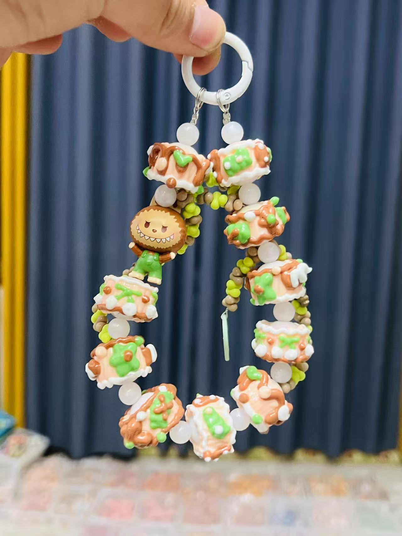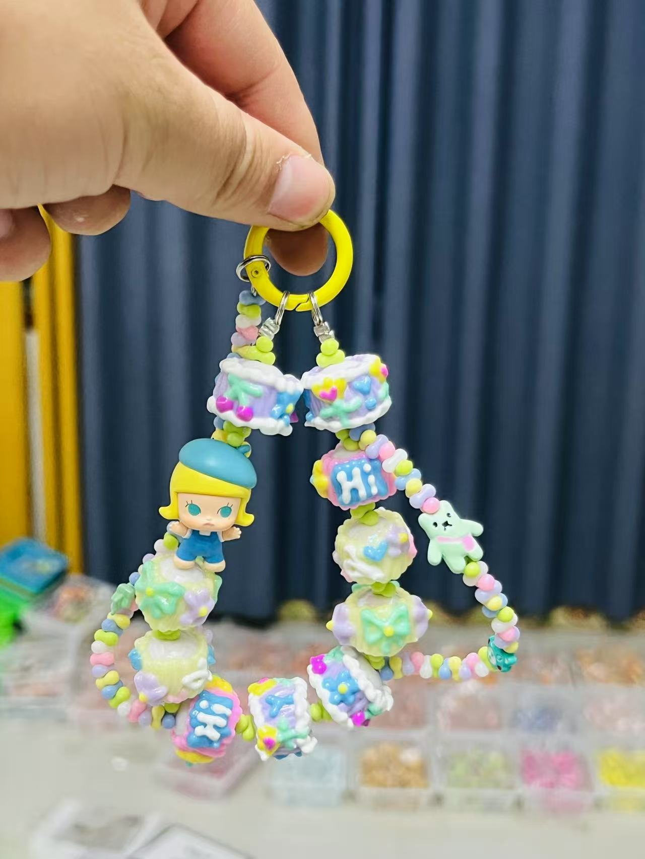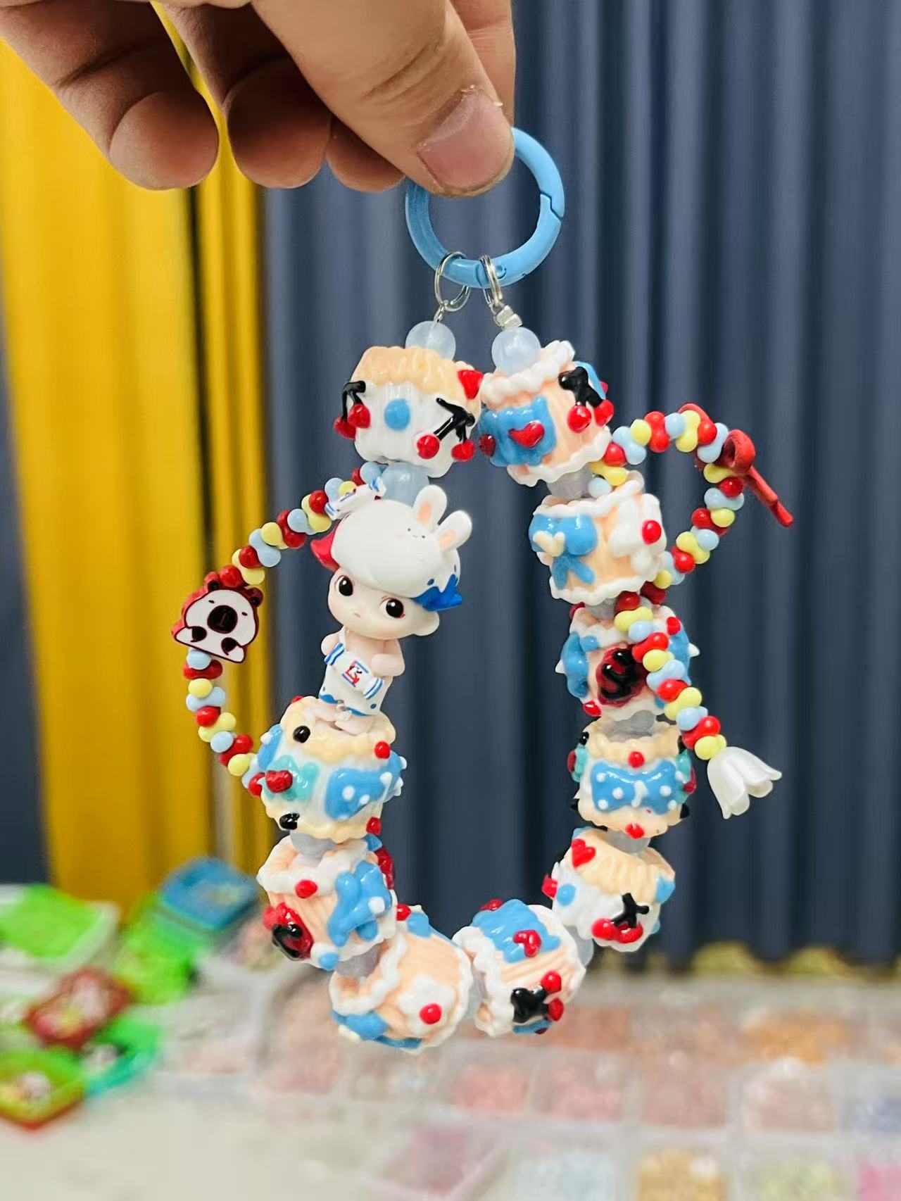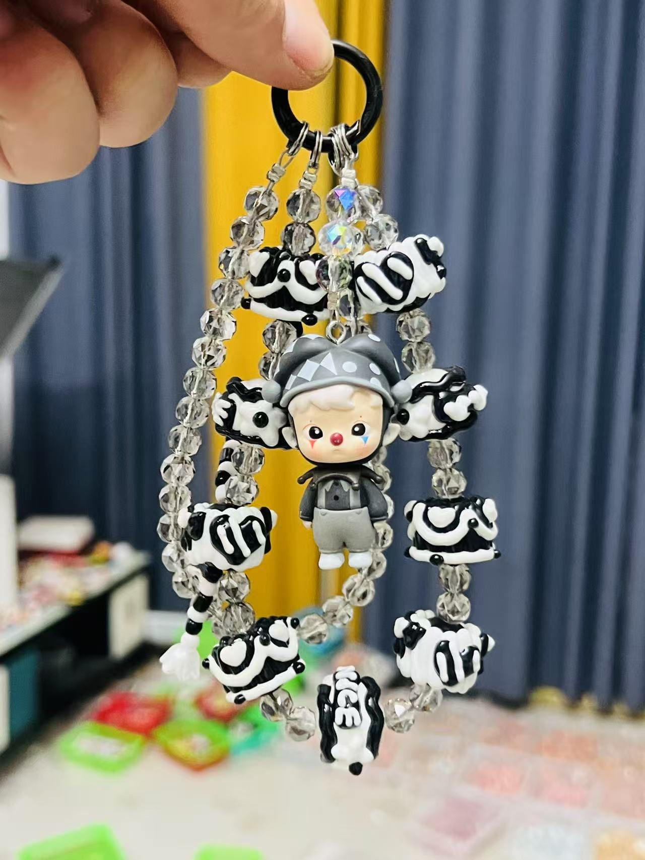 泡泡玛特萌粒 手绘珠重工双层手机链包包手机挂饰 直播间爆款diy