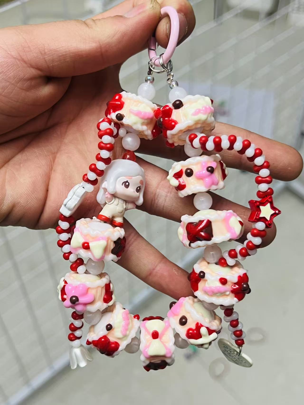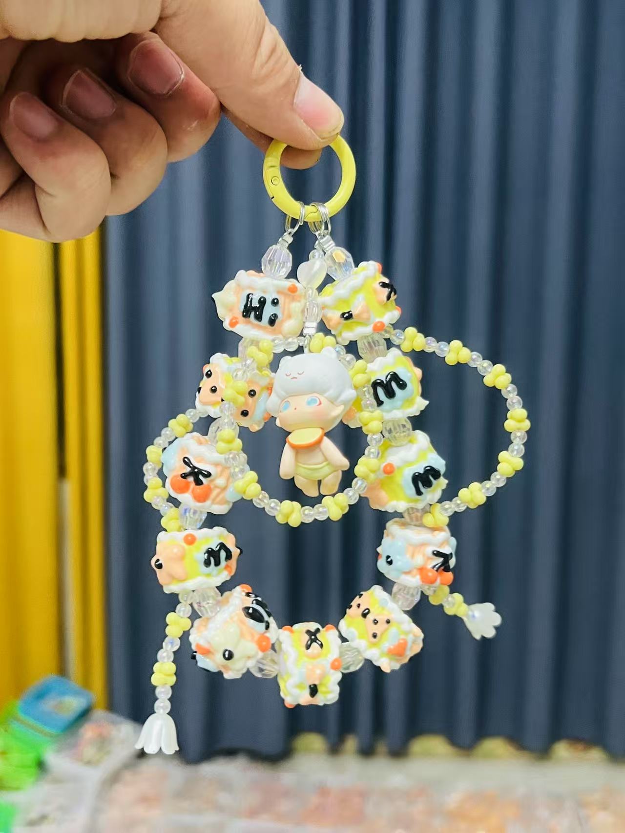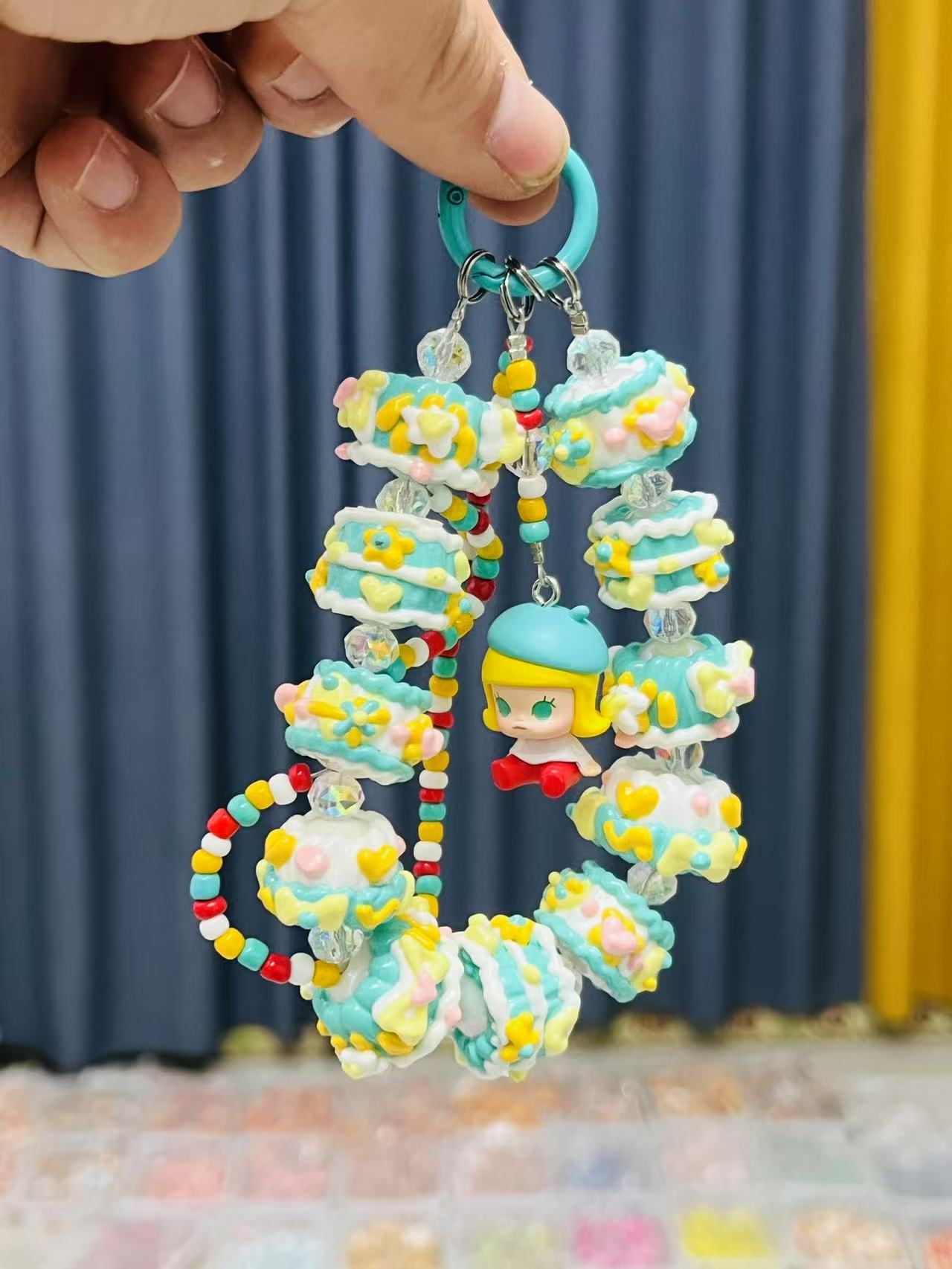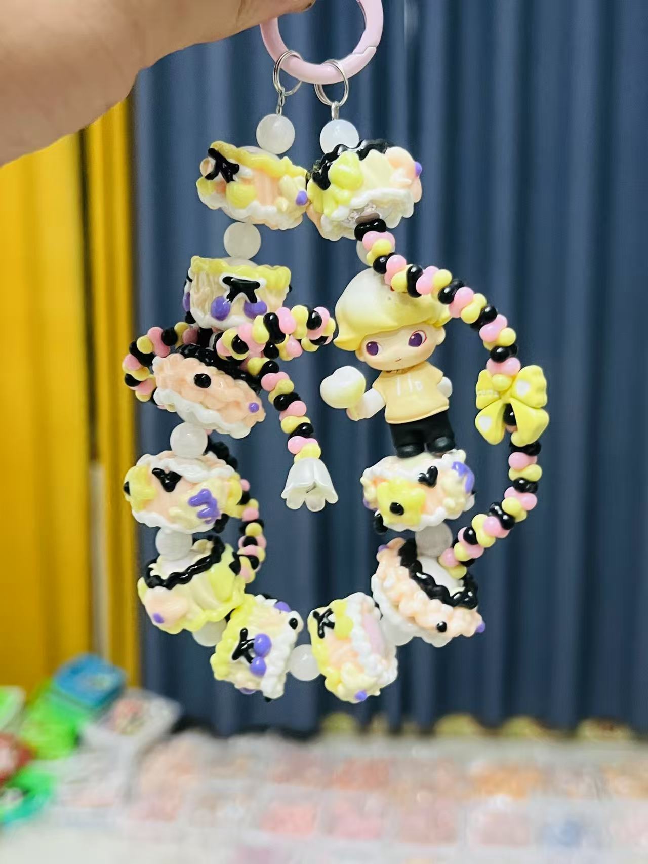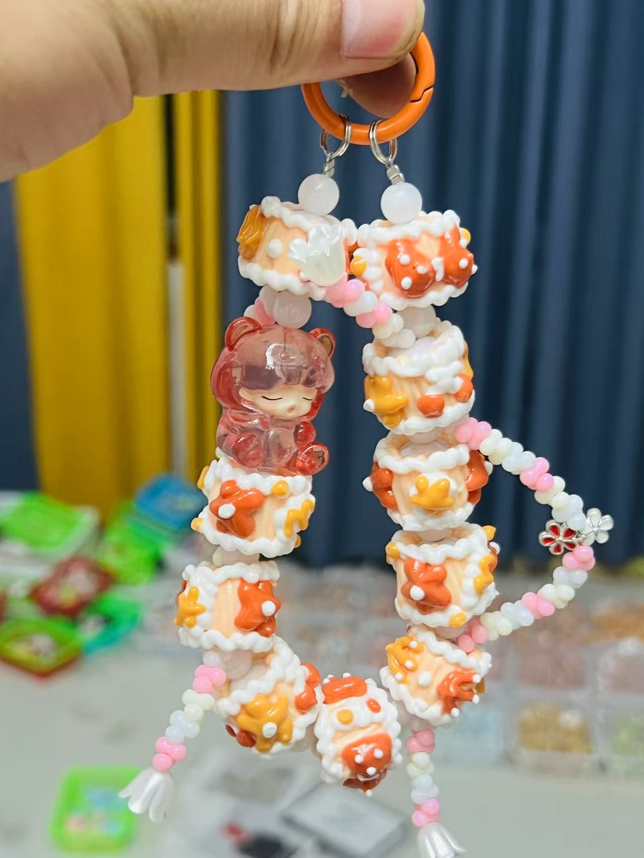 泡泡玛特萌粒 手绘珠重工双层手机链包包手机挂饰 直播间爆款diy