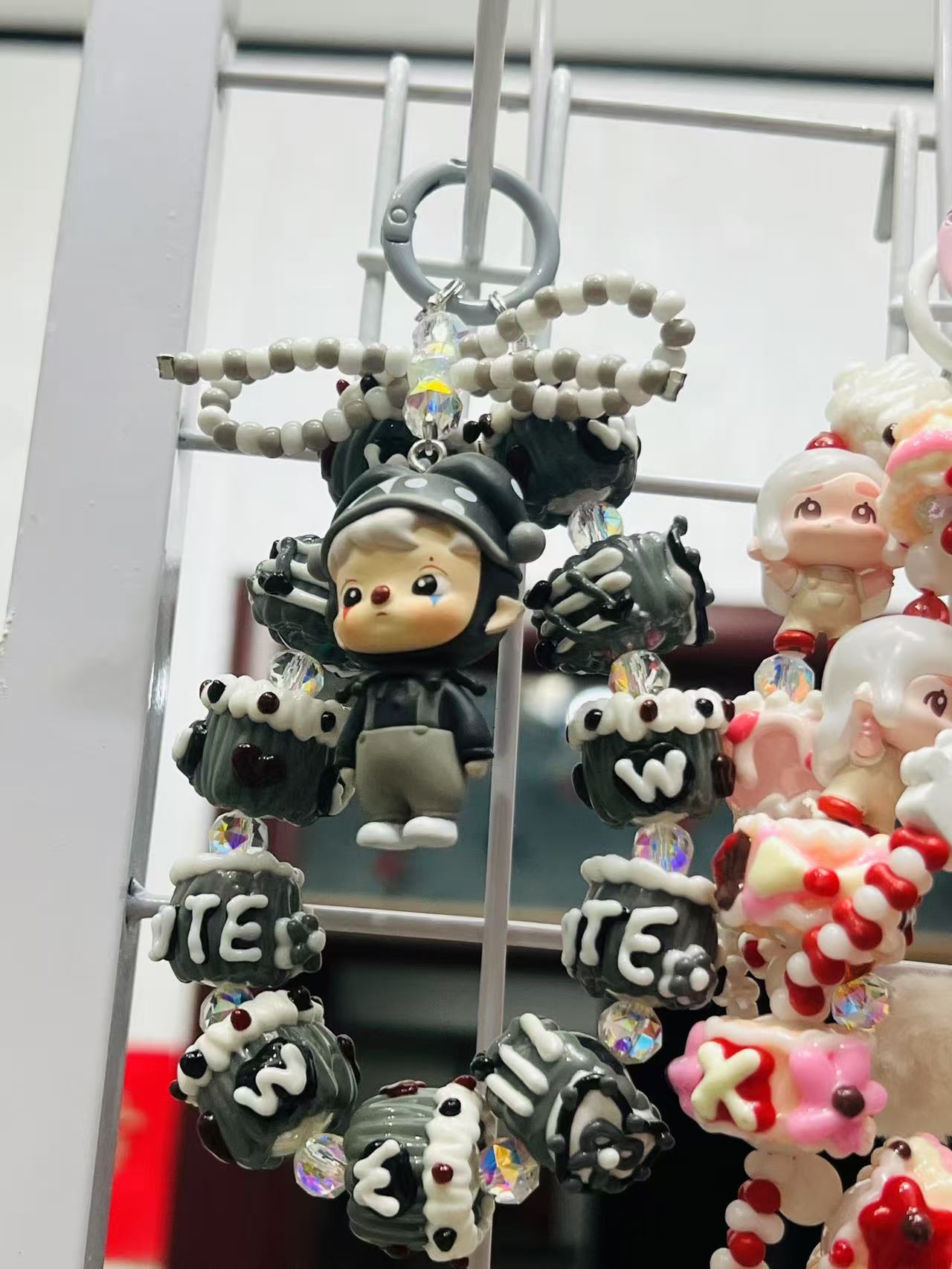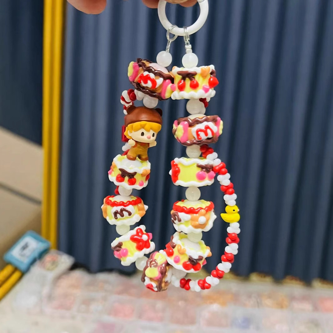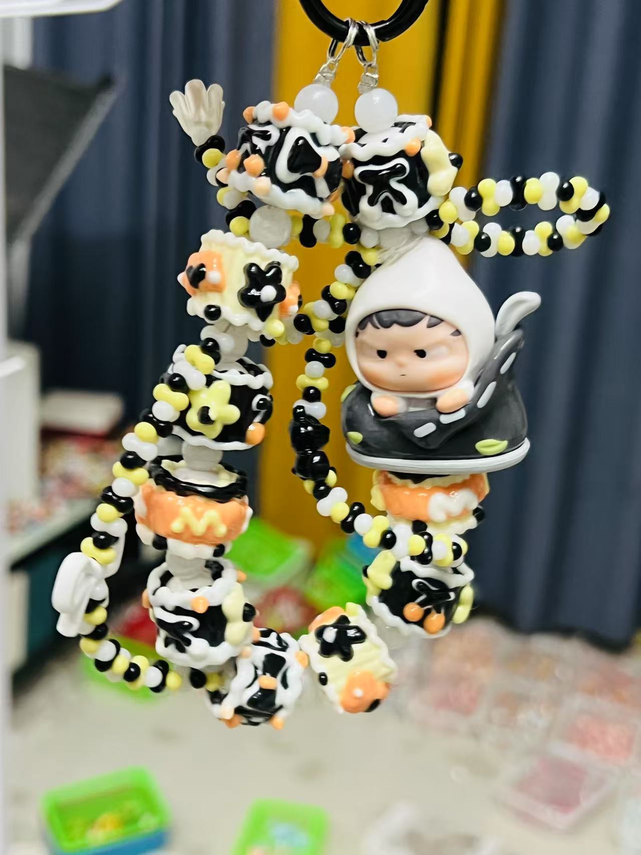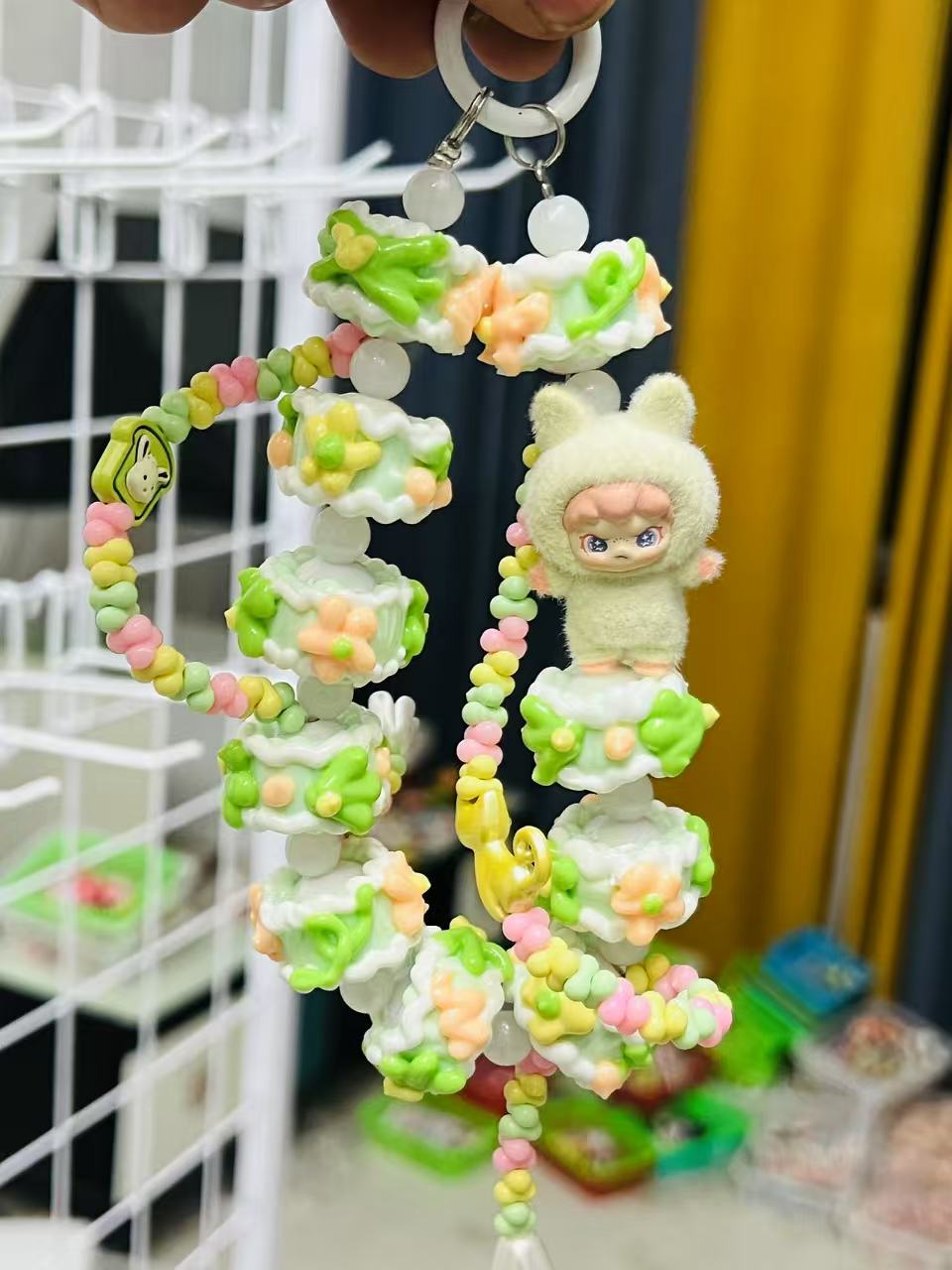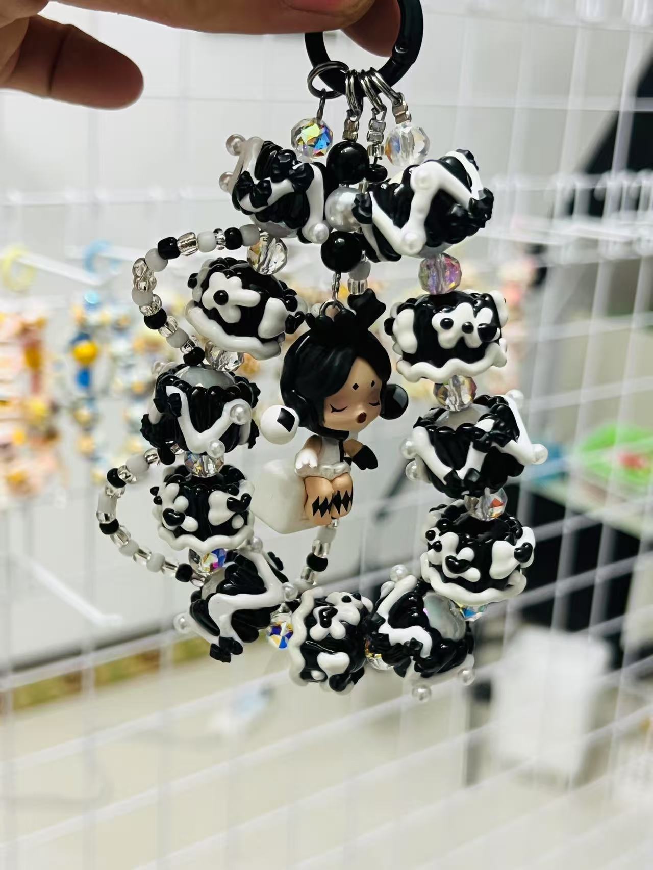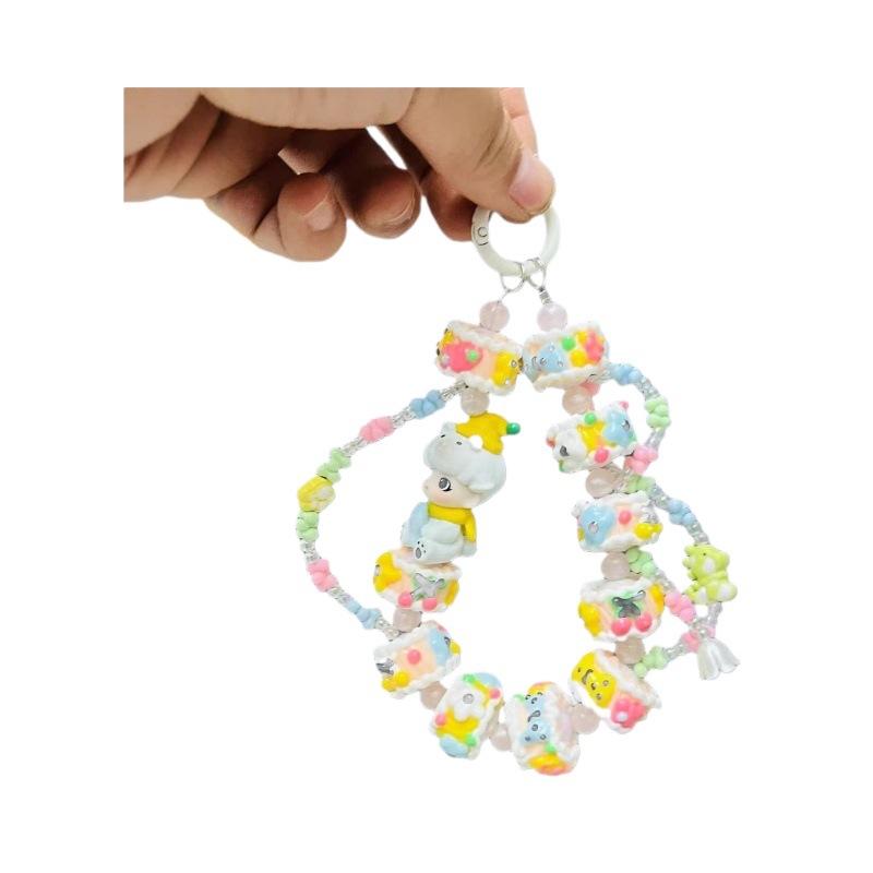 泡泡玛特萌粒 手绘珠重工双层手机链包包手机挂饰 直播间爆款diy
