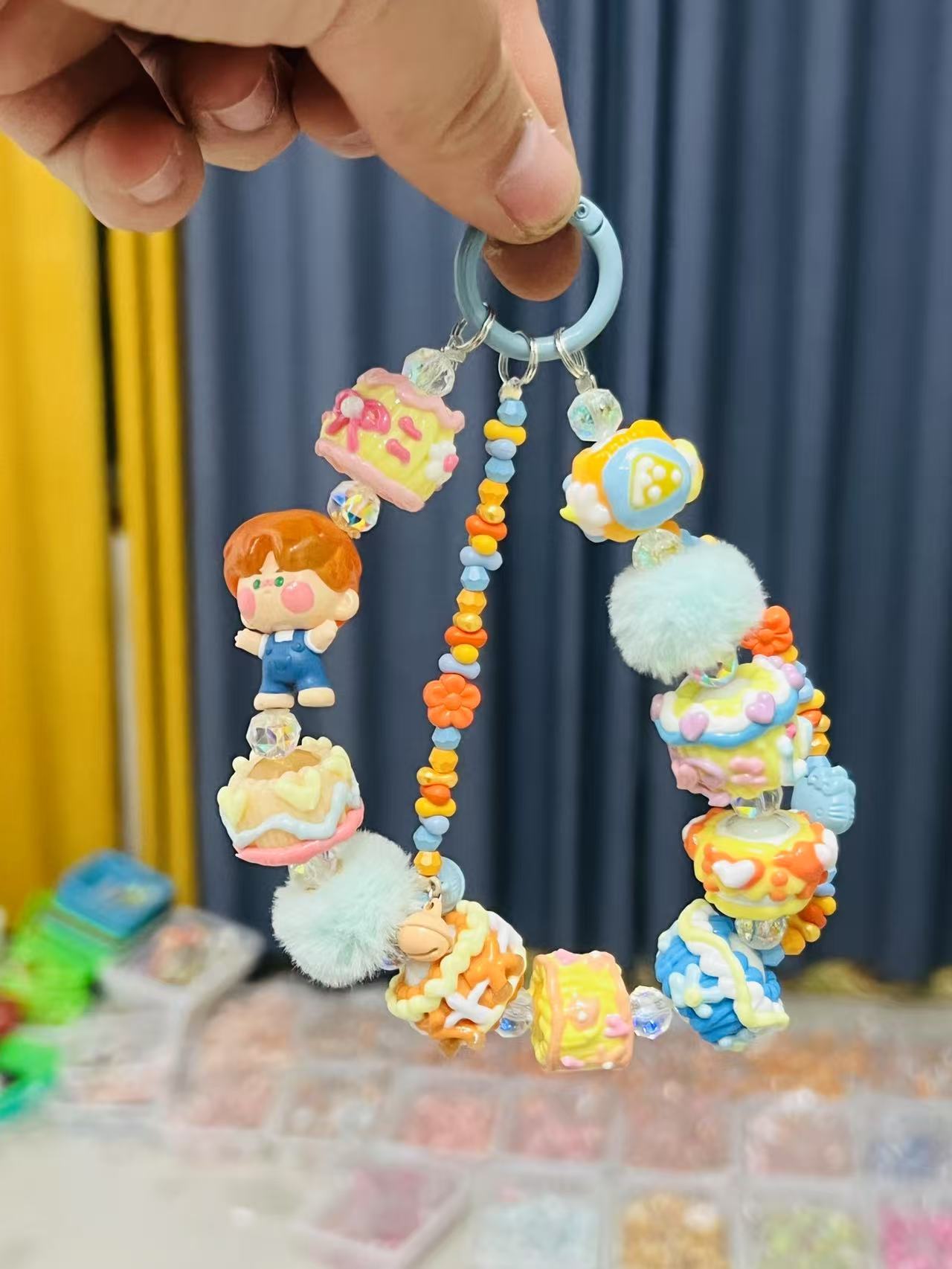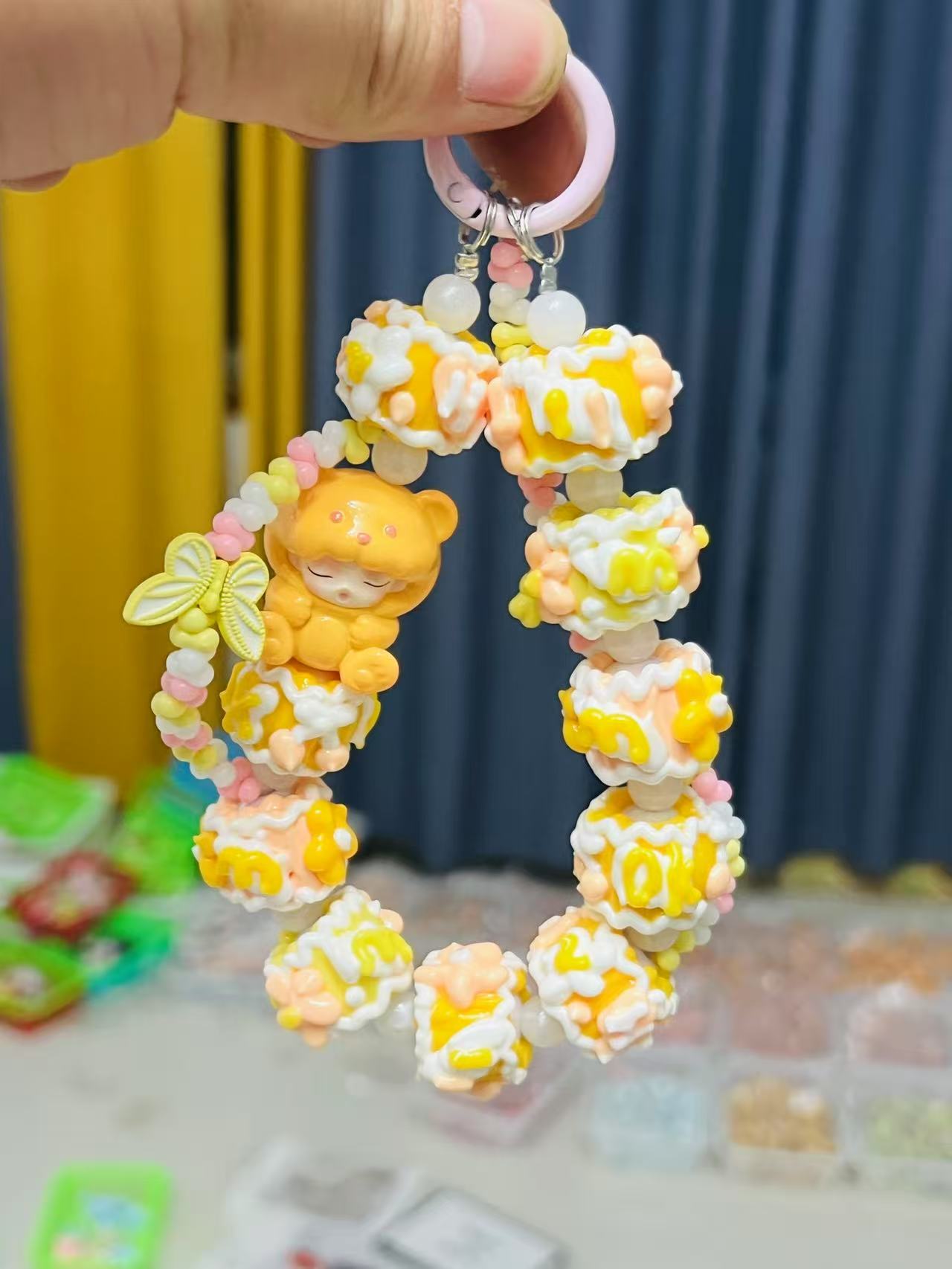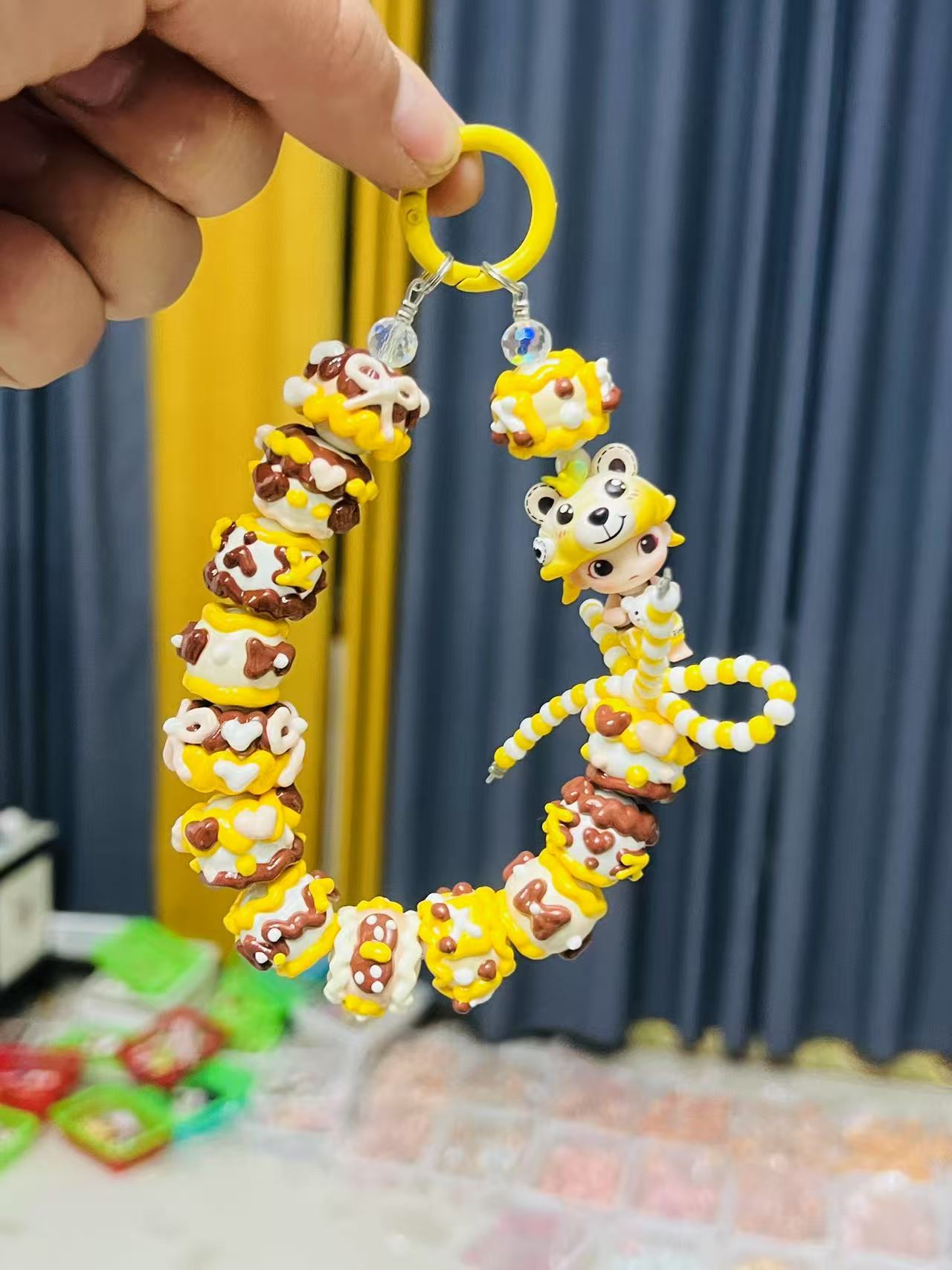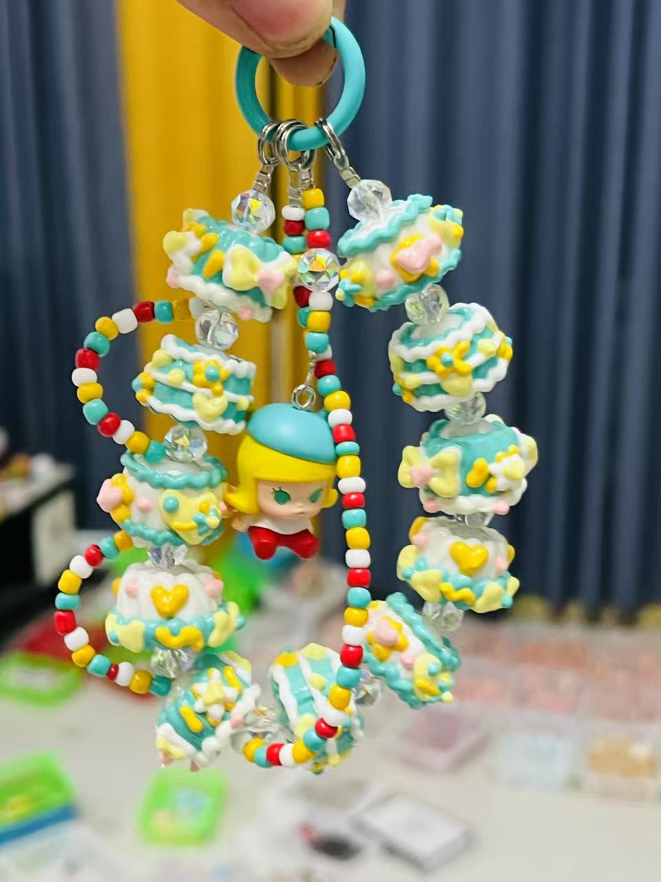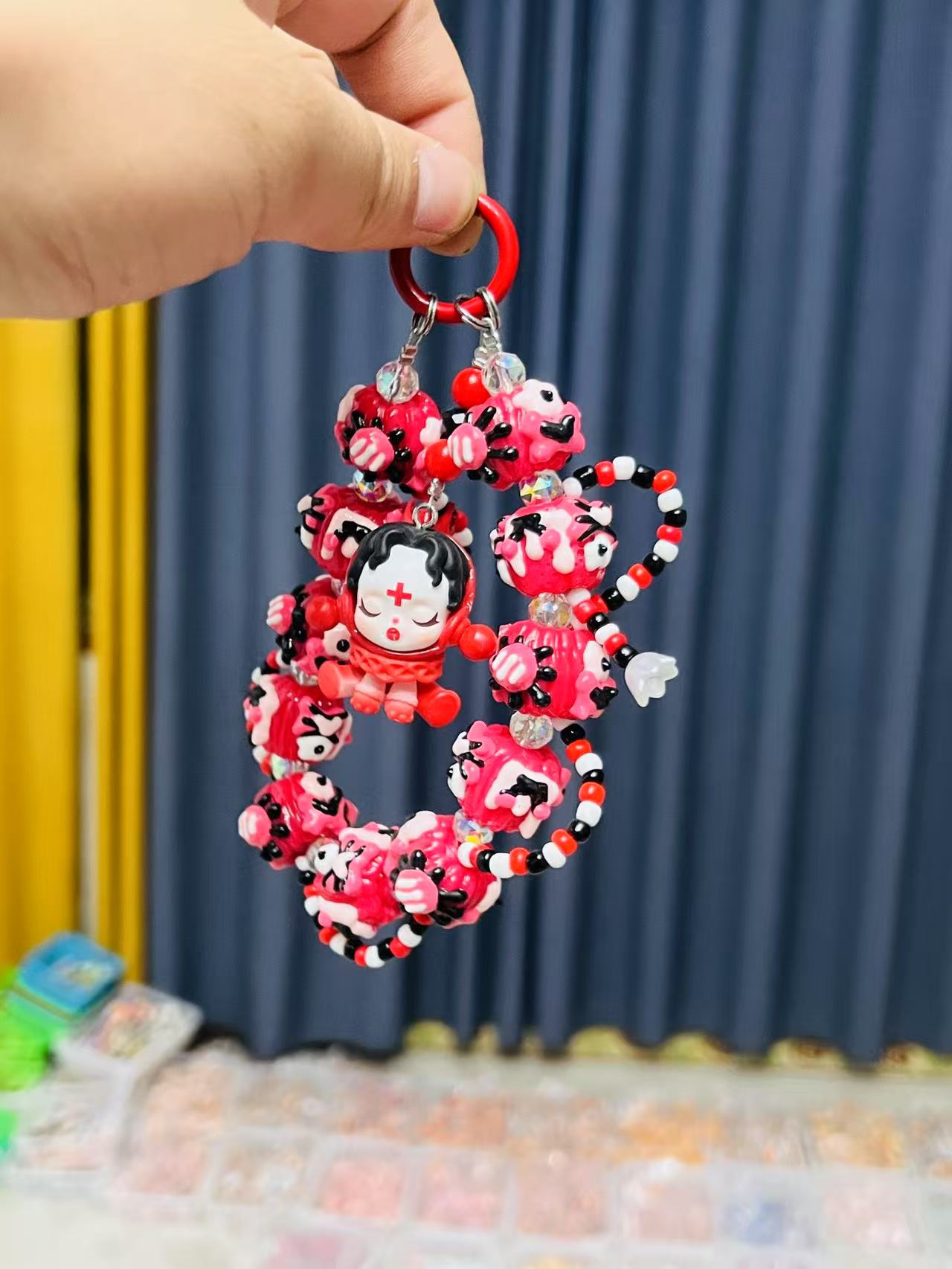 泡泡玛特萌粒 手绘珠重工双层手机链包包手机挂饰 直播间爆款diy