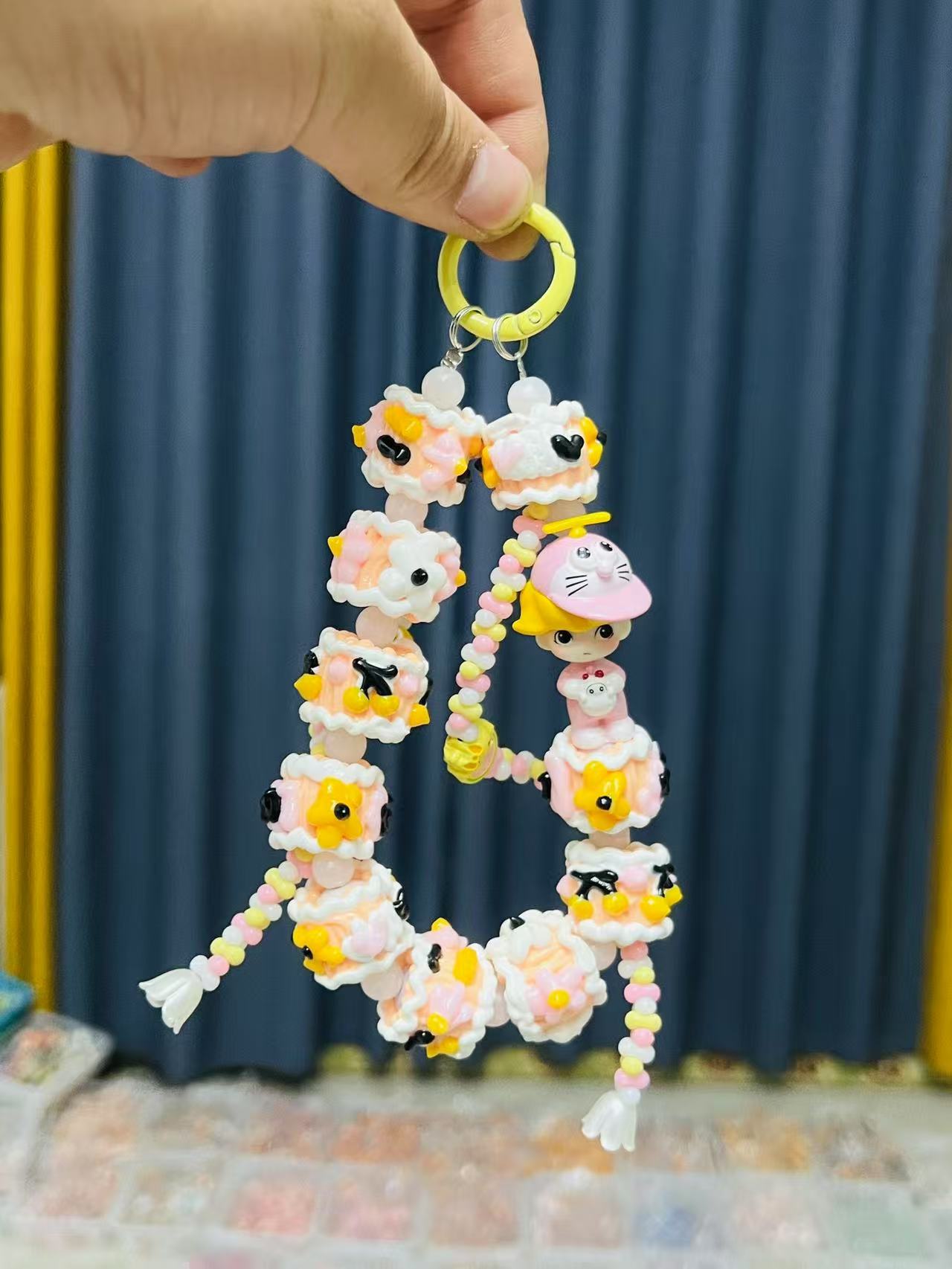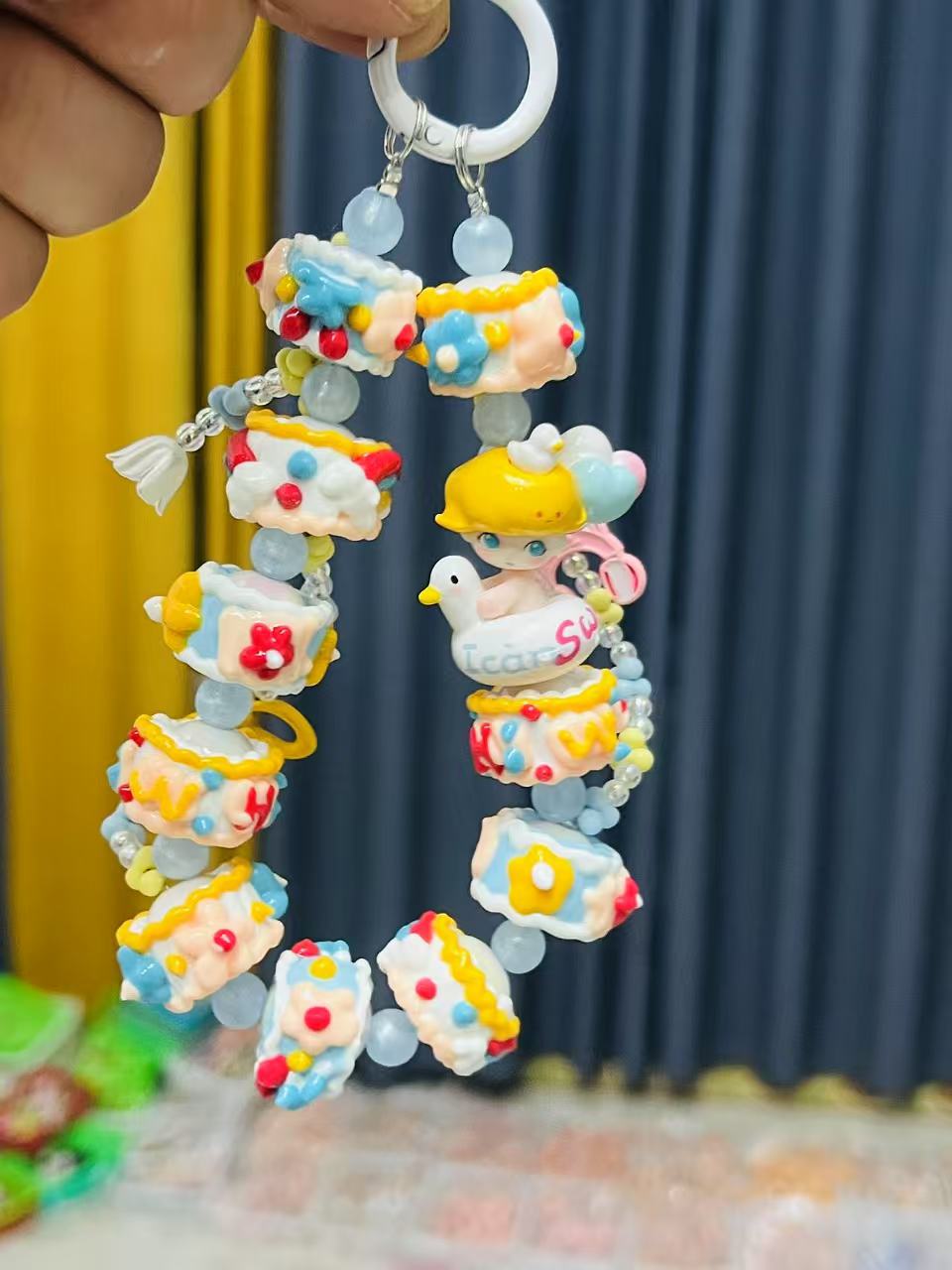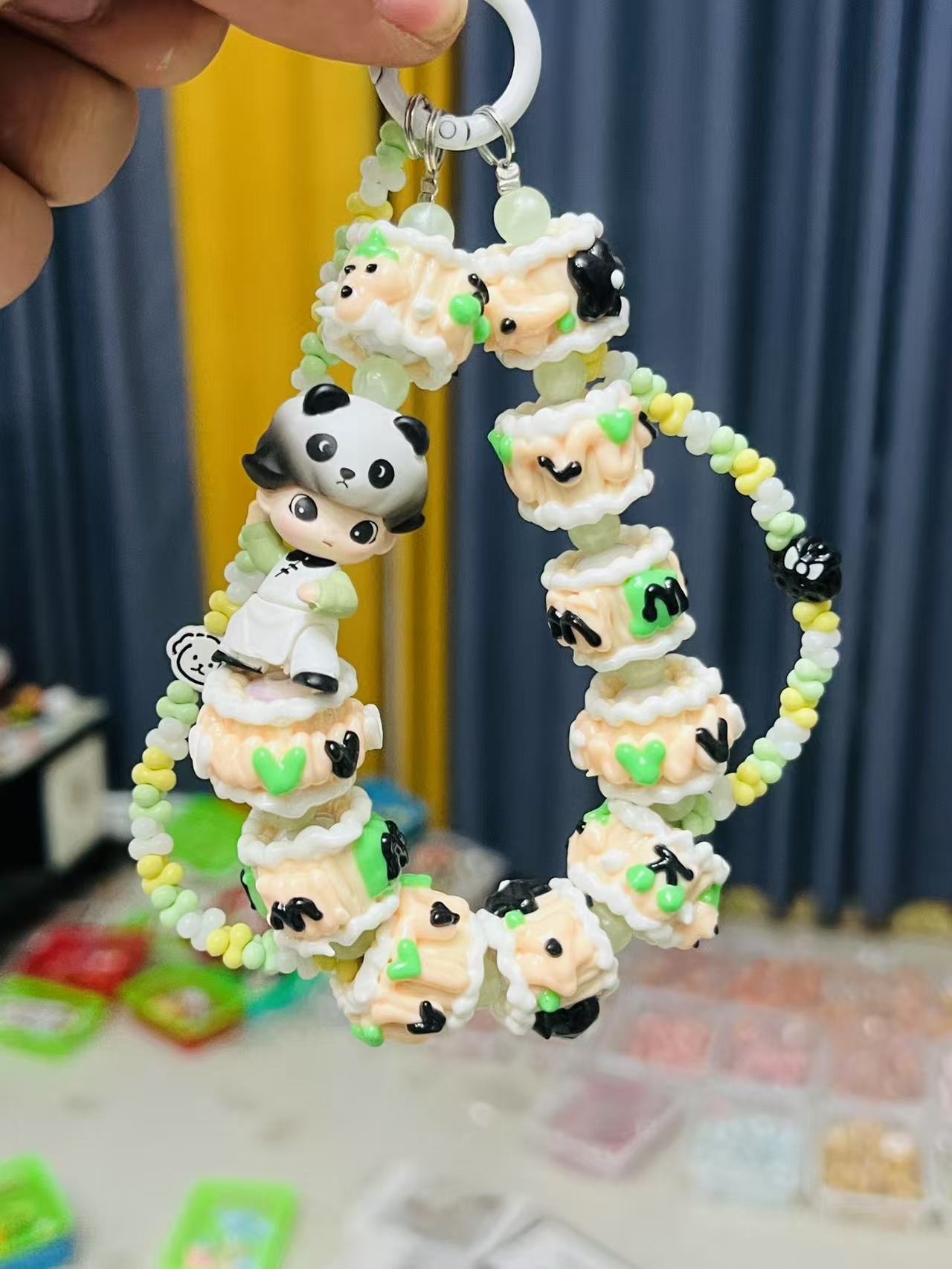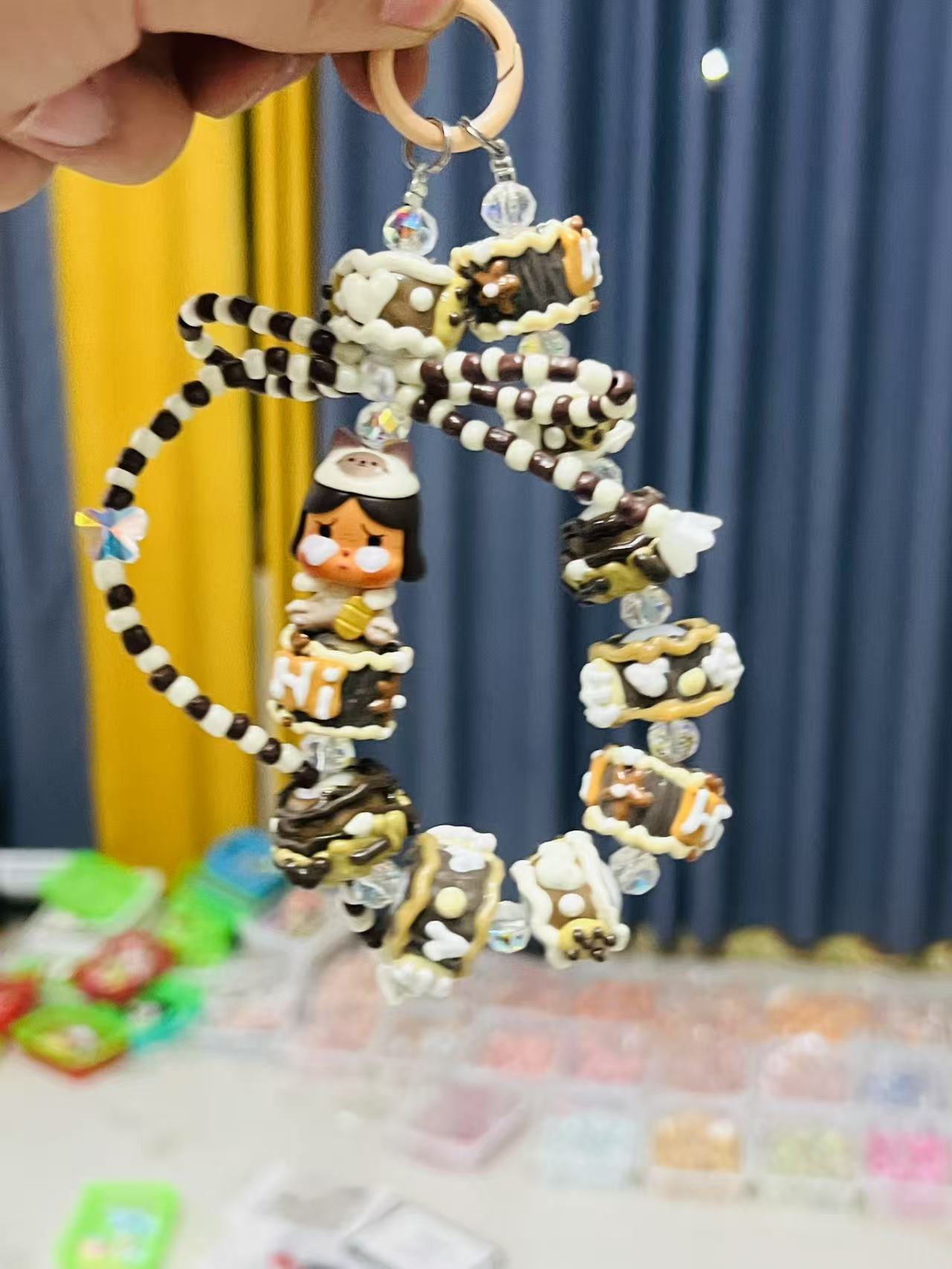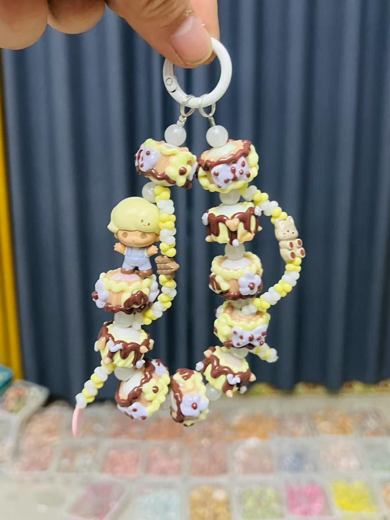 泡泡玛特萌粒 手绘珠重工双层手机链包包手机挂饰 直播间爆款diy