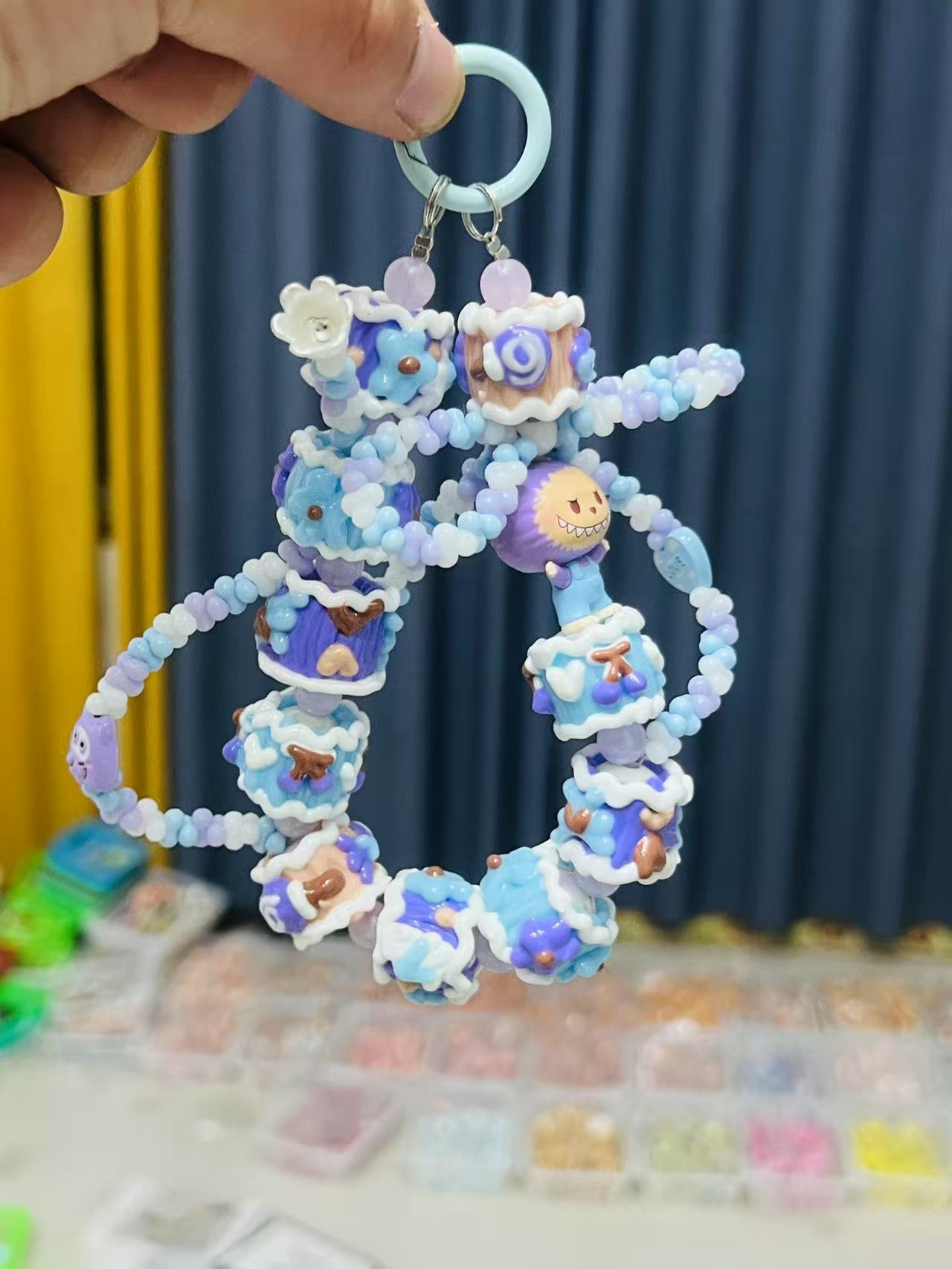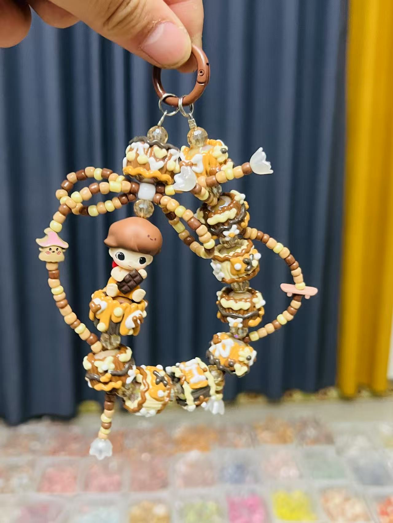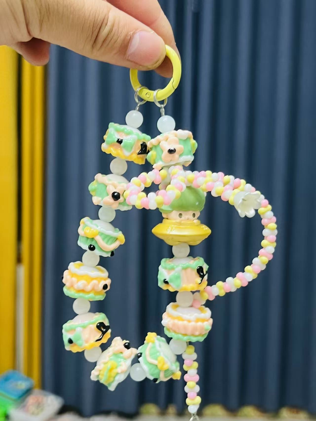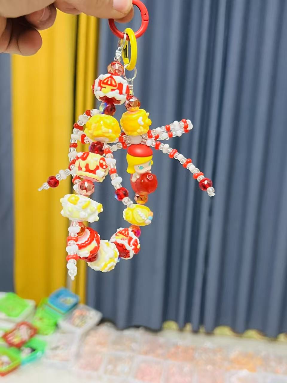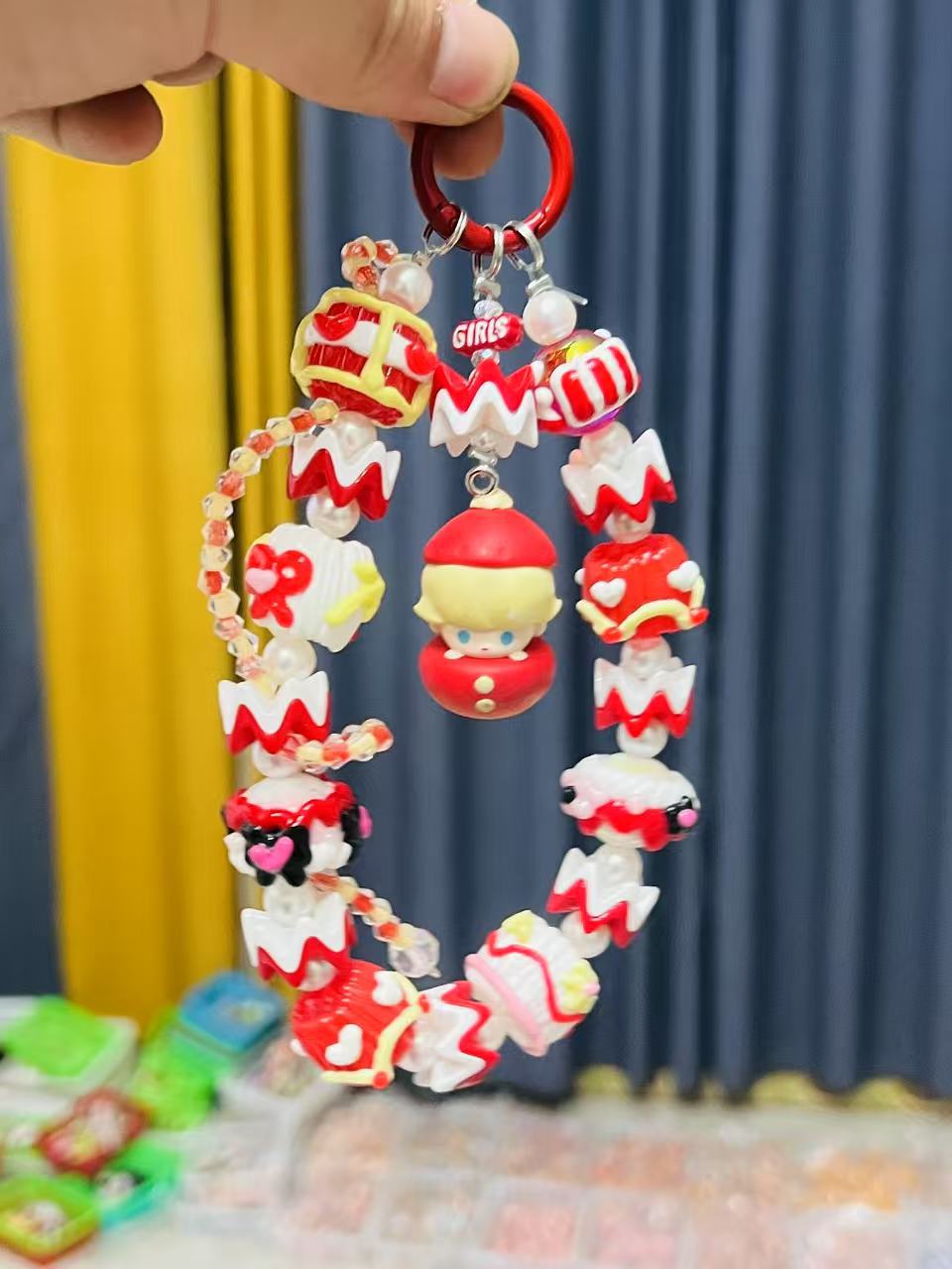泡泡玛特萌粒 手绘珠重工双层手机链包包手机挂饰 直播间爆款diy