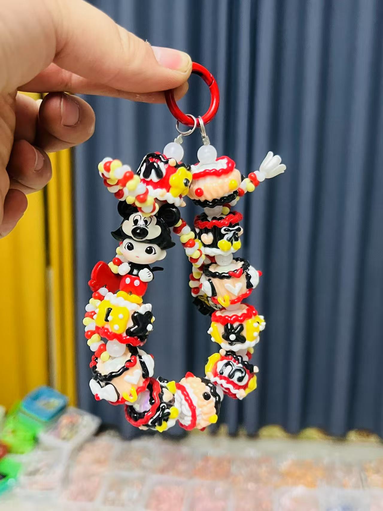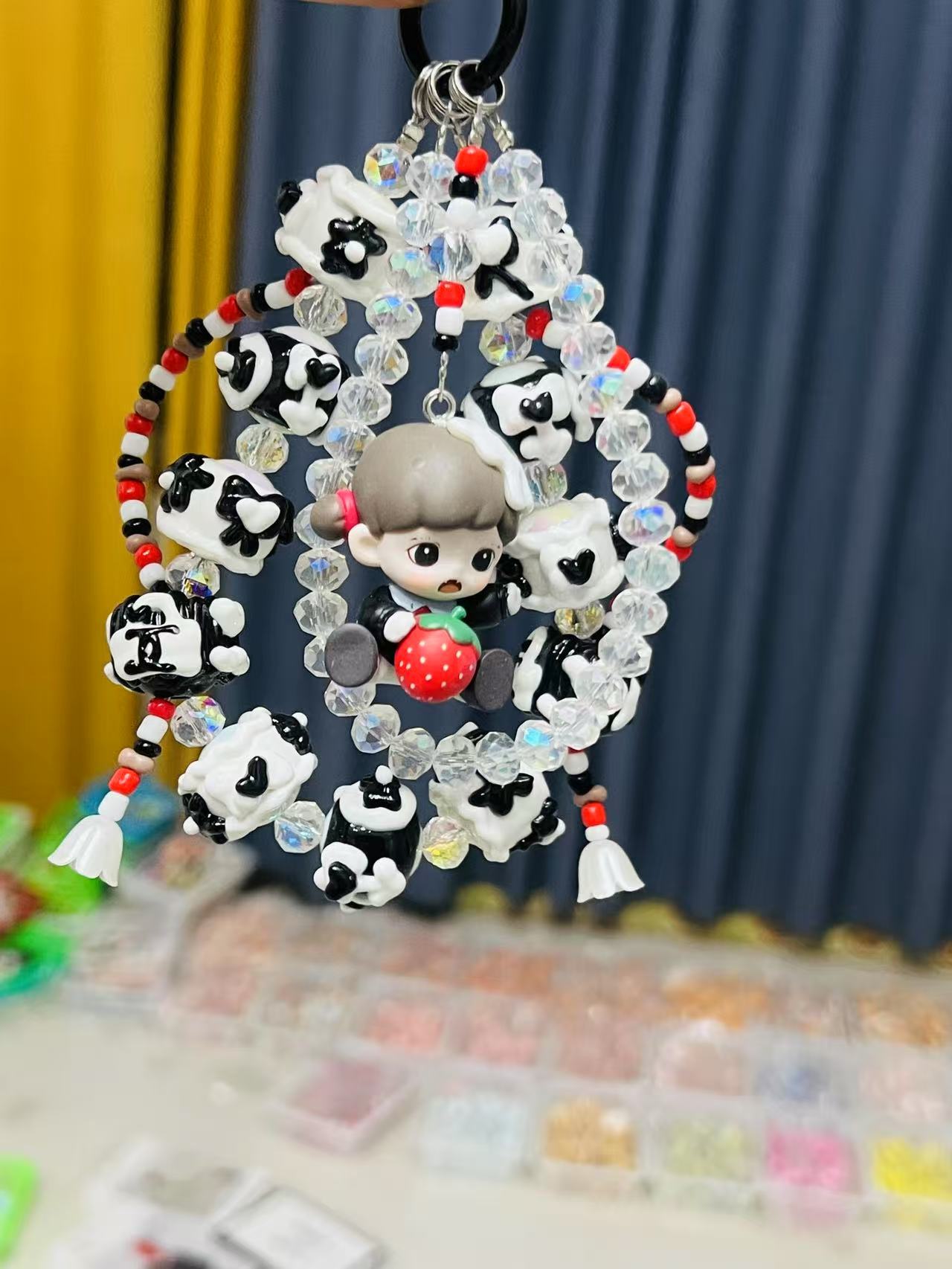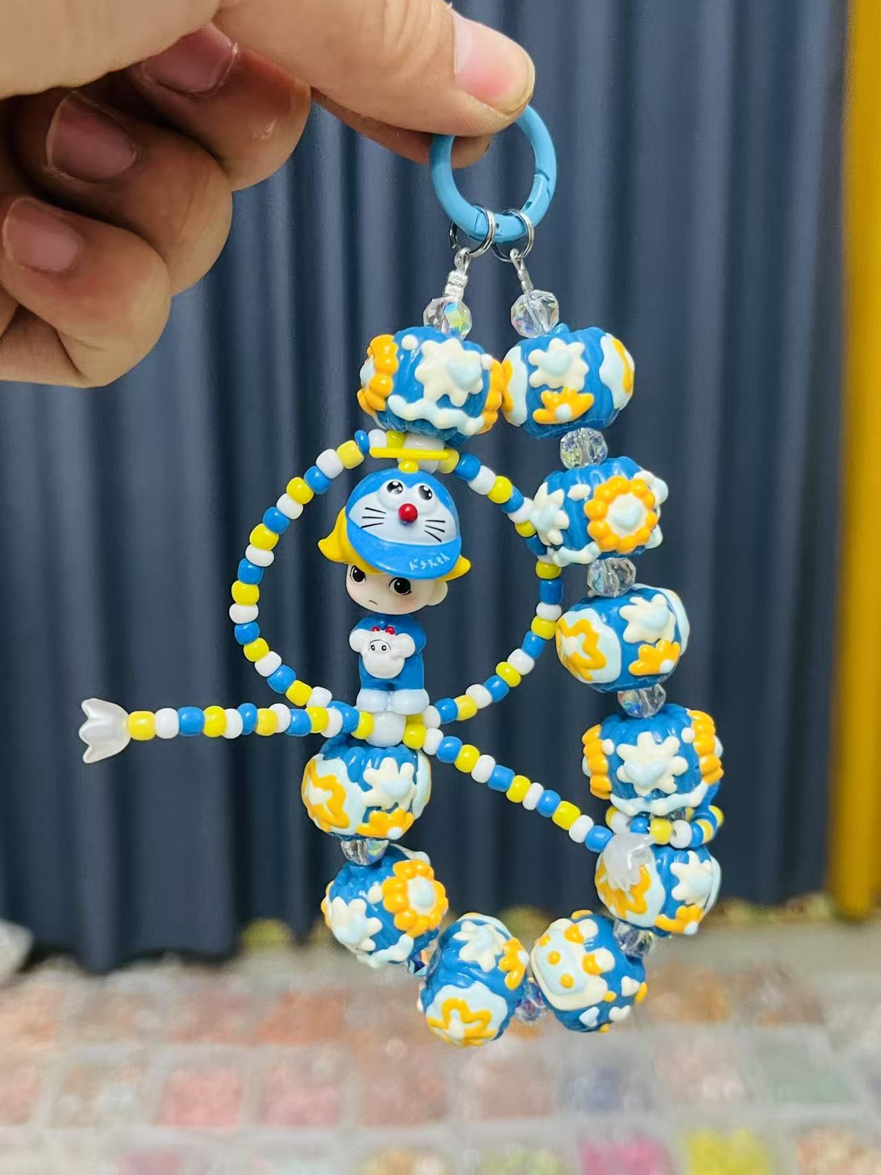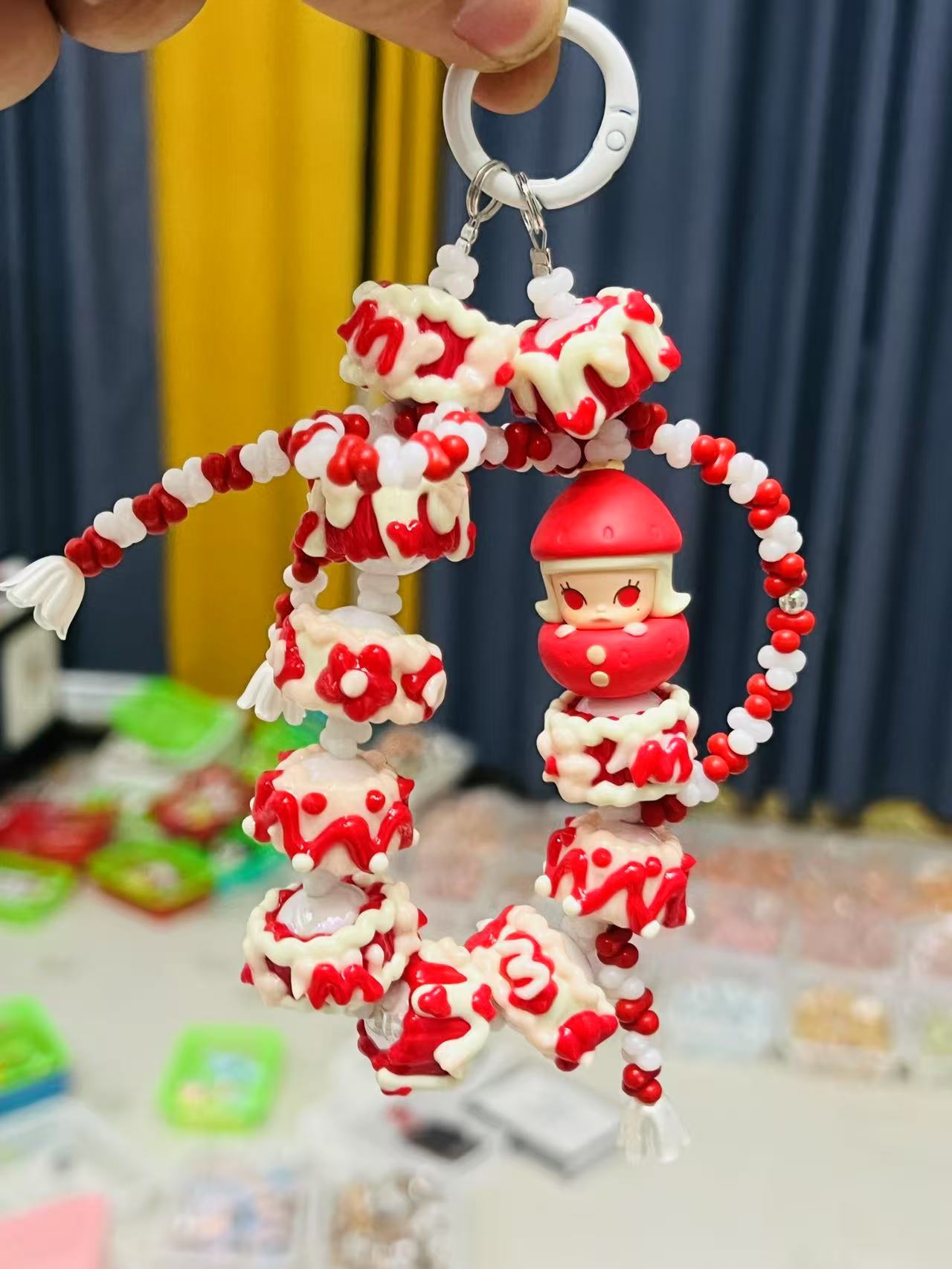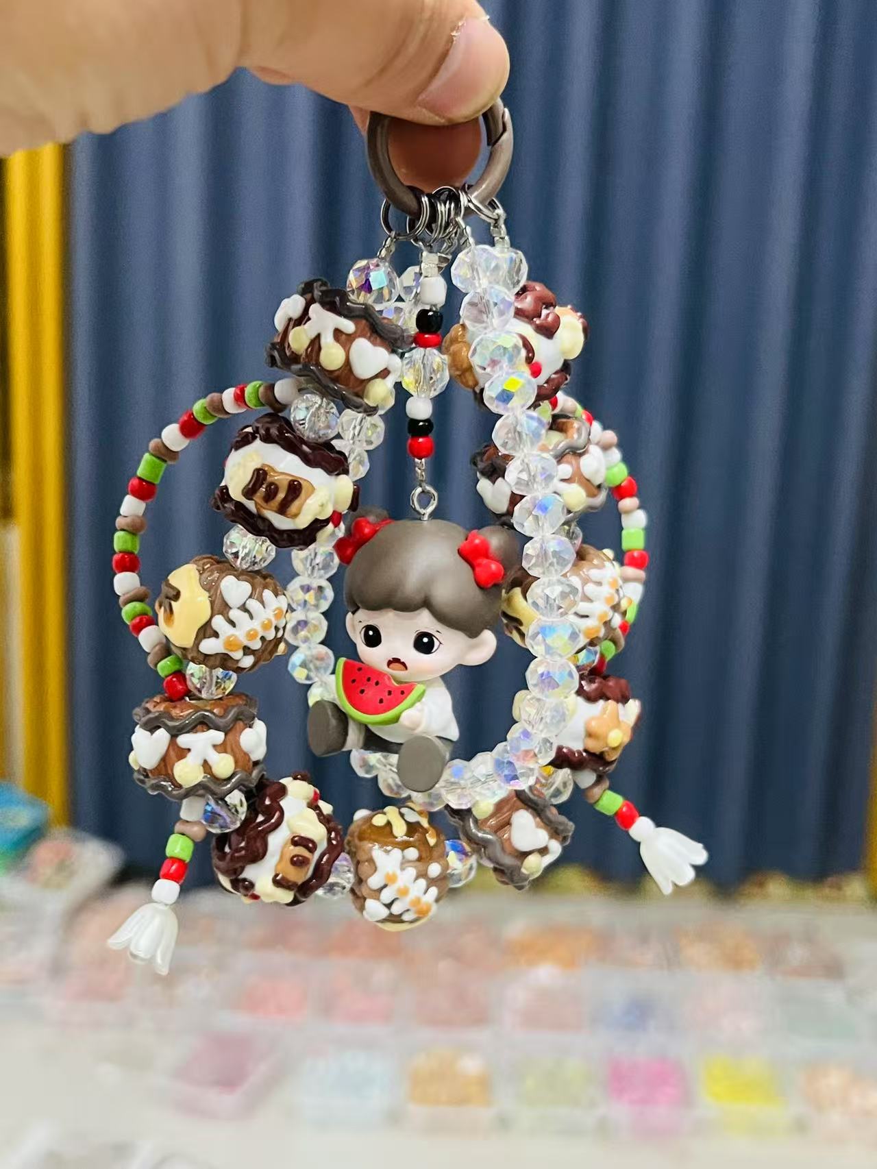 泡泡玛特萌粒 手绘珠重工双层手机链包包手机挂饰 直播间爆款diy