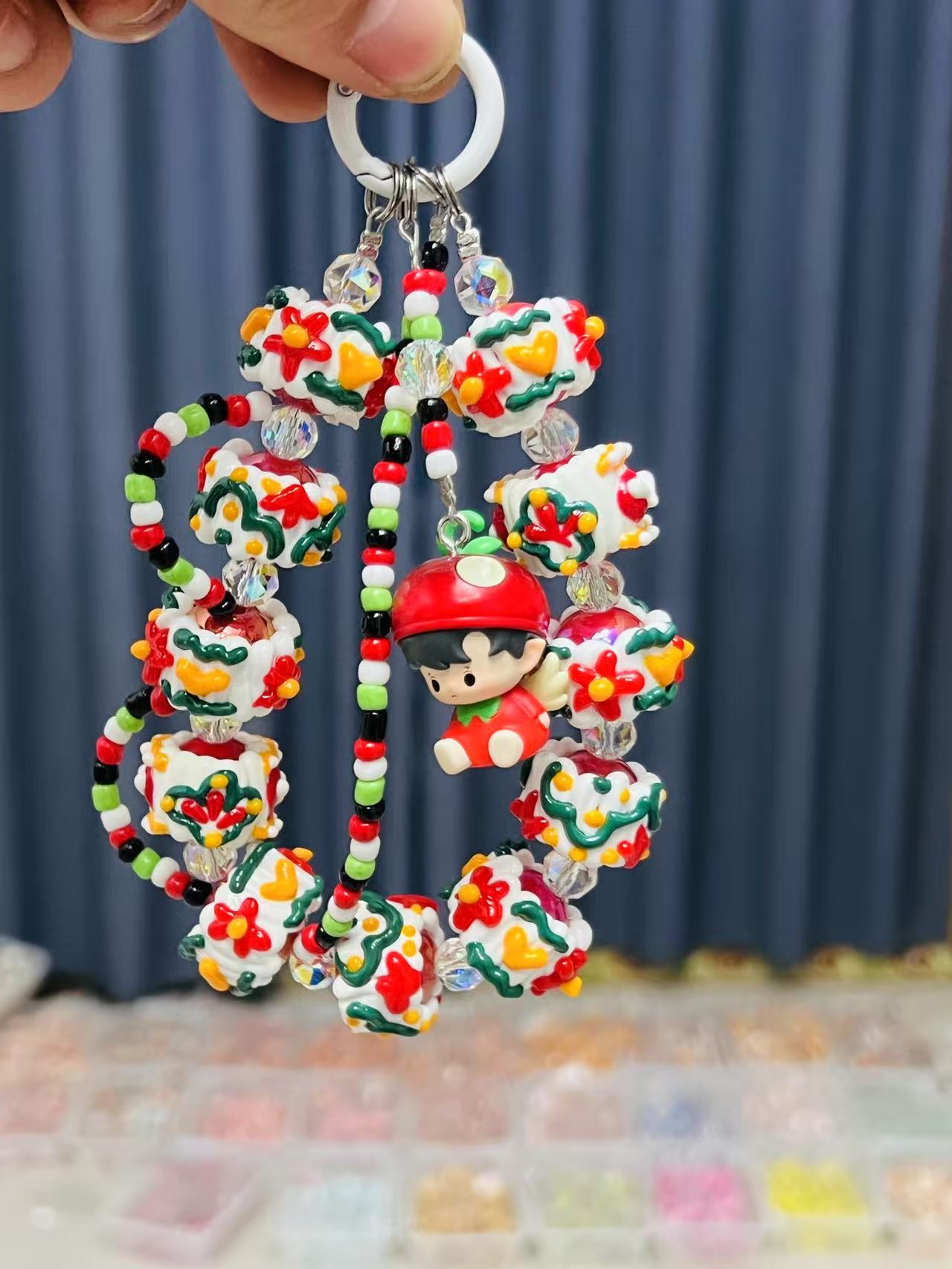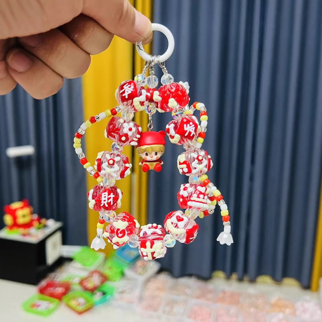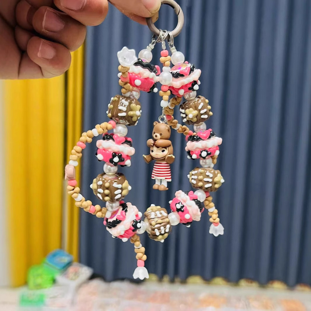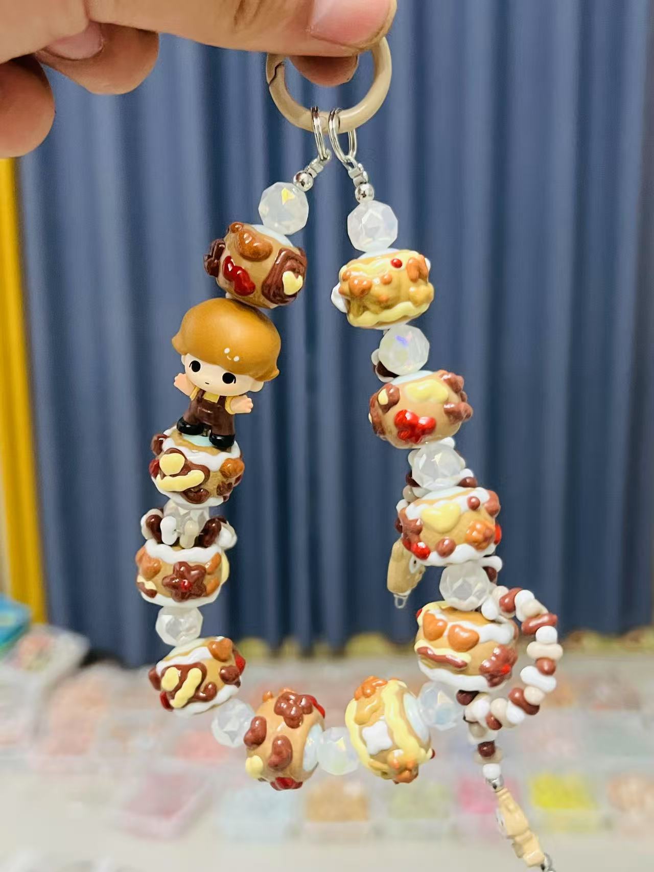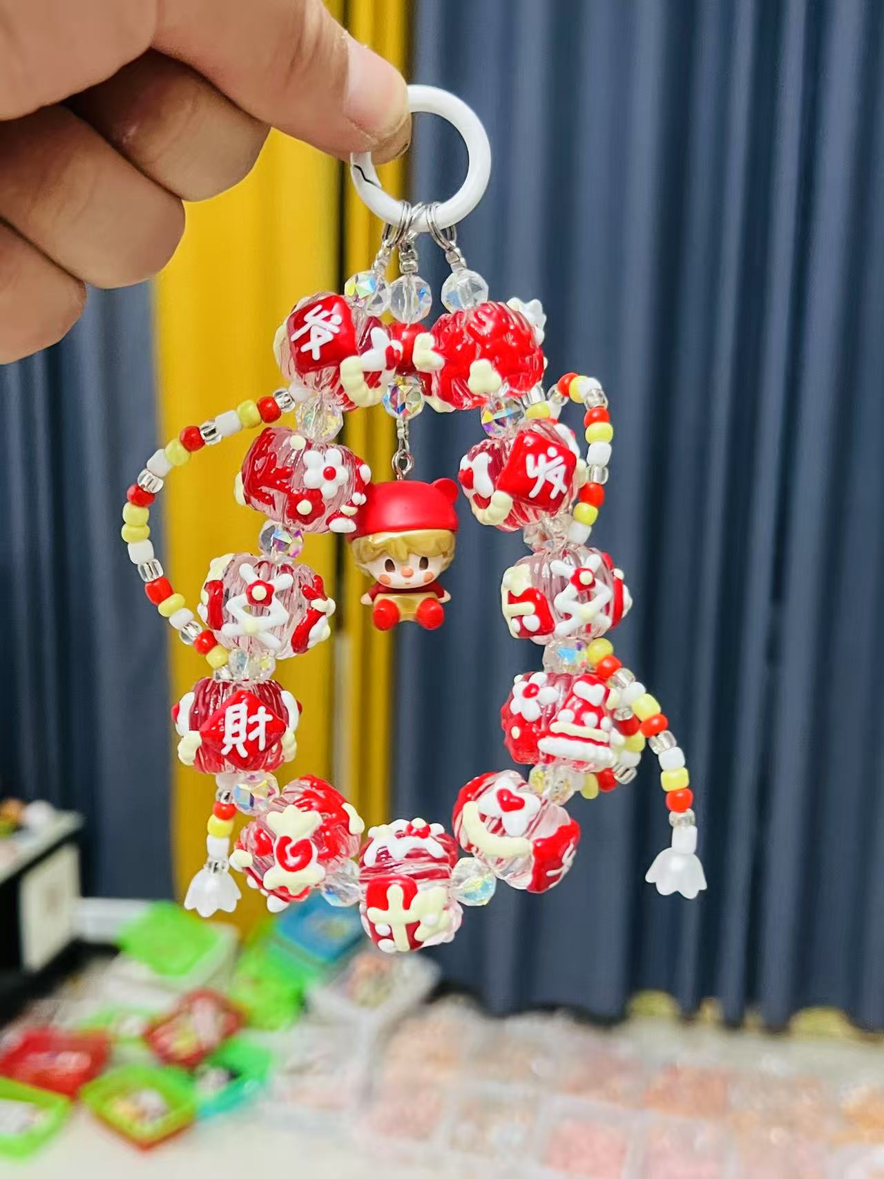 泡泡玛特萌粒 手绘珠重工双层手机链包包手机挂饰 直播间爆款diy