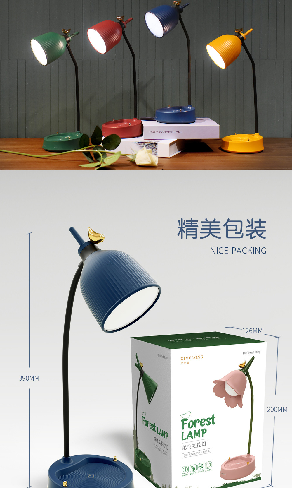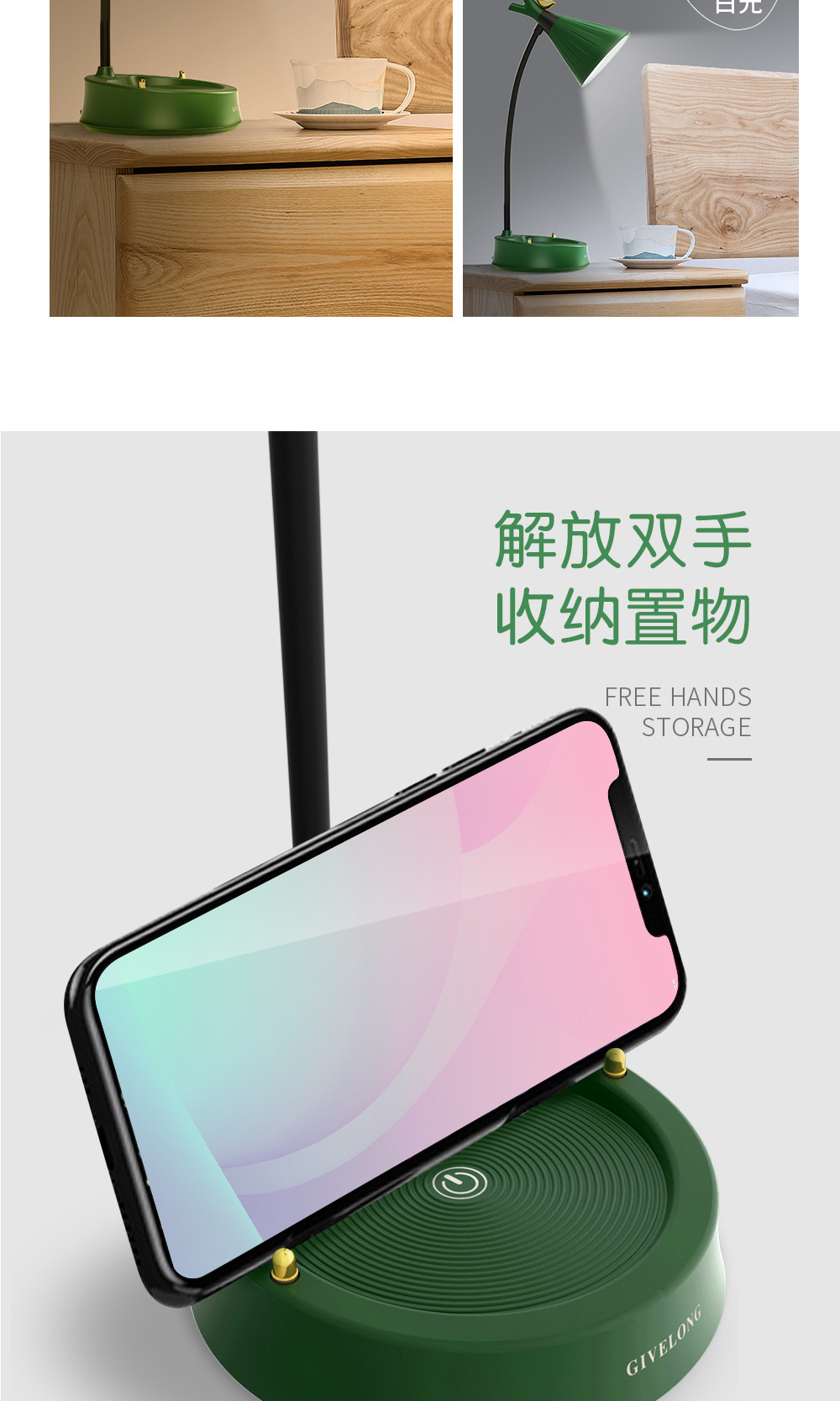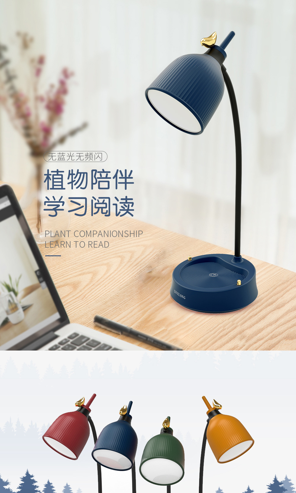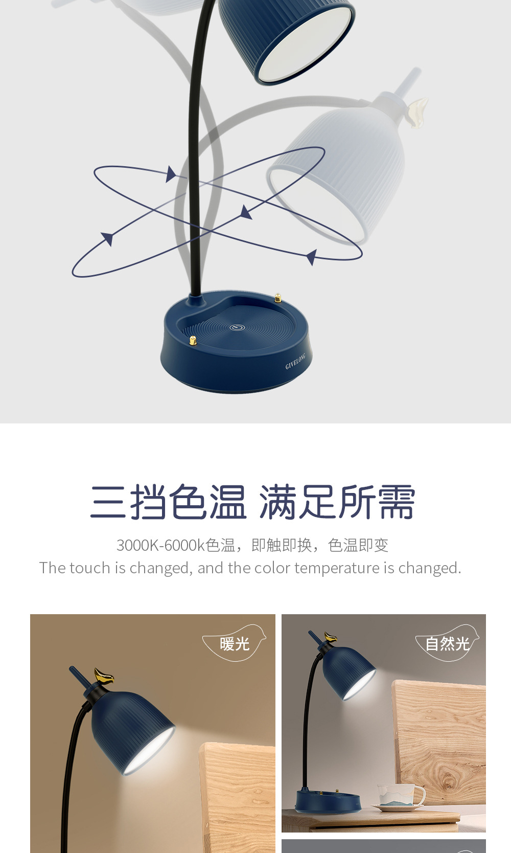 调光触控小台灯学习专用学生宿舍led护眼阅读书桌无线卧室床头灯