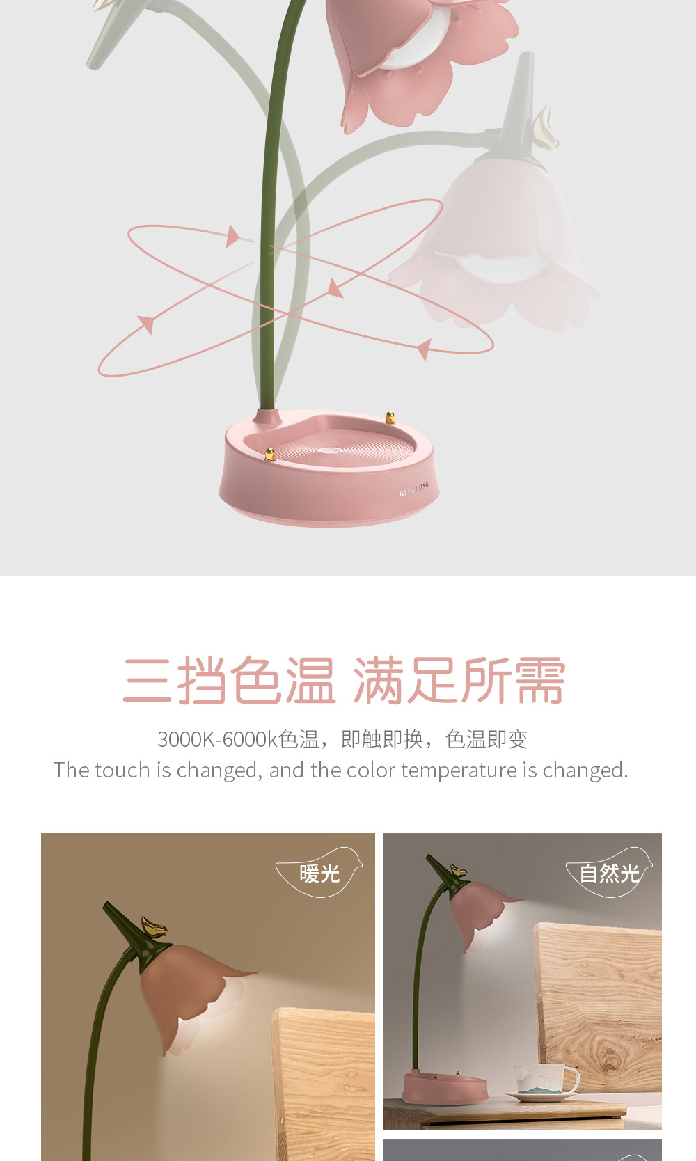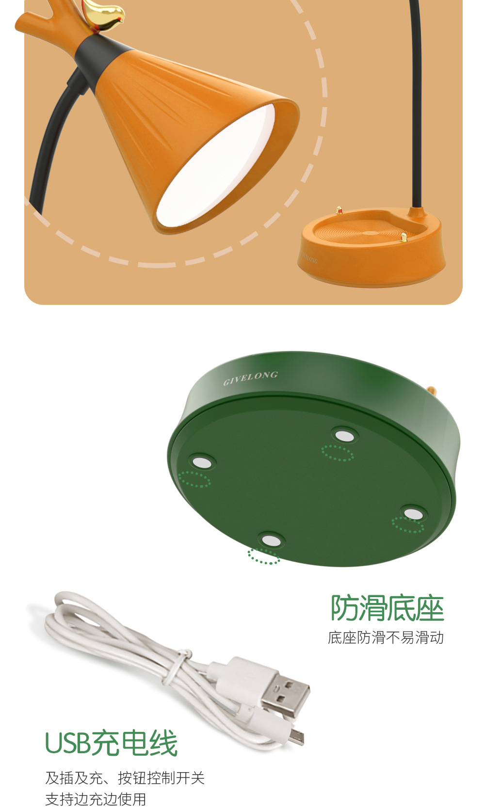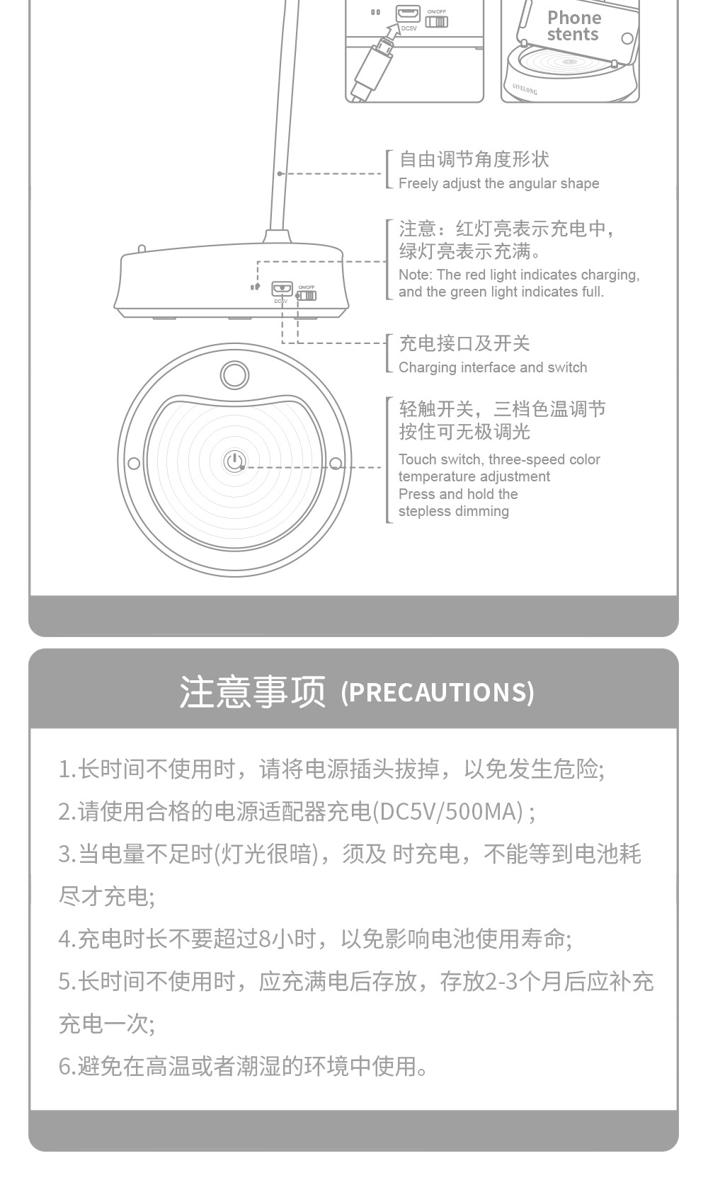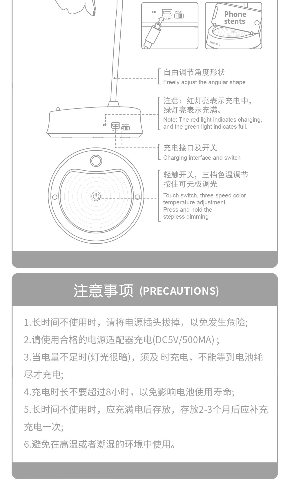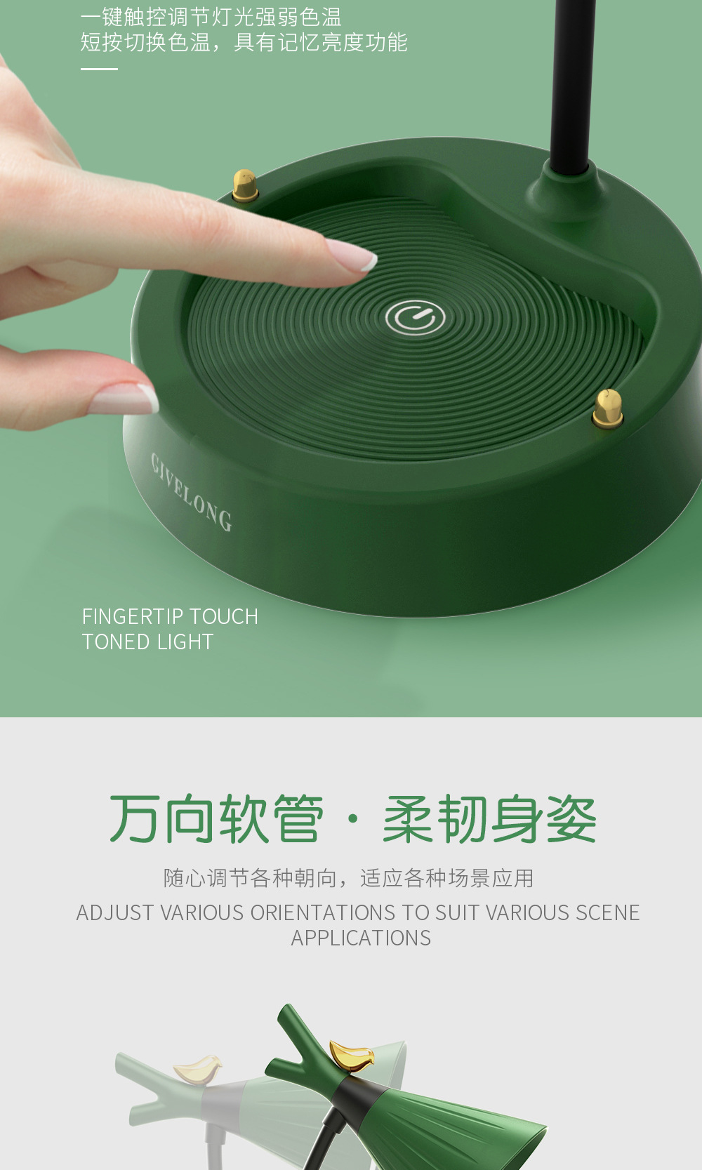 调光触控小台灯学习专用学生宿舍led护眼阅读书桌无线卧室床头灯