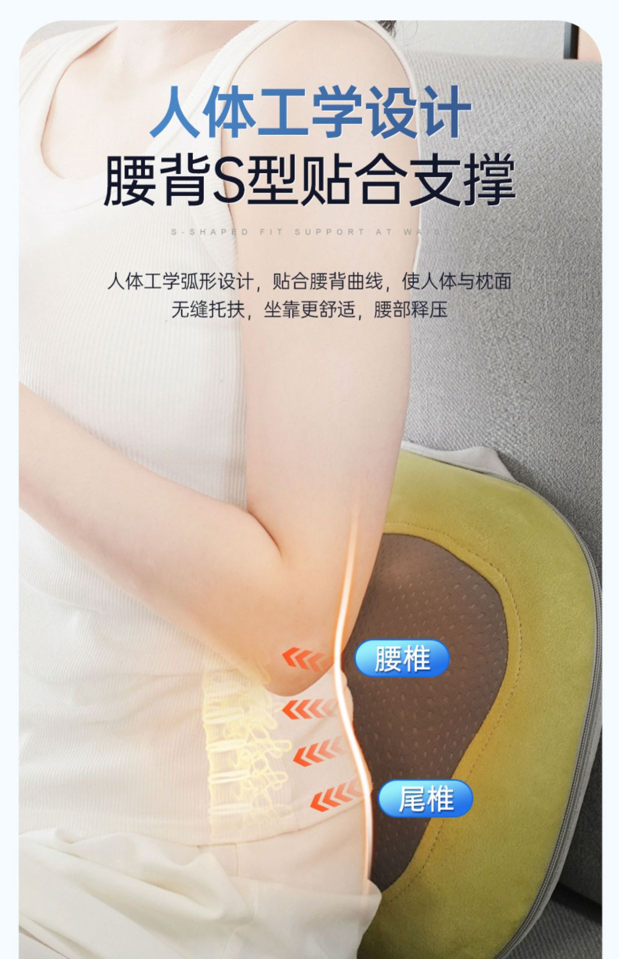 腰部按摩器多功能靠垫肩背颈椎热敷揉捶一体揉捏电动腰靠按摩仪