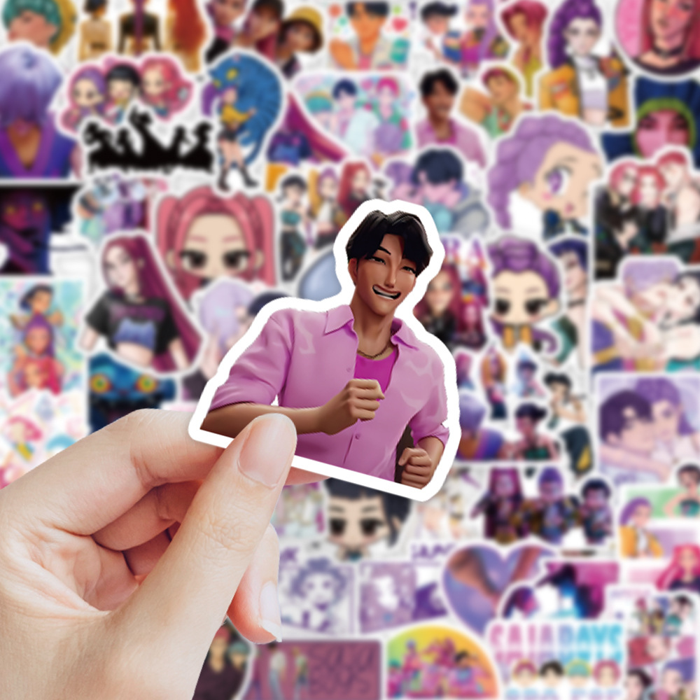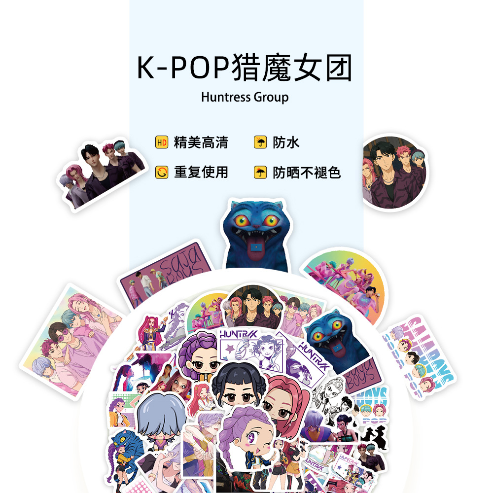 74张跨境k-pop猎魔女团恶魔男团卡通动画角色涂鸦贴纸DIY创意电脑