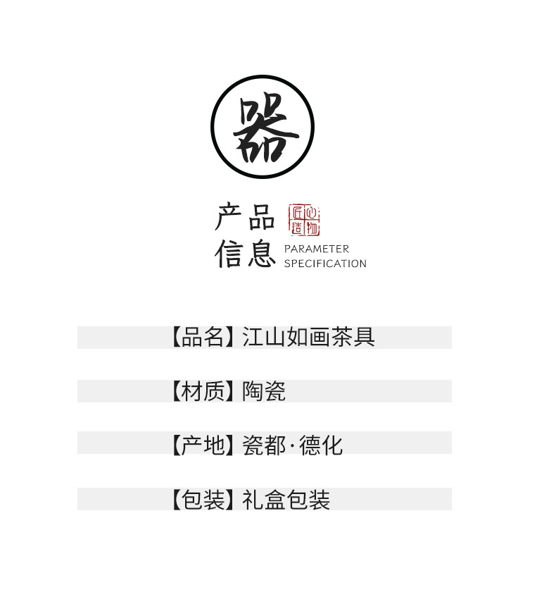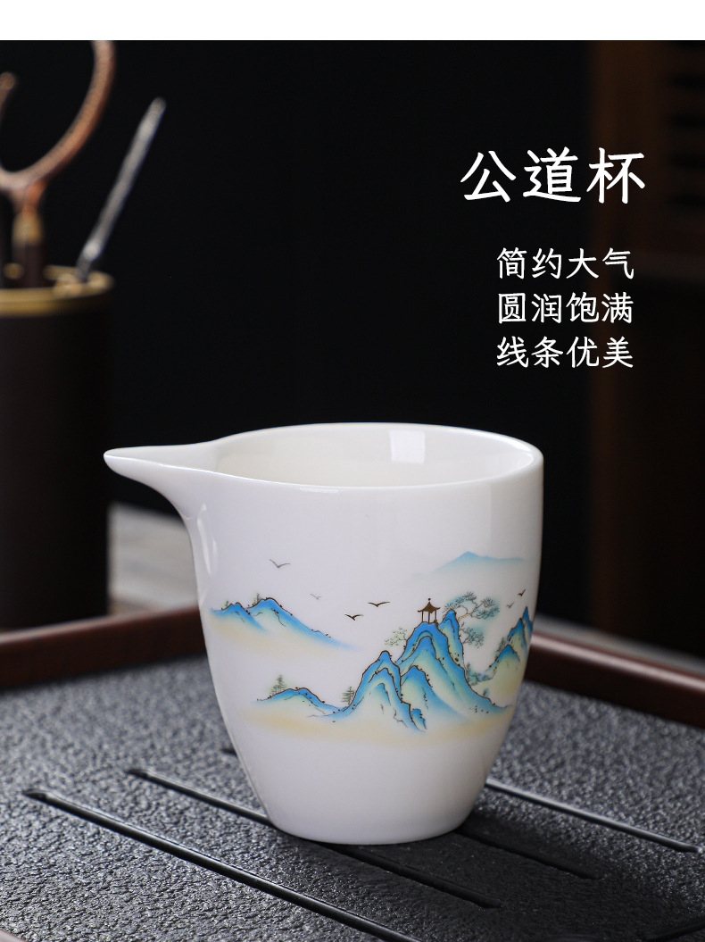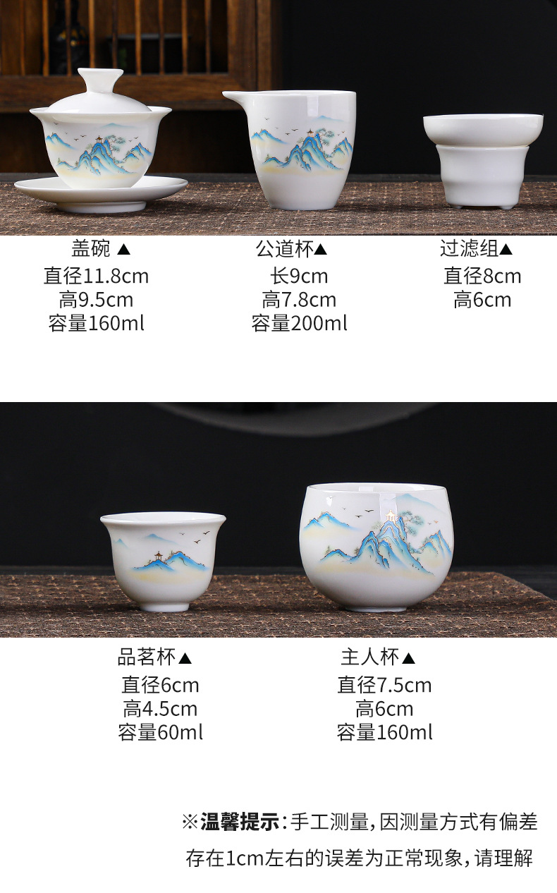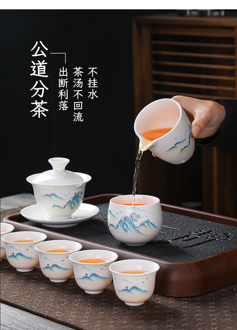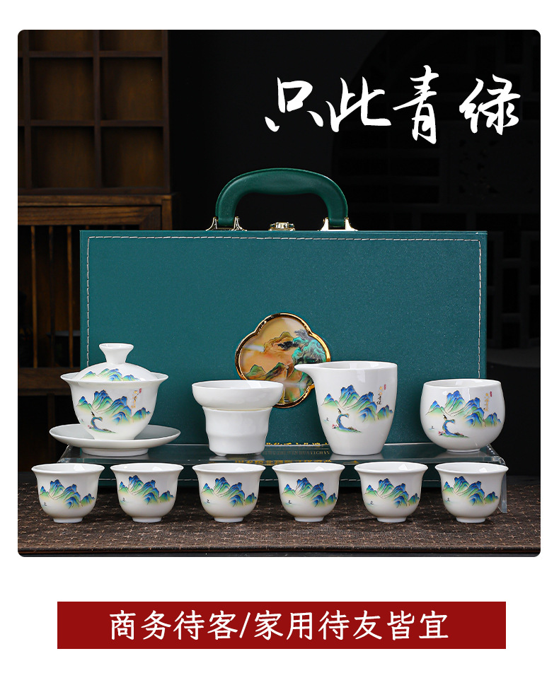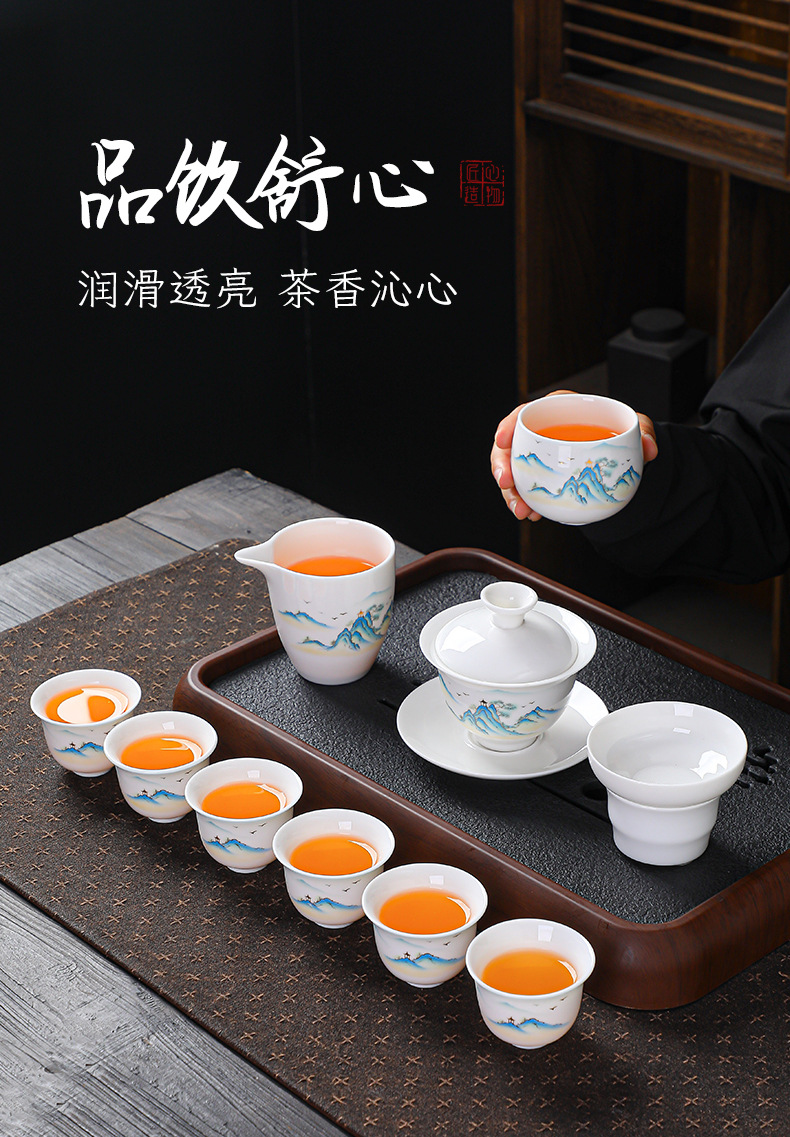 高档羊脂玉白瓷水墨盖碗功夫茶具套装礼盒整套盖碗陶瓷伴手礼品
