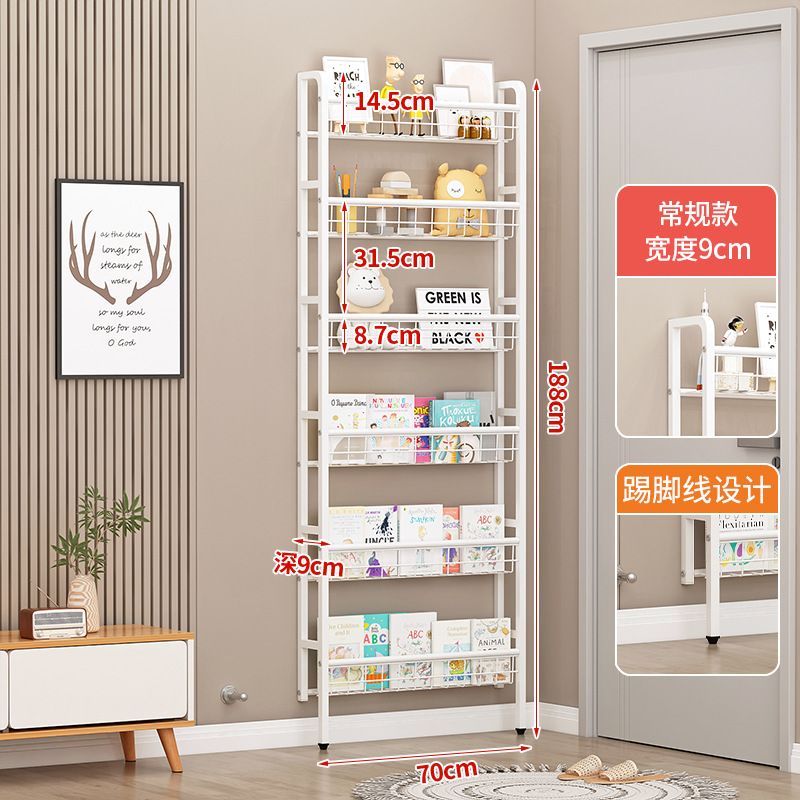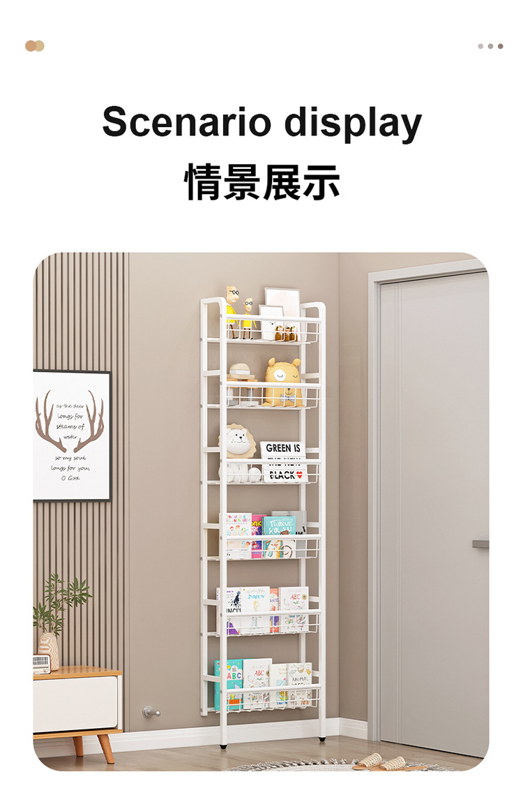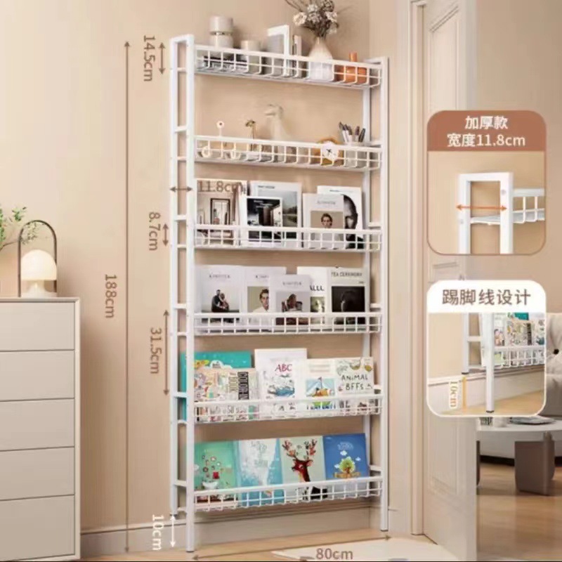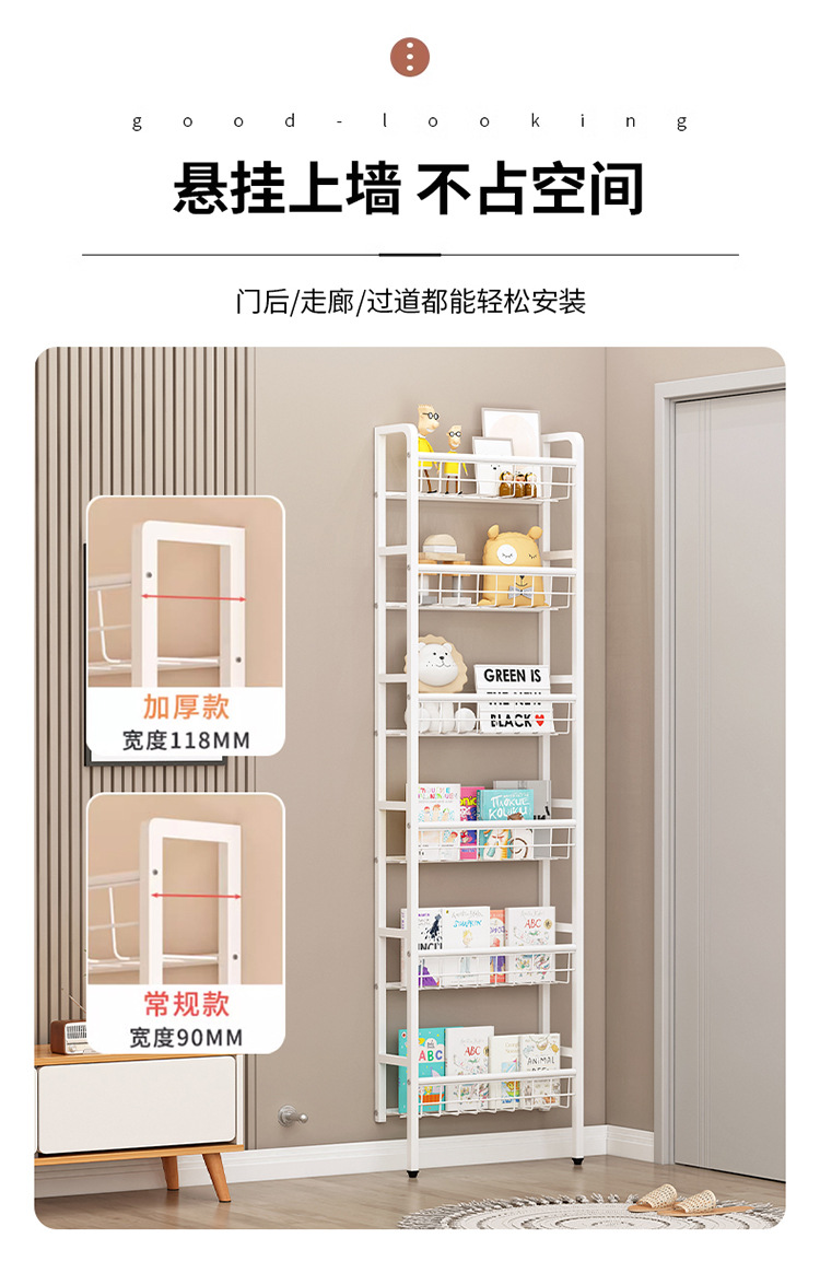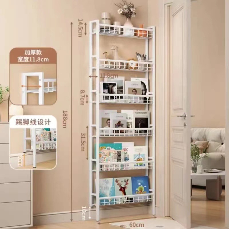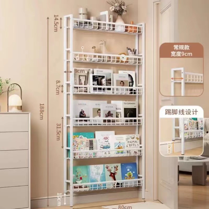挂墙多层收纳书架落地置物架壁挂一体靠墙家用极窄夹缝收门后简易