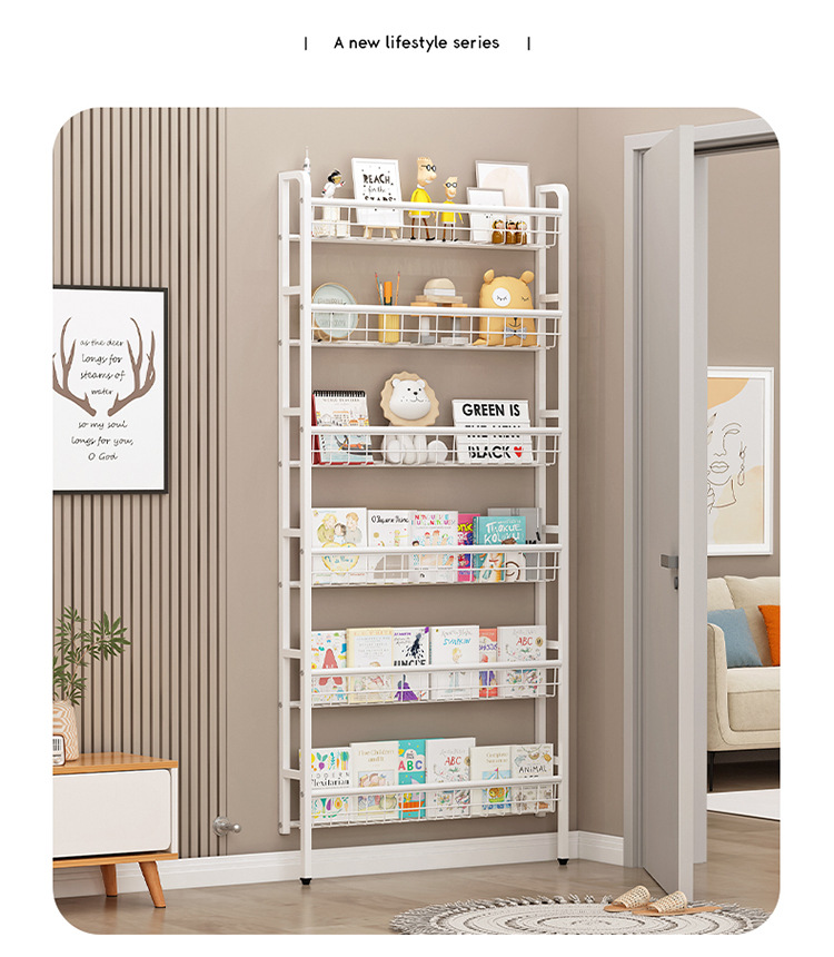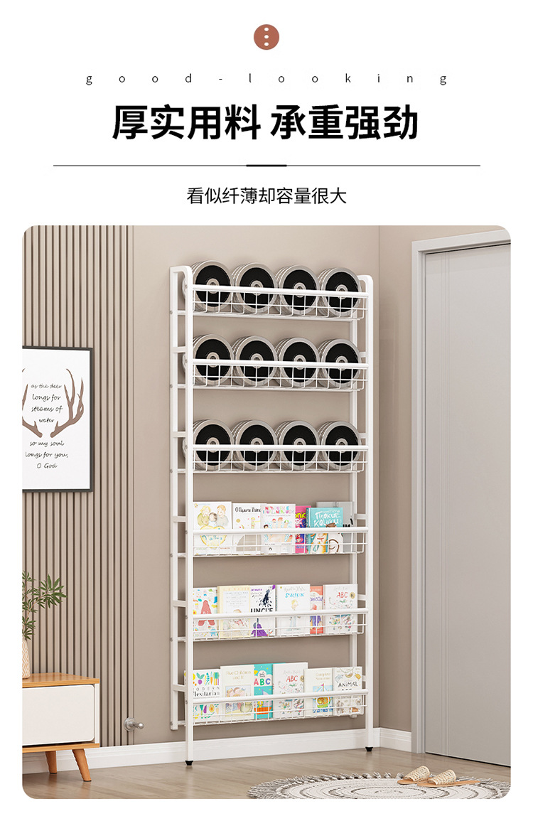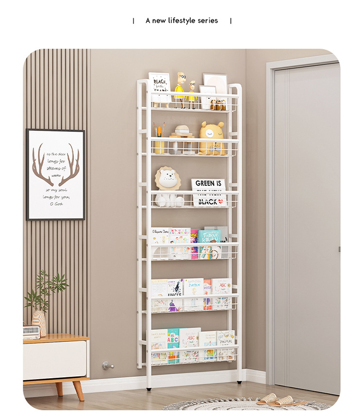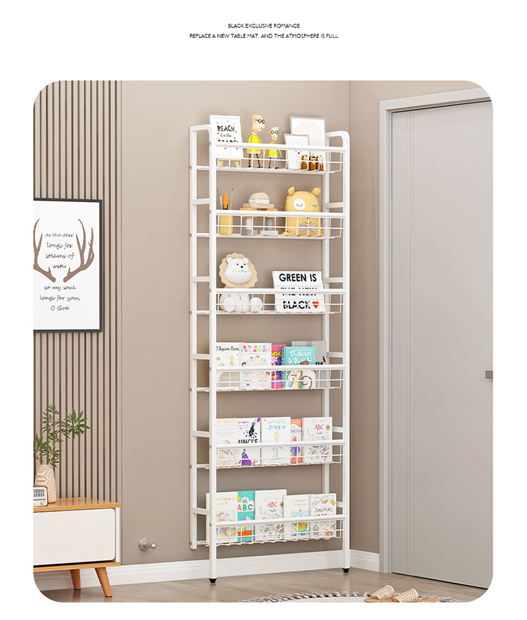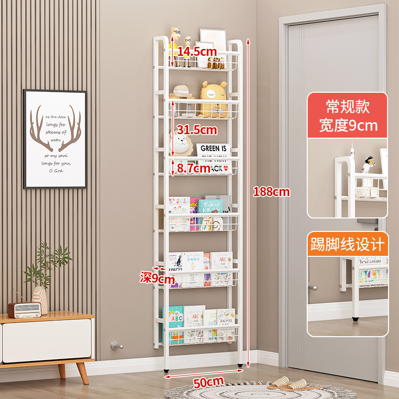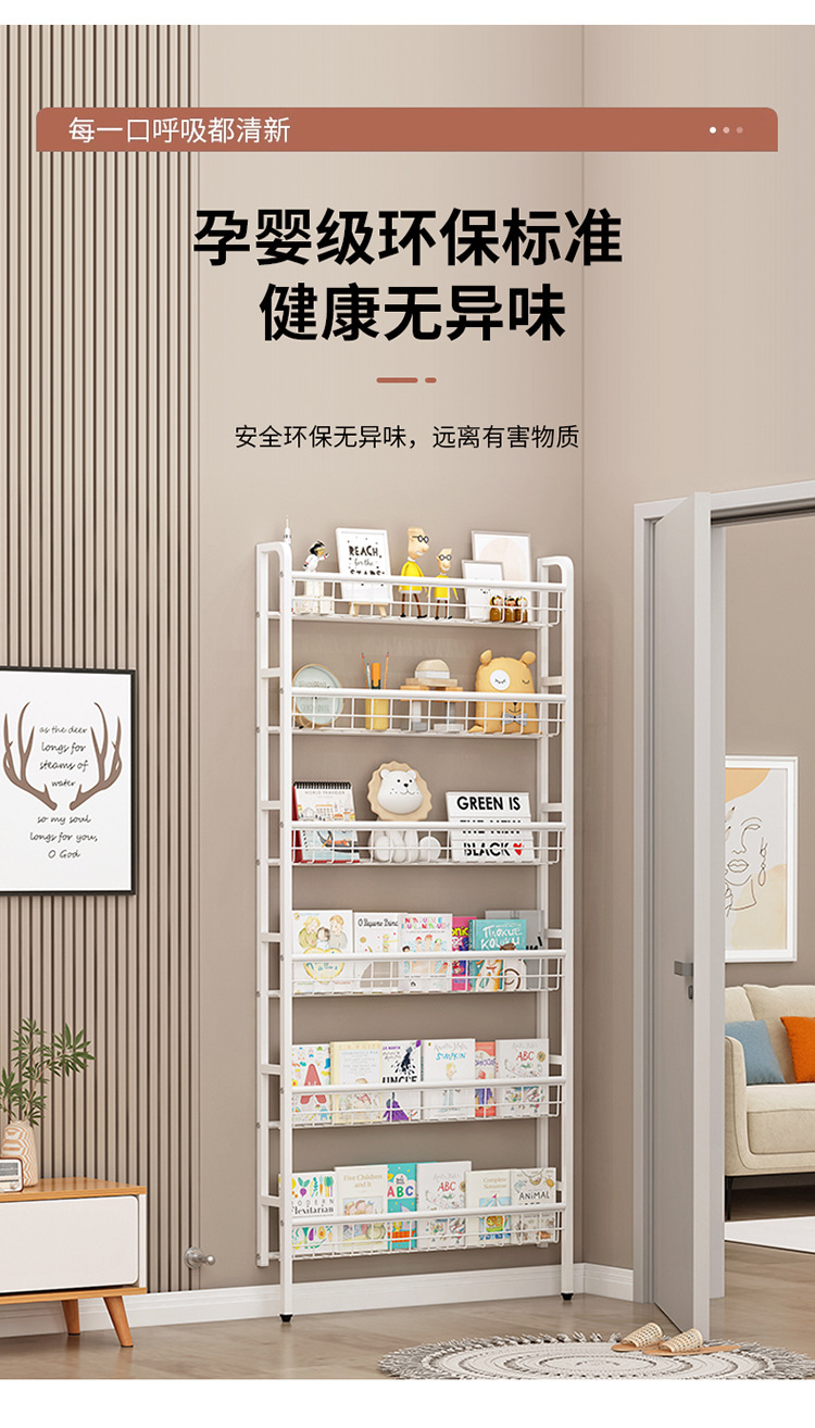 挂墙多层收纳书架落地置物架壁挂一体靠墙家用极窄夹缝收门后简易