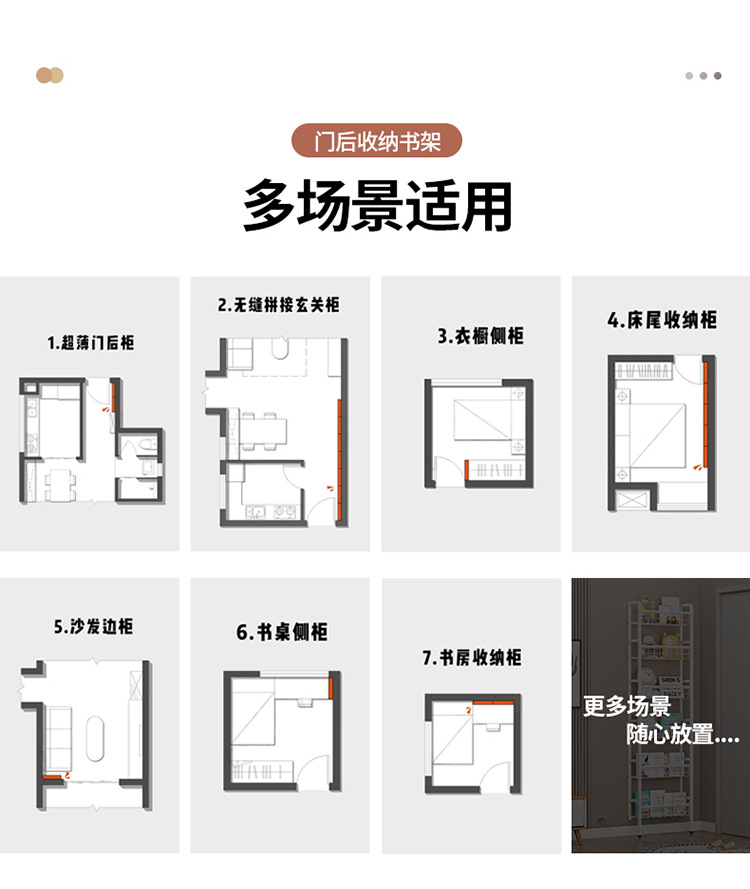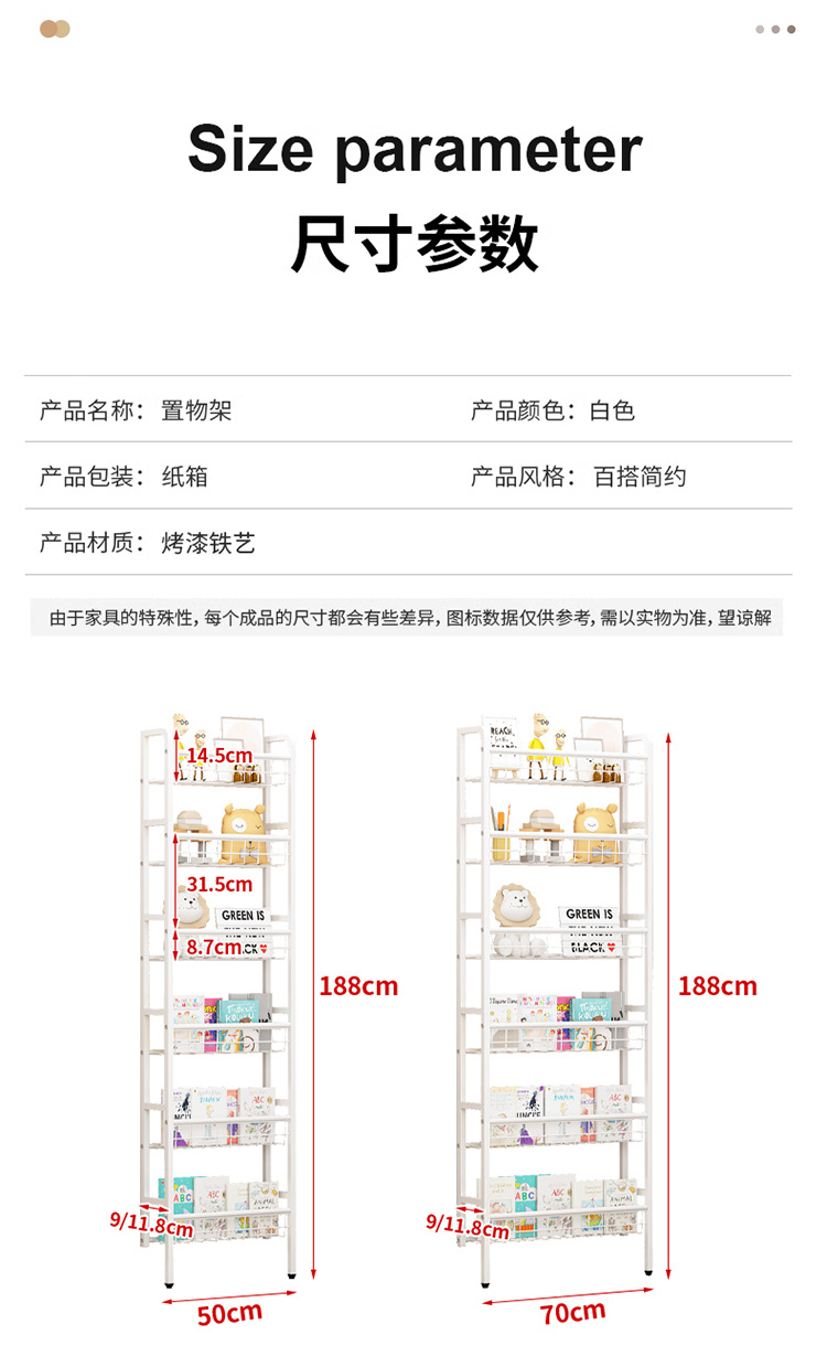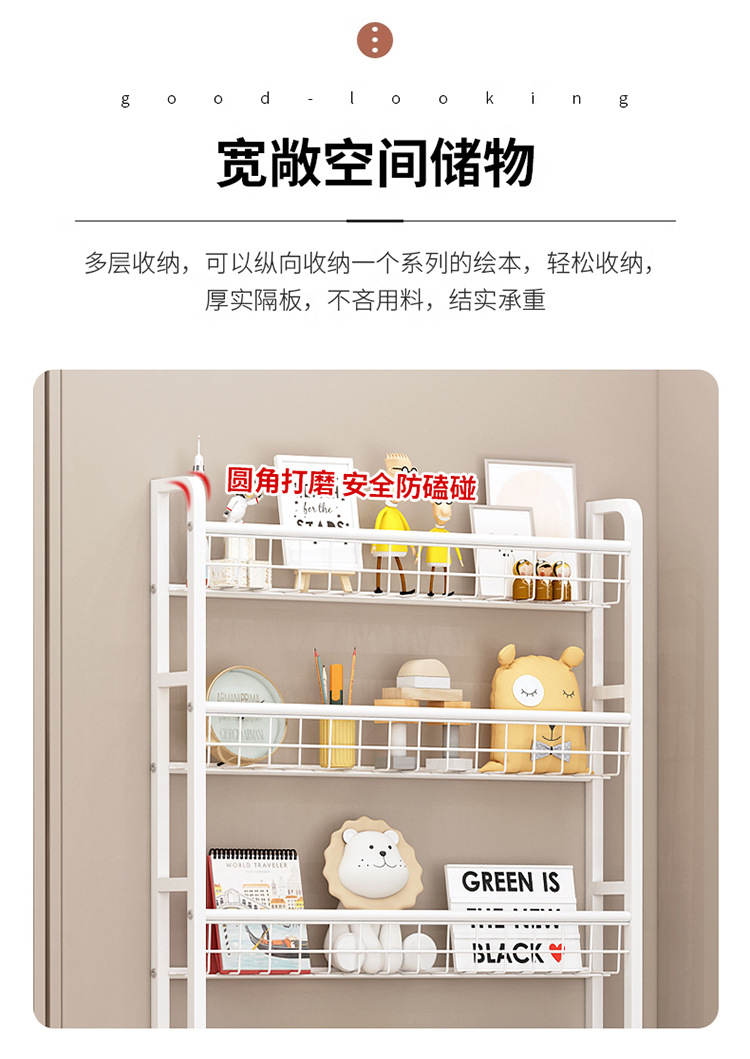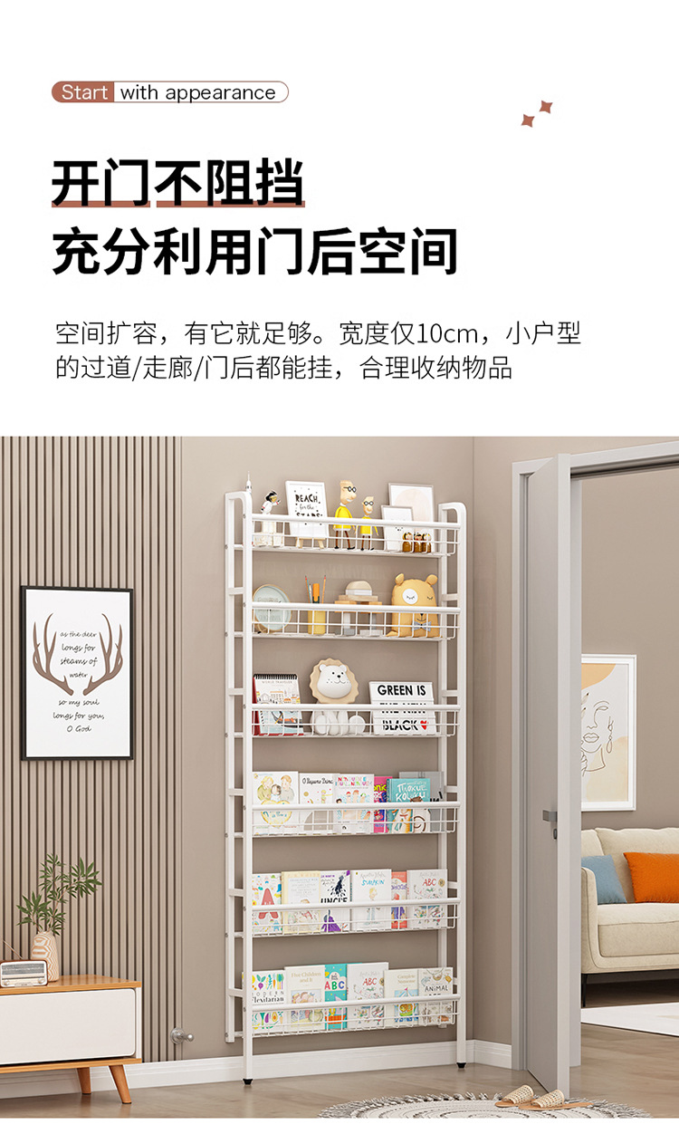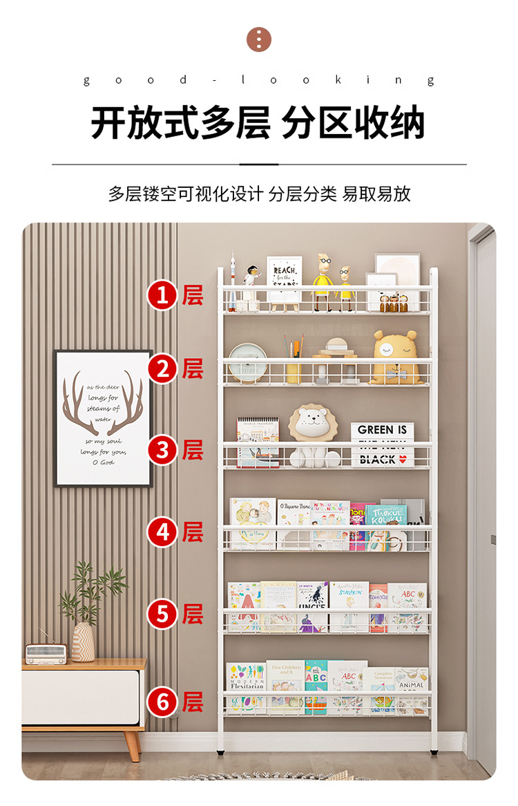 挂墙多层收纳书架落地置物架壁挂一体靠墙家用极窄夹缝收门后简易