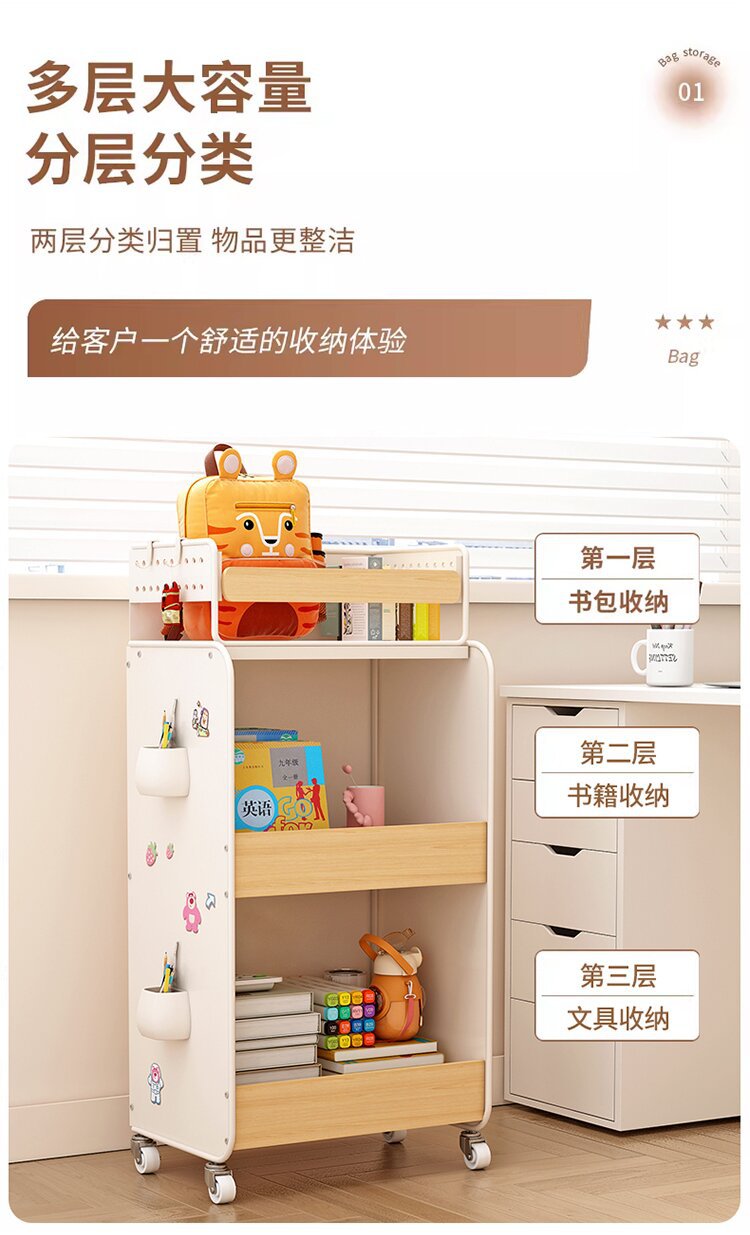 书包置物架可移动小推车卧室桌下书本学习用品收纳架零食架