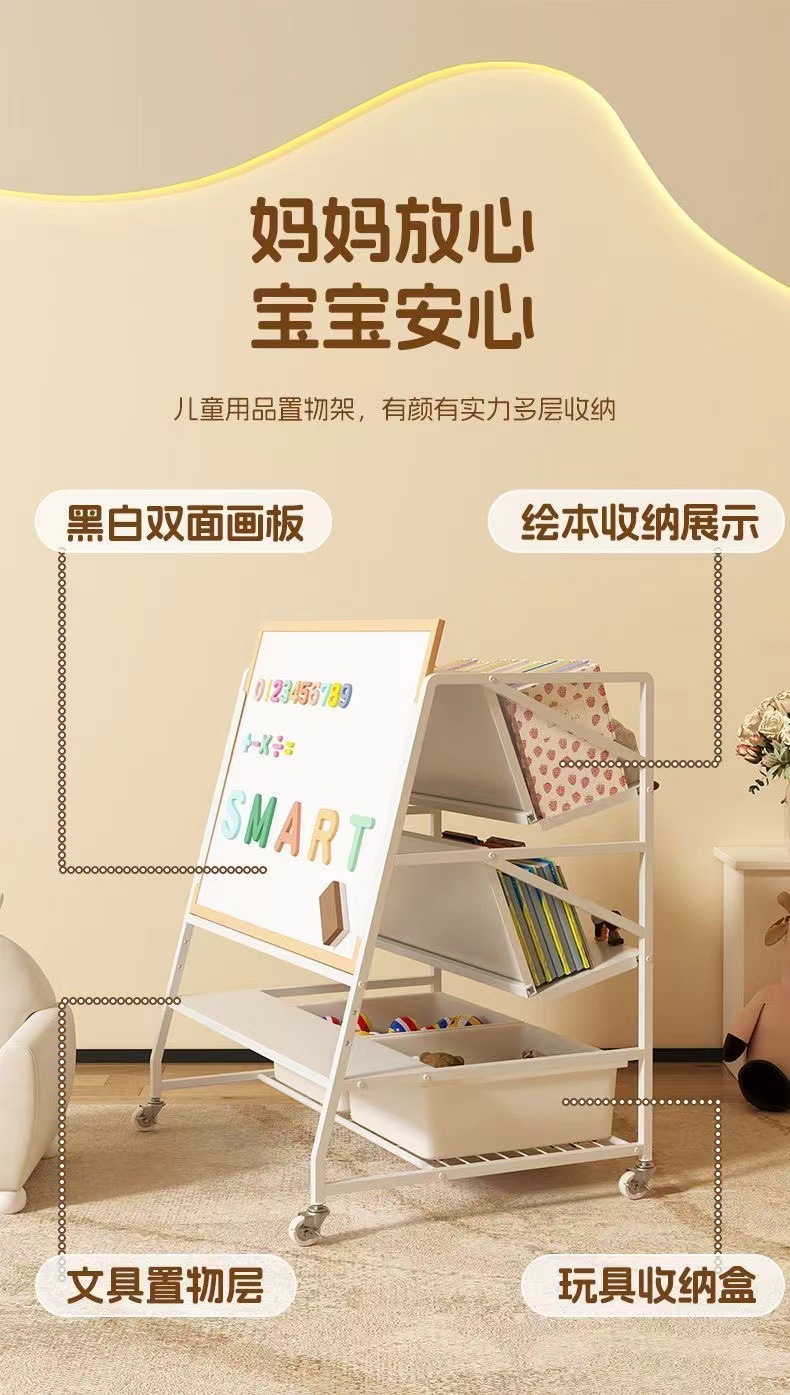 儿童书架绘本架家用落地玩具收纳移动置物架宝宝阅读简易落地置物
